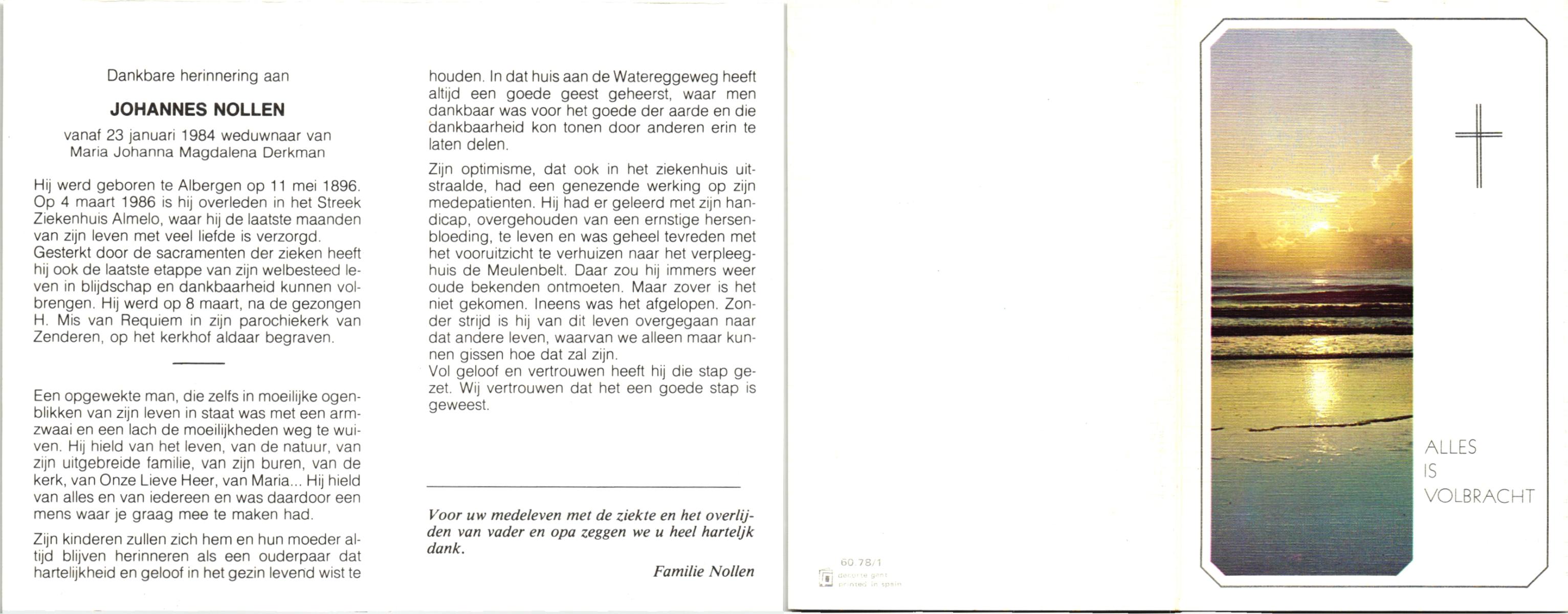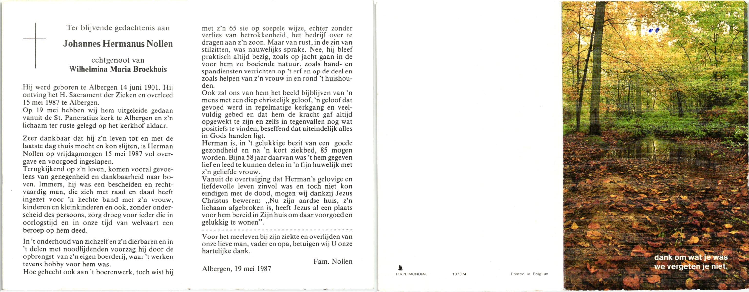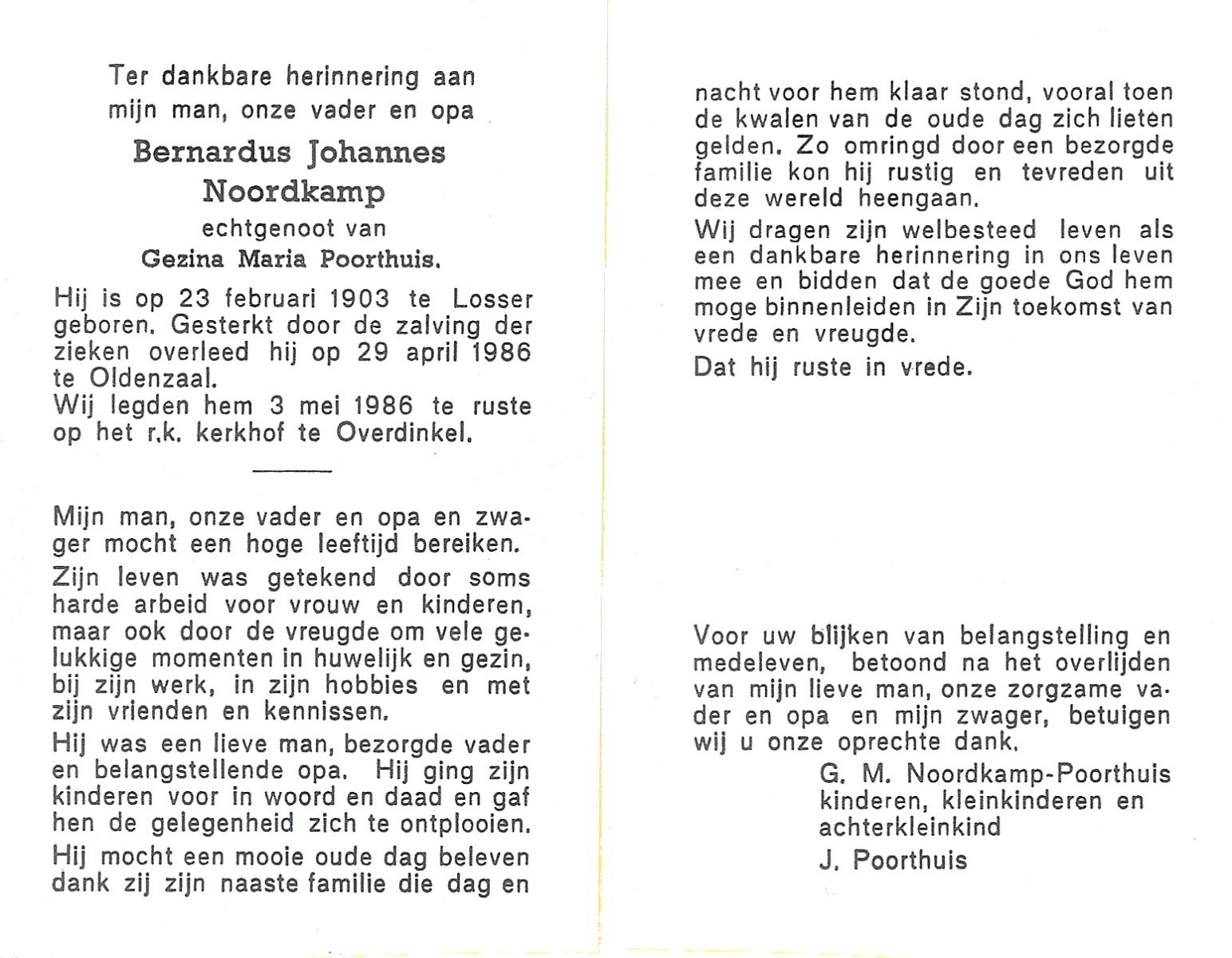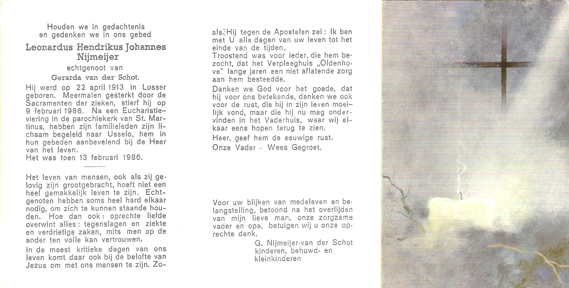 NIJKAMP, Johannes Bernardus, geboren op 14-01-1899 te Langeveen, overleden op 1-1-1987 te Almelo op 87-jarige leeftijd, begraven op 6-1-1987.