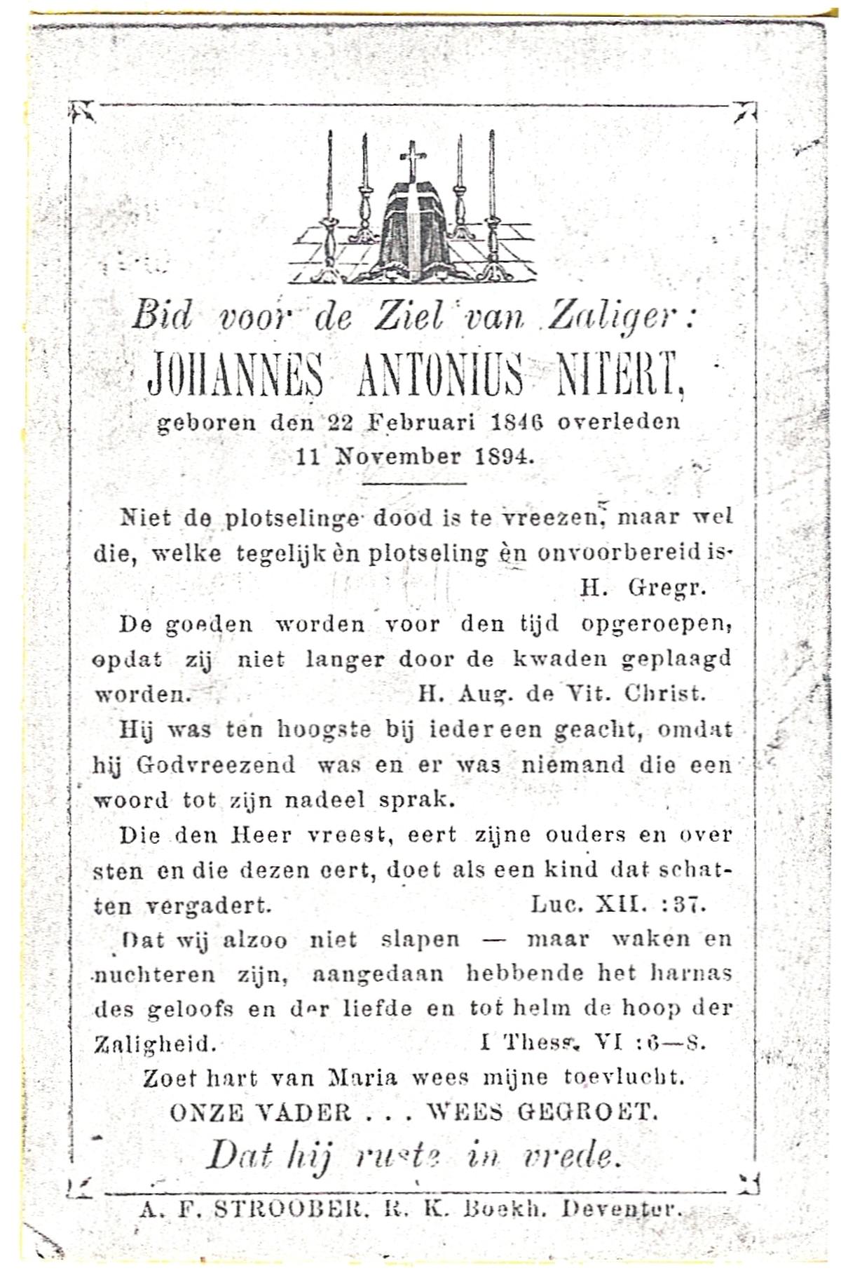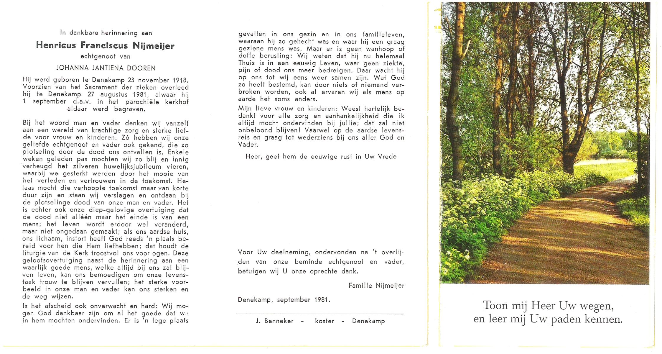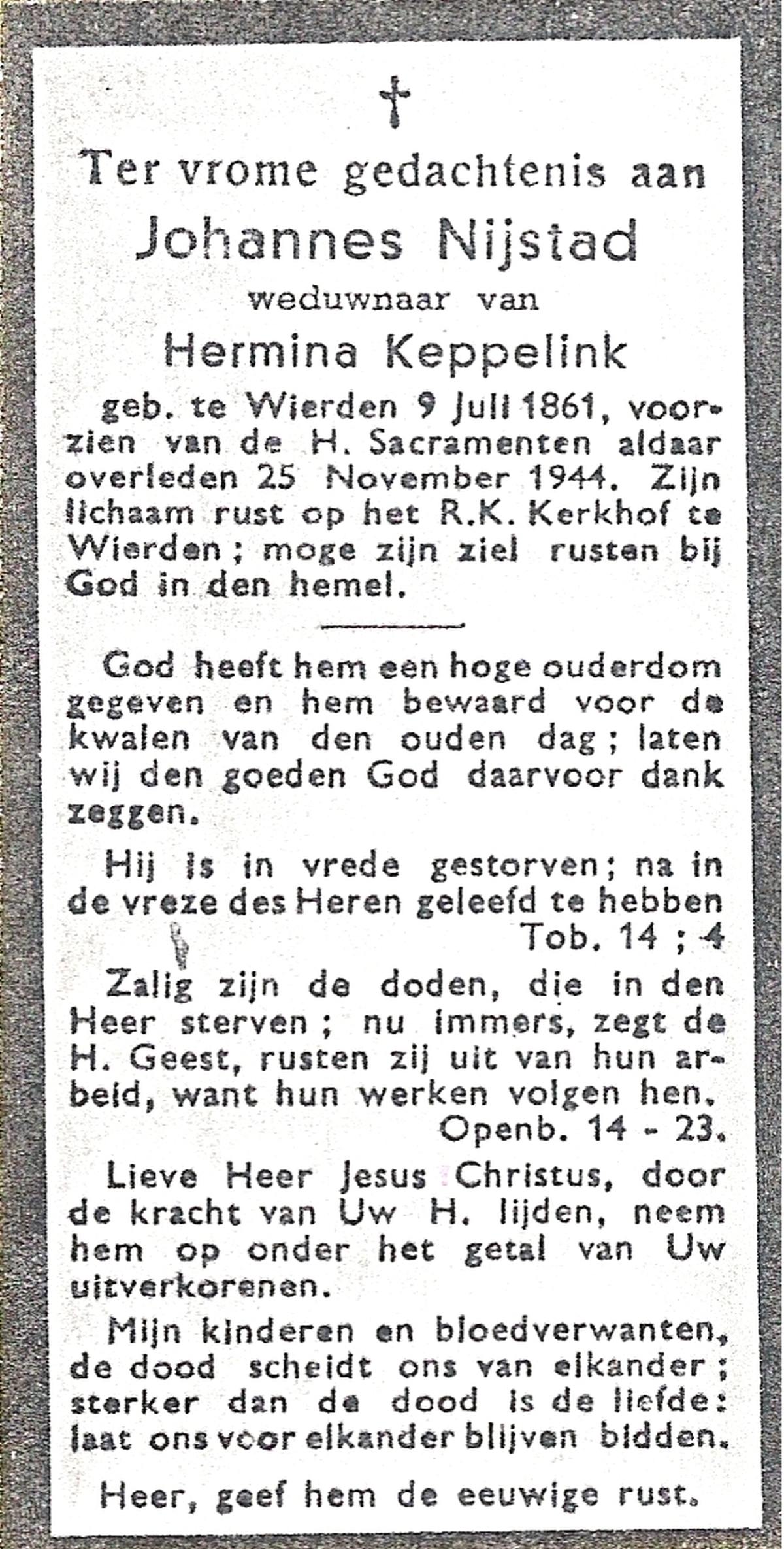 NIJKAMP, Johannes Frederikus, geboren op 08-07-1879 te Lonneker, overleden op 21-6-1961 te Oldenzaal op 82-jarige leeftijd, begraven op 24-6-1961 te Oldenzaal.