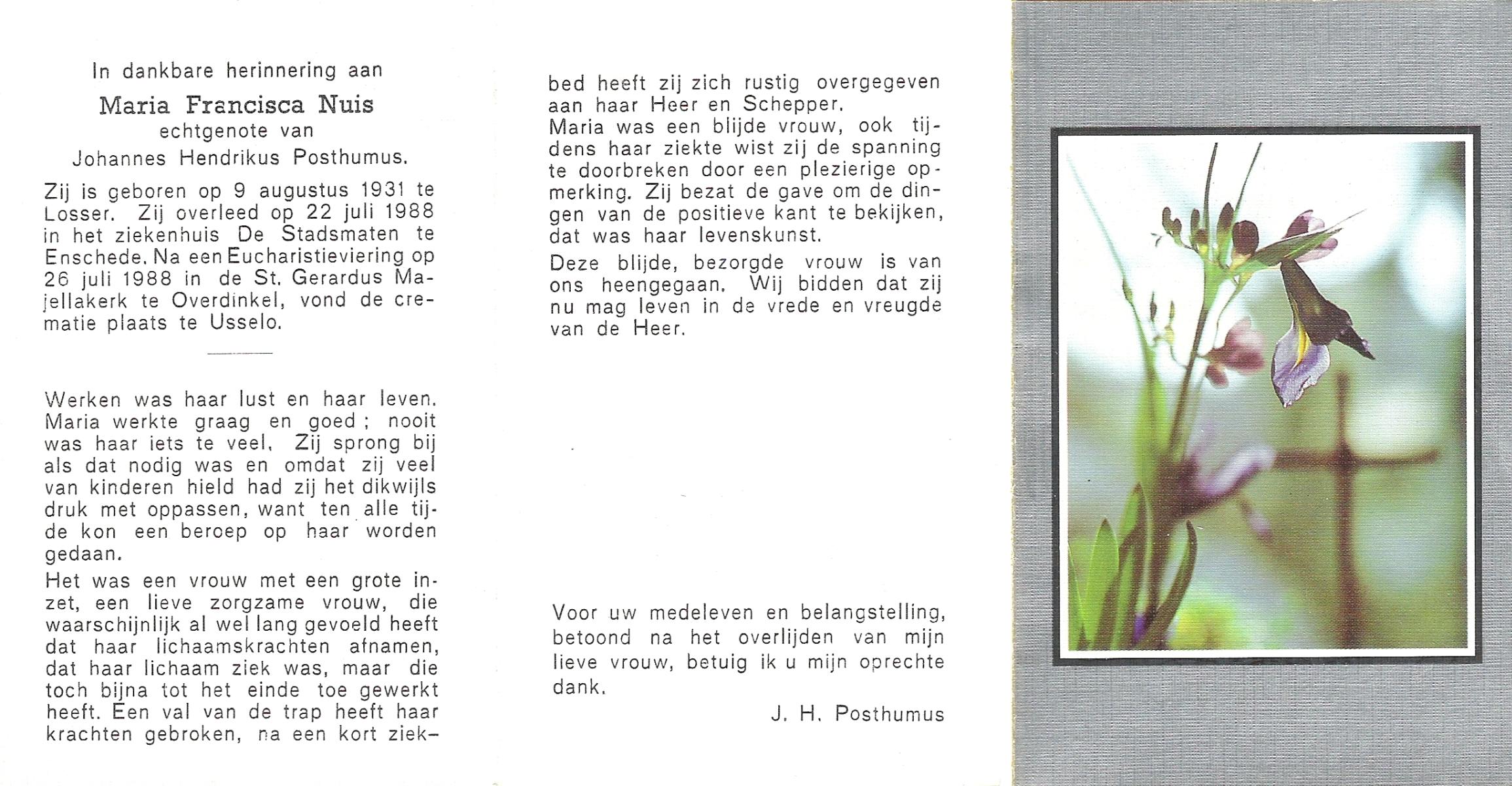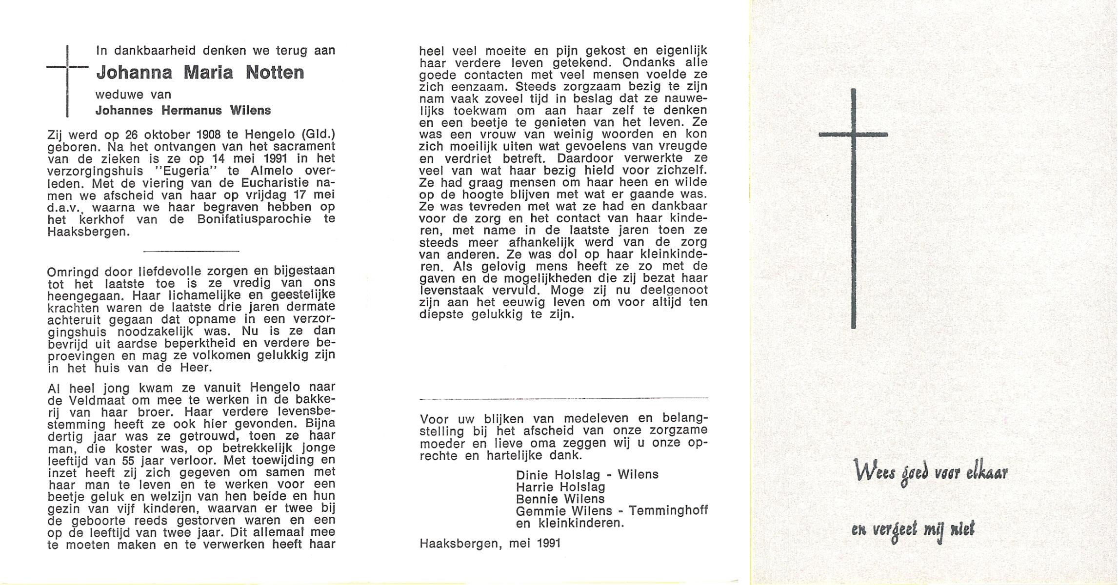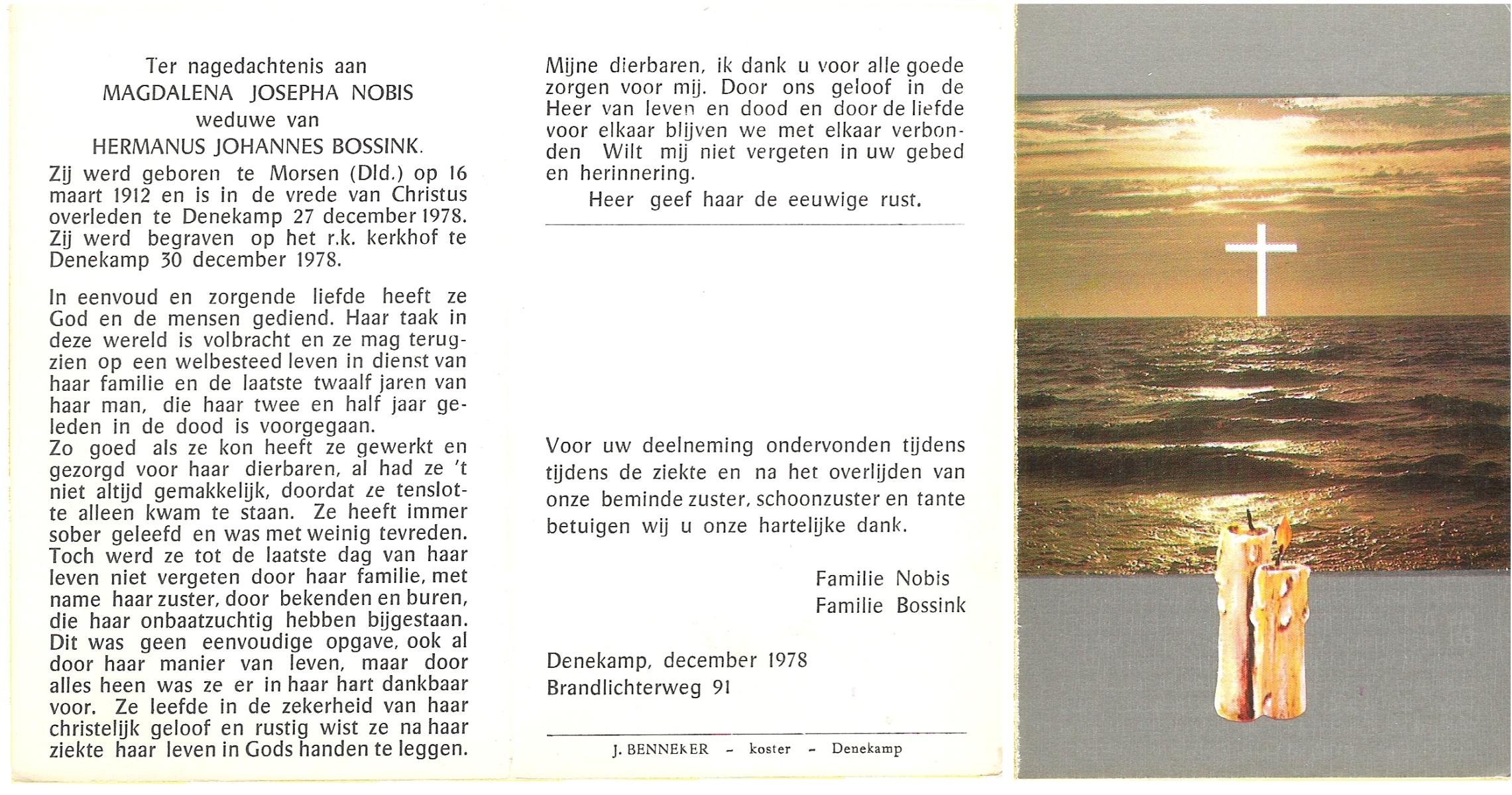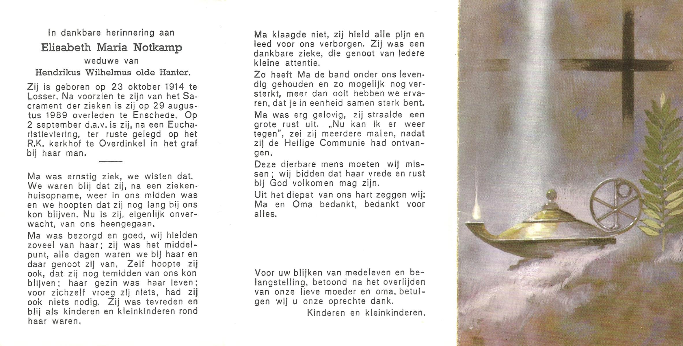 NIJKAMP, Maria Johanna, geboren op 21-3-1911 te Tubbergen, overleden op 25-9-1989 te Enschede op 78-jarige leeftijd, begraven op 28-9-1989 te Denekamp.