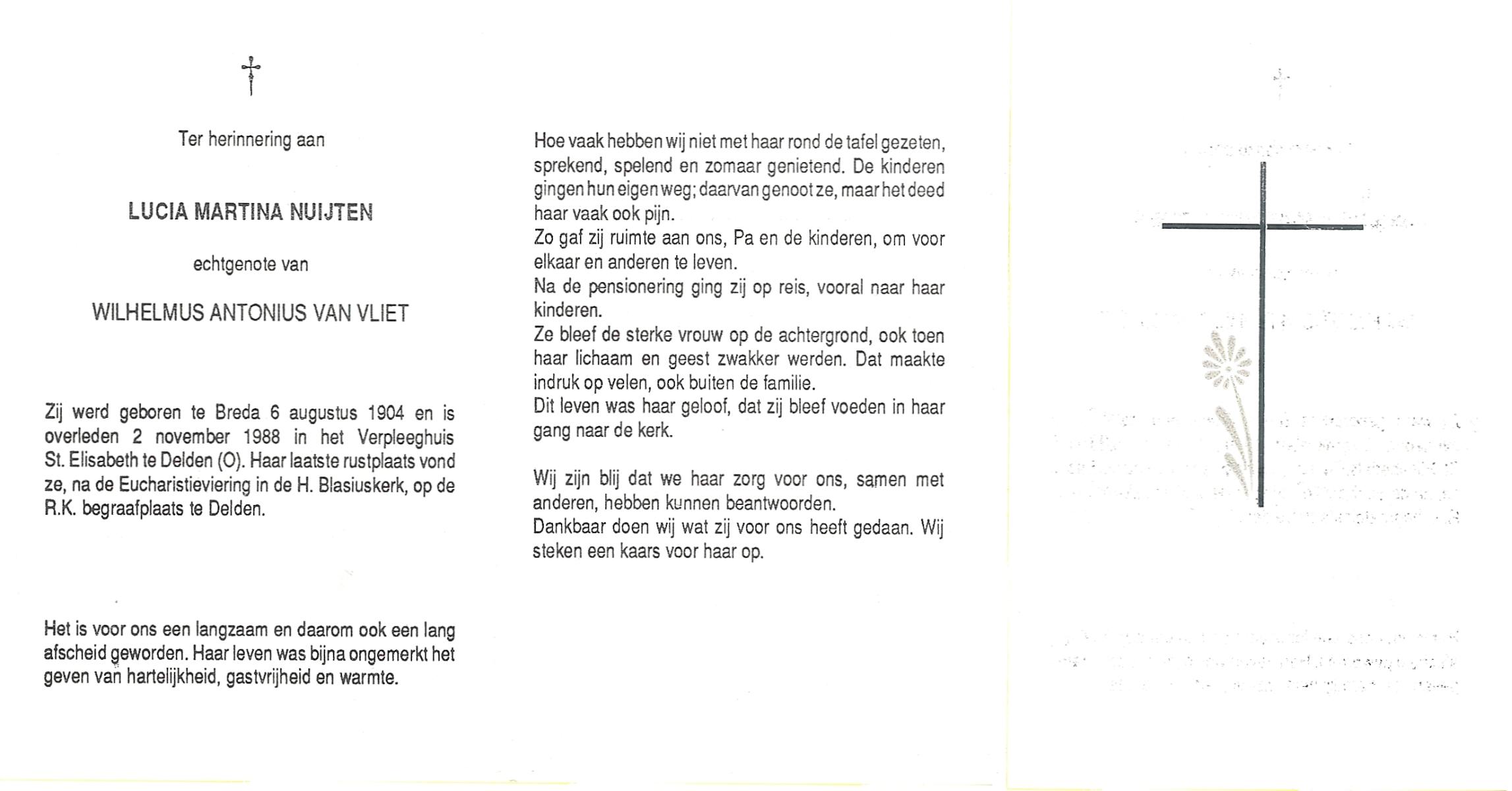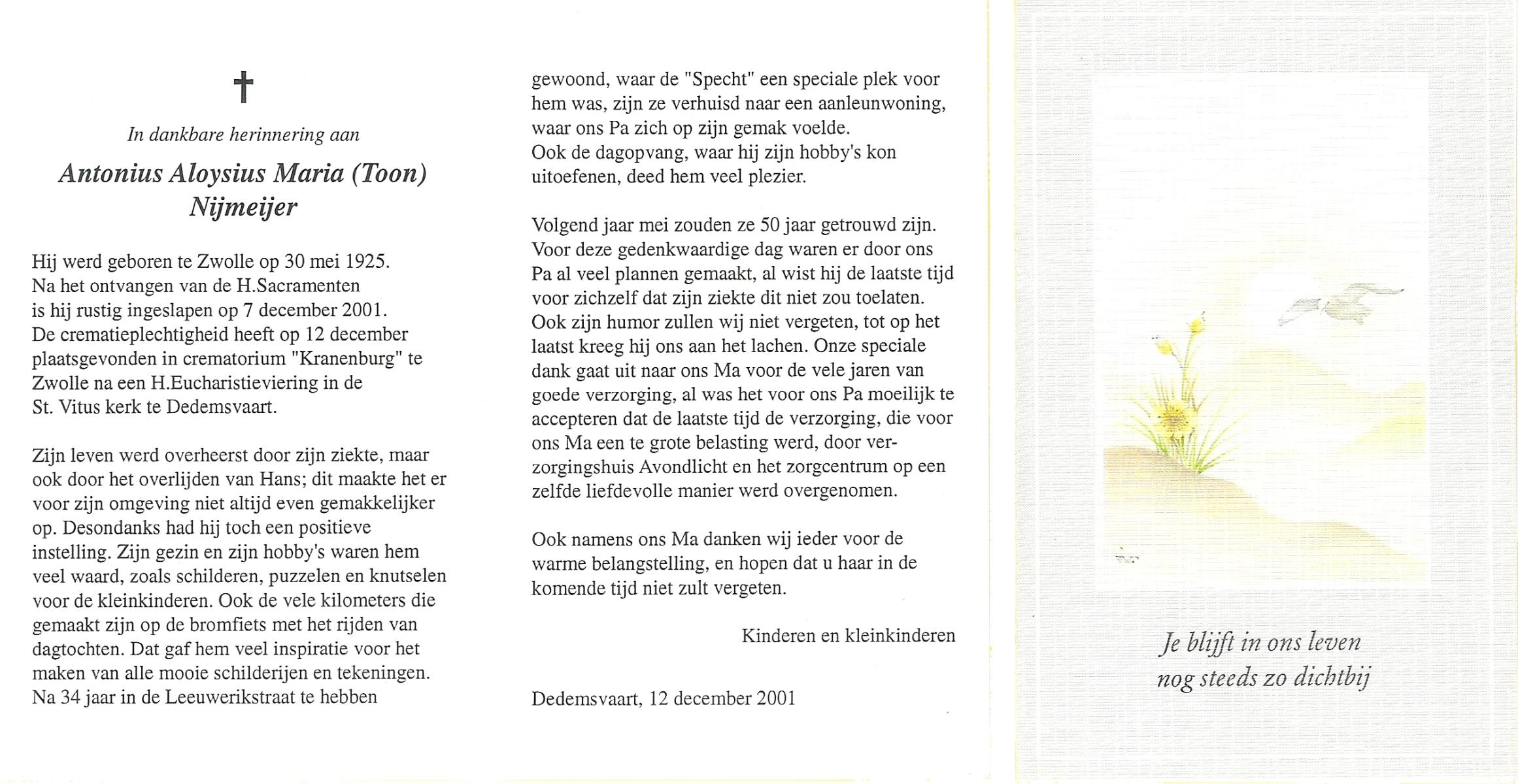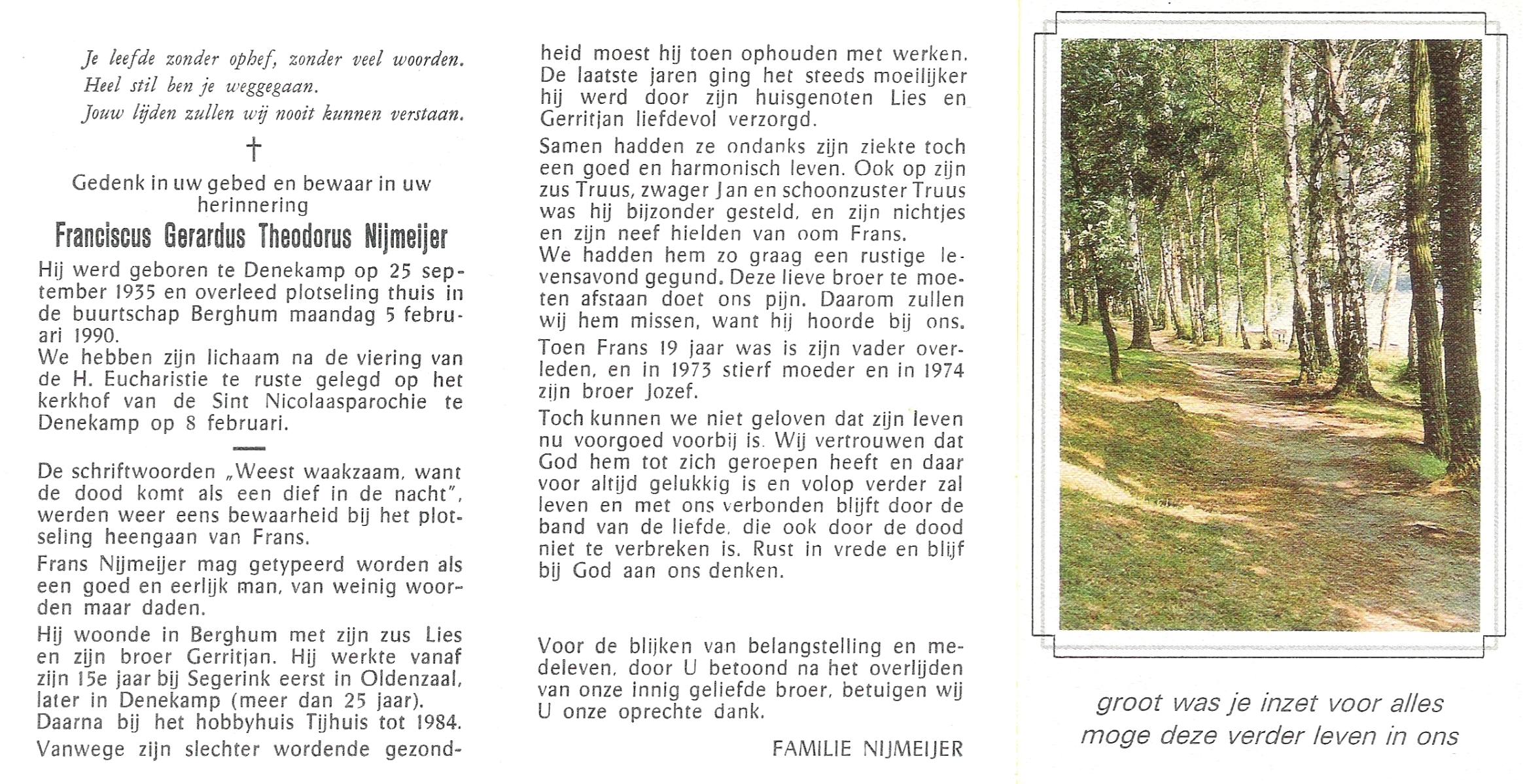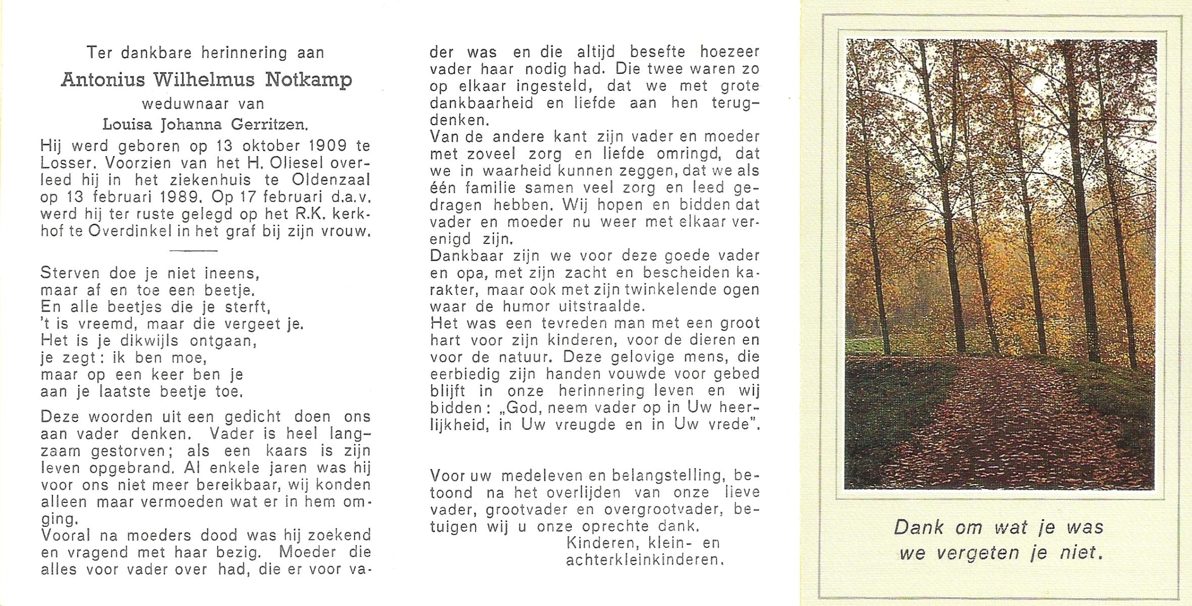 NIJKAMP, Wilhelmus Josephus, geboren op 4-3-1908 te Schoonheten, overleden op 17-6-1996 te Raalte op 88-jarige leeftijd, begraven op 21-6-1996 te Luttenberg, Raalte.
