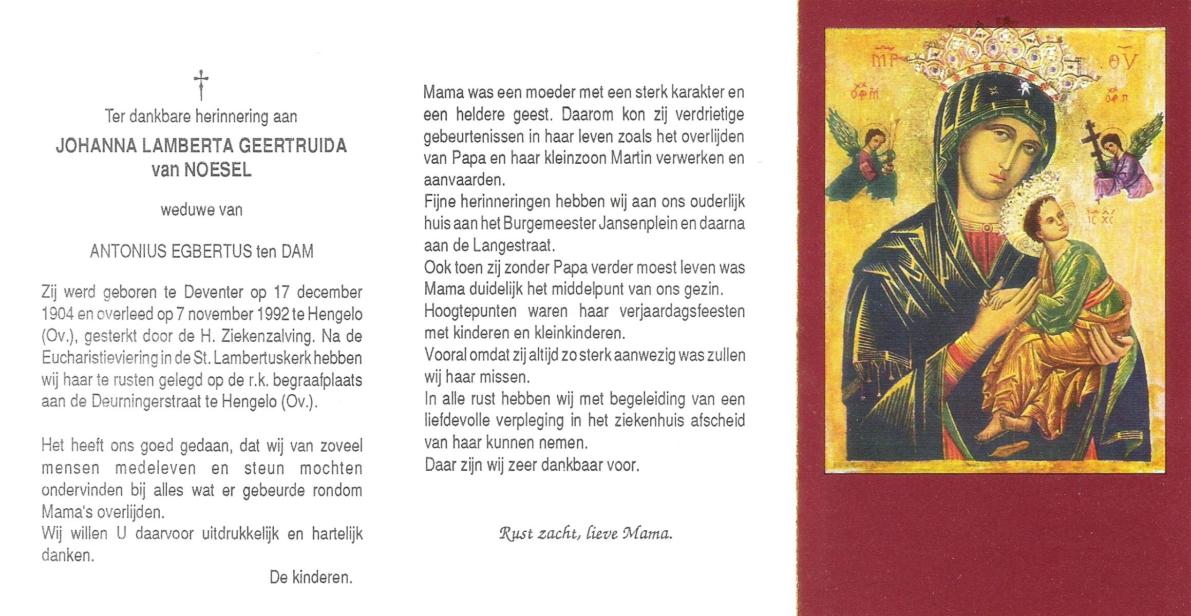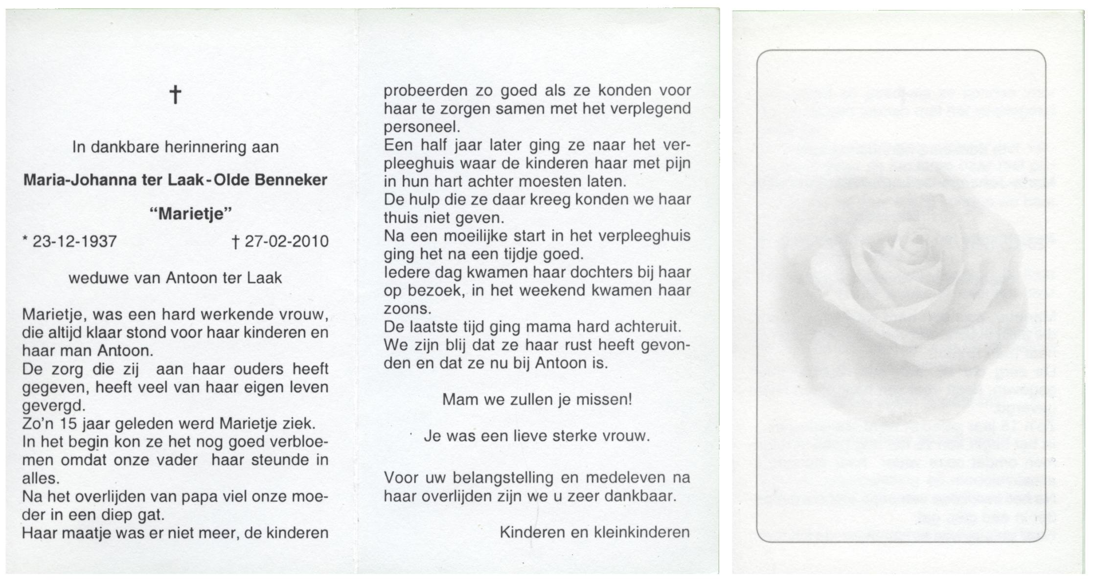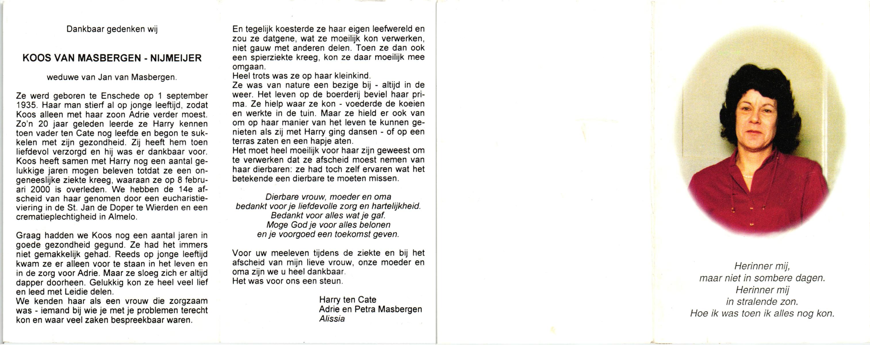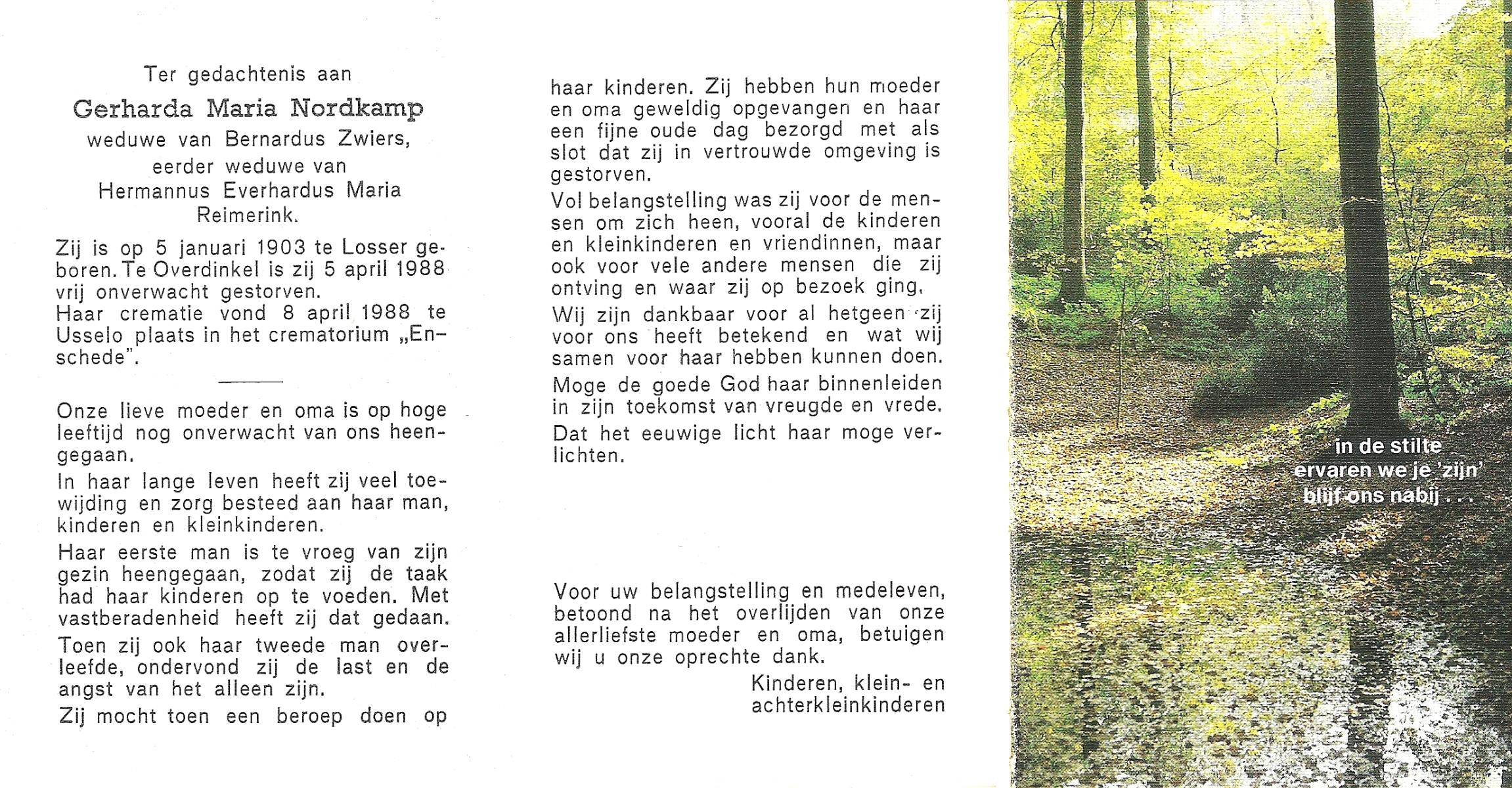NIJKRAKE, Gerarda Johanna, geboren op 1-9-1911 te Deurningen, overleden op 12-2-1992 te Tubbergen op 80-jarige leeftijd, begraven op 17-2-1992 te Gendringen.