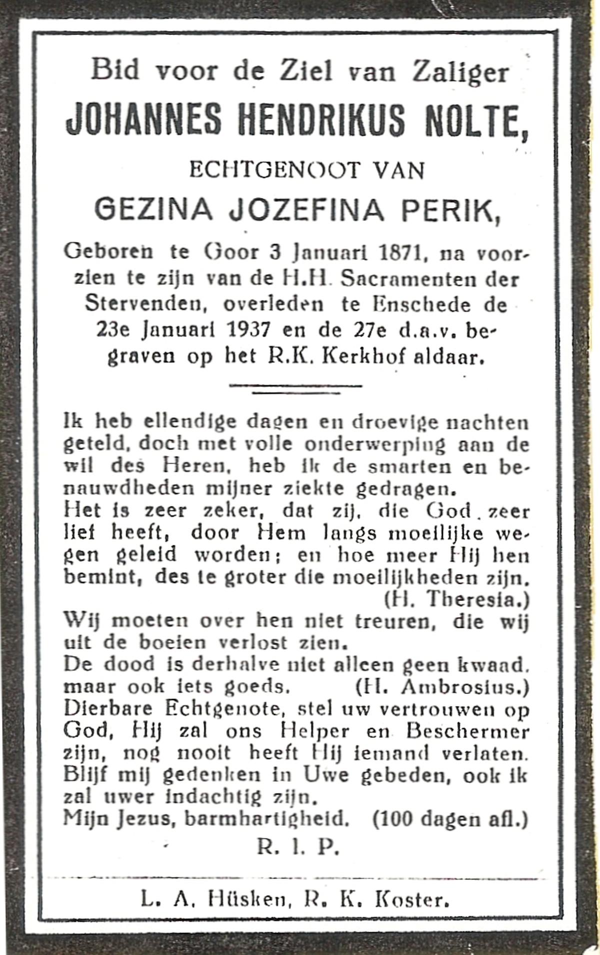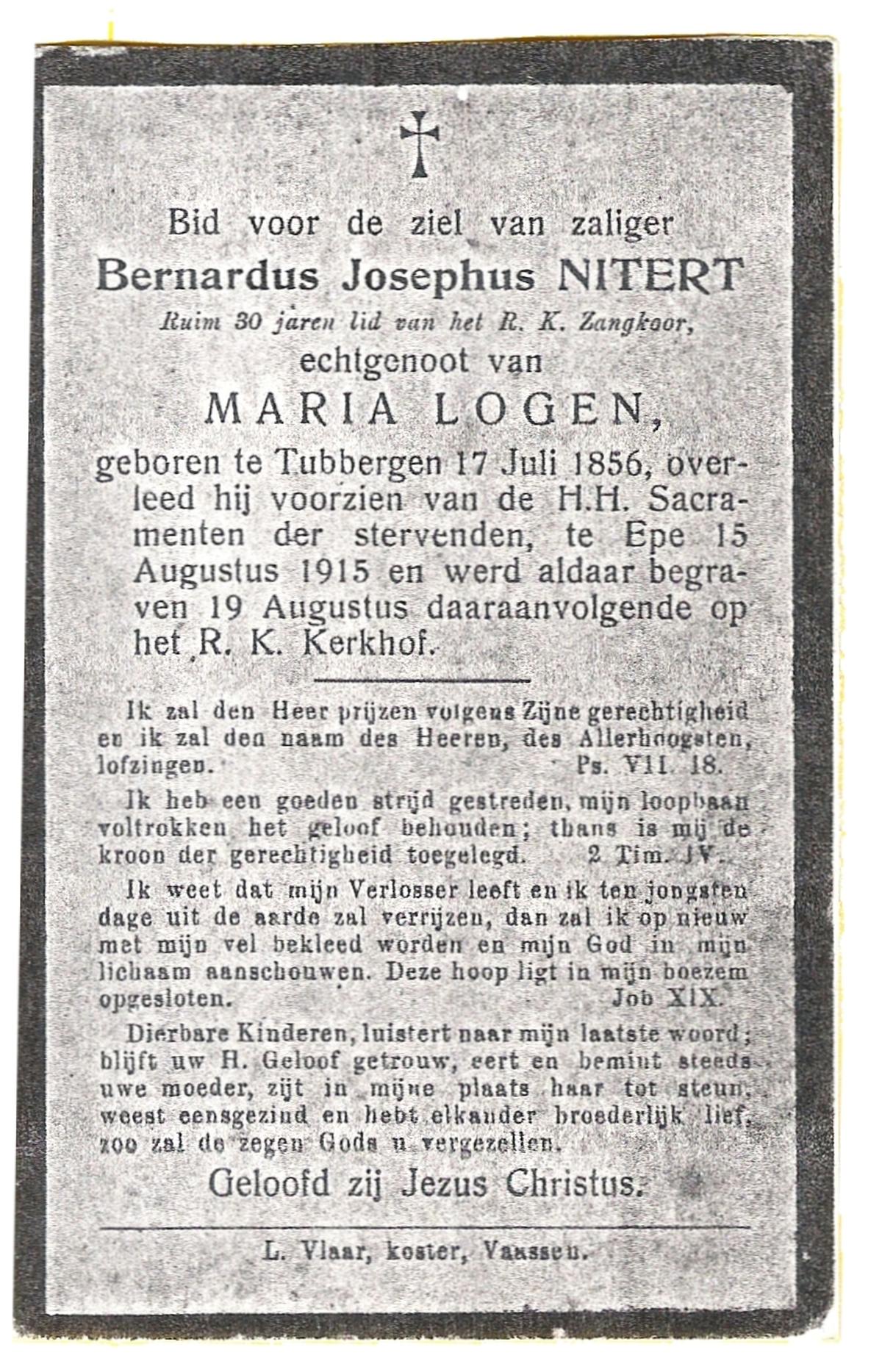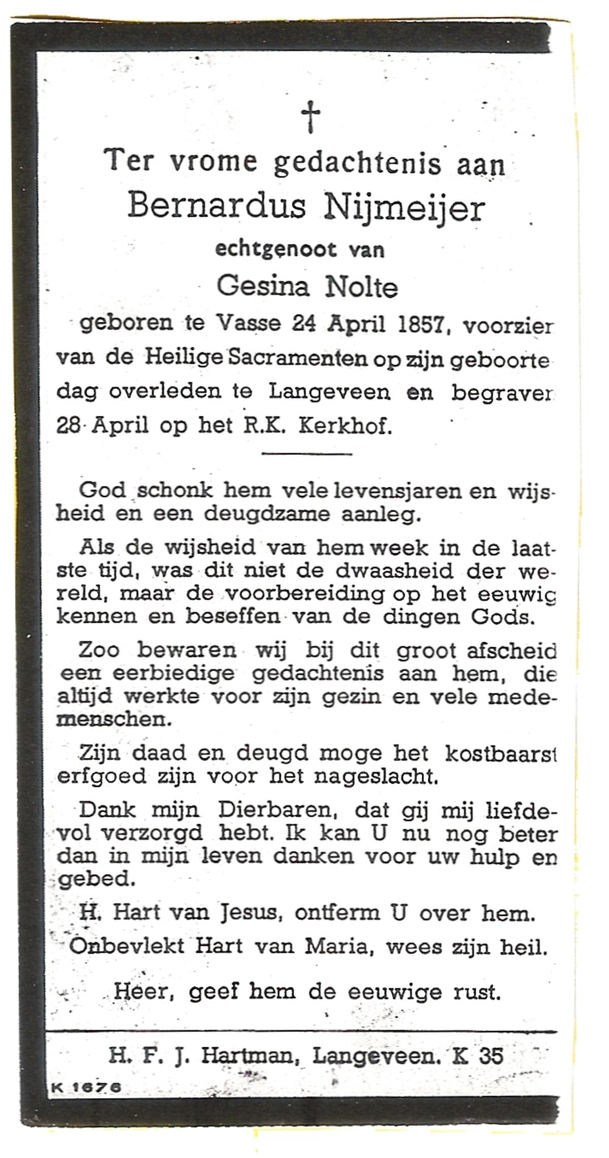 NIJLAND, Bernardus Hendrikus, geboren op 09-03-1869 te Losser, overleden op 28-12-1937 te Enschede op 68-jarige leeftijd, begraven op 31-12-1937 te Losser.