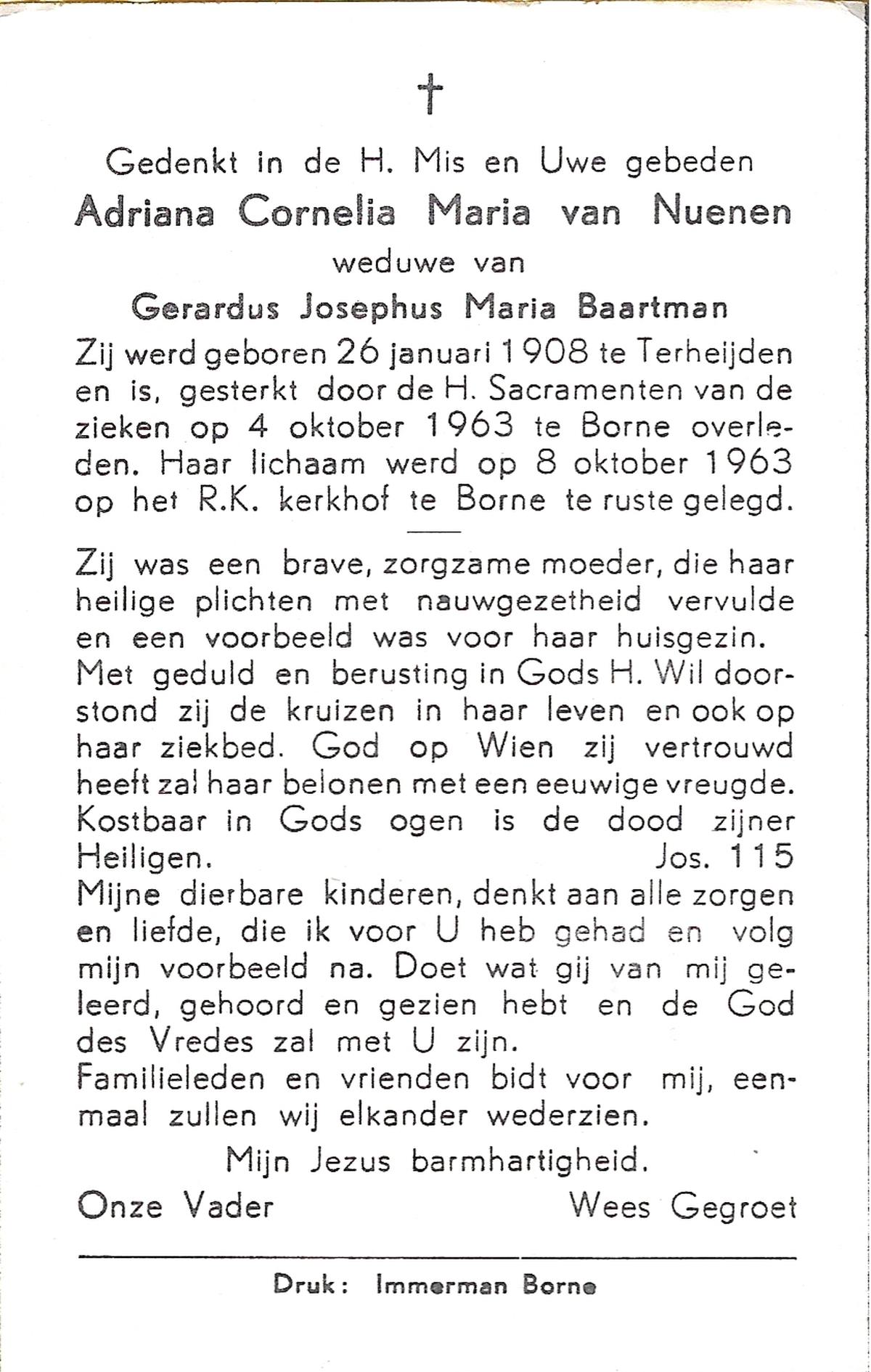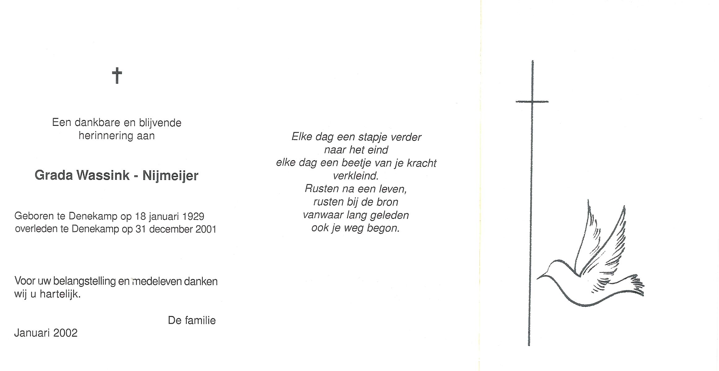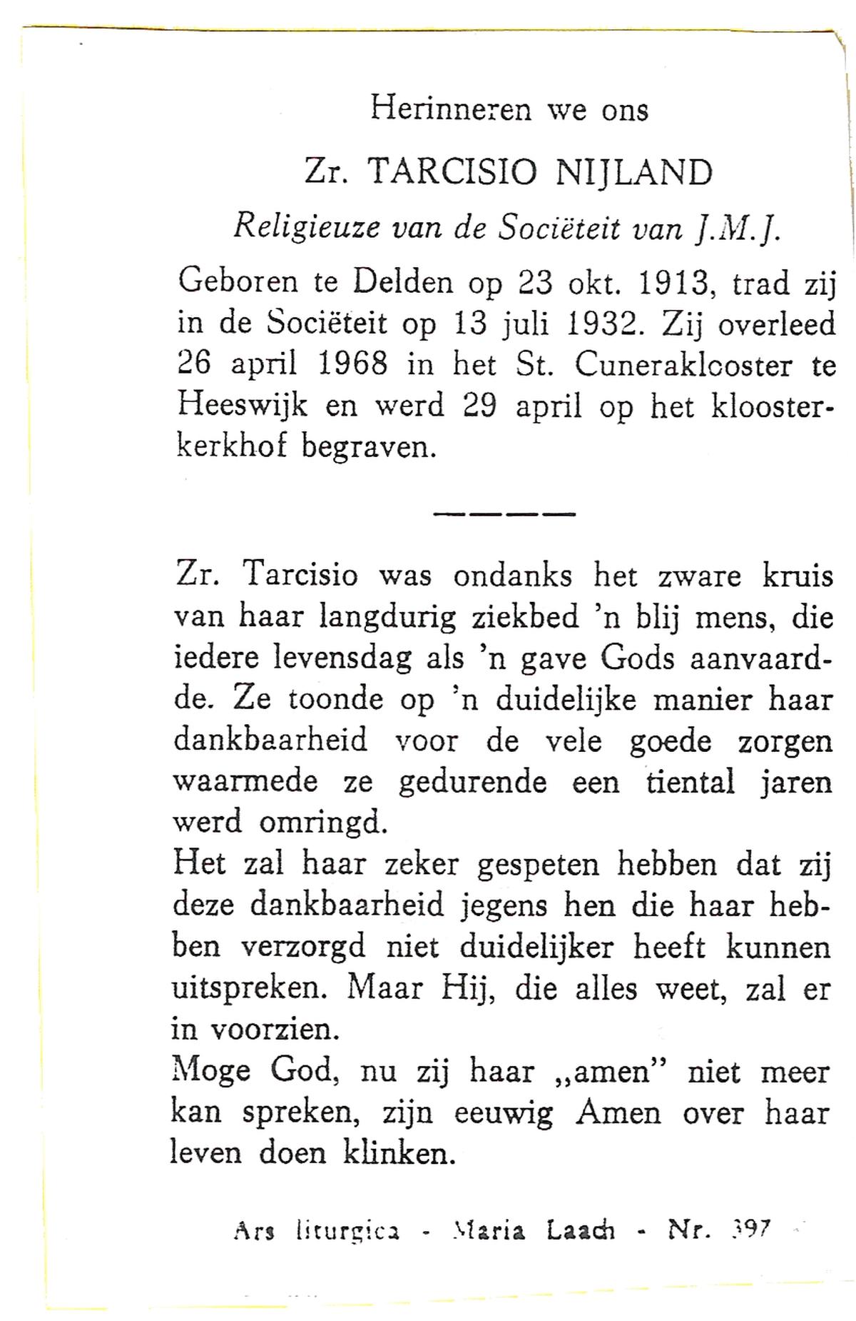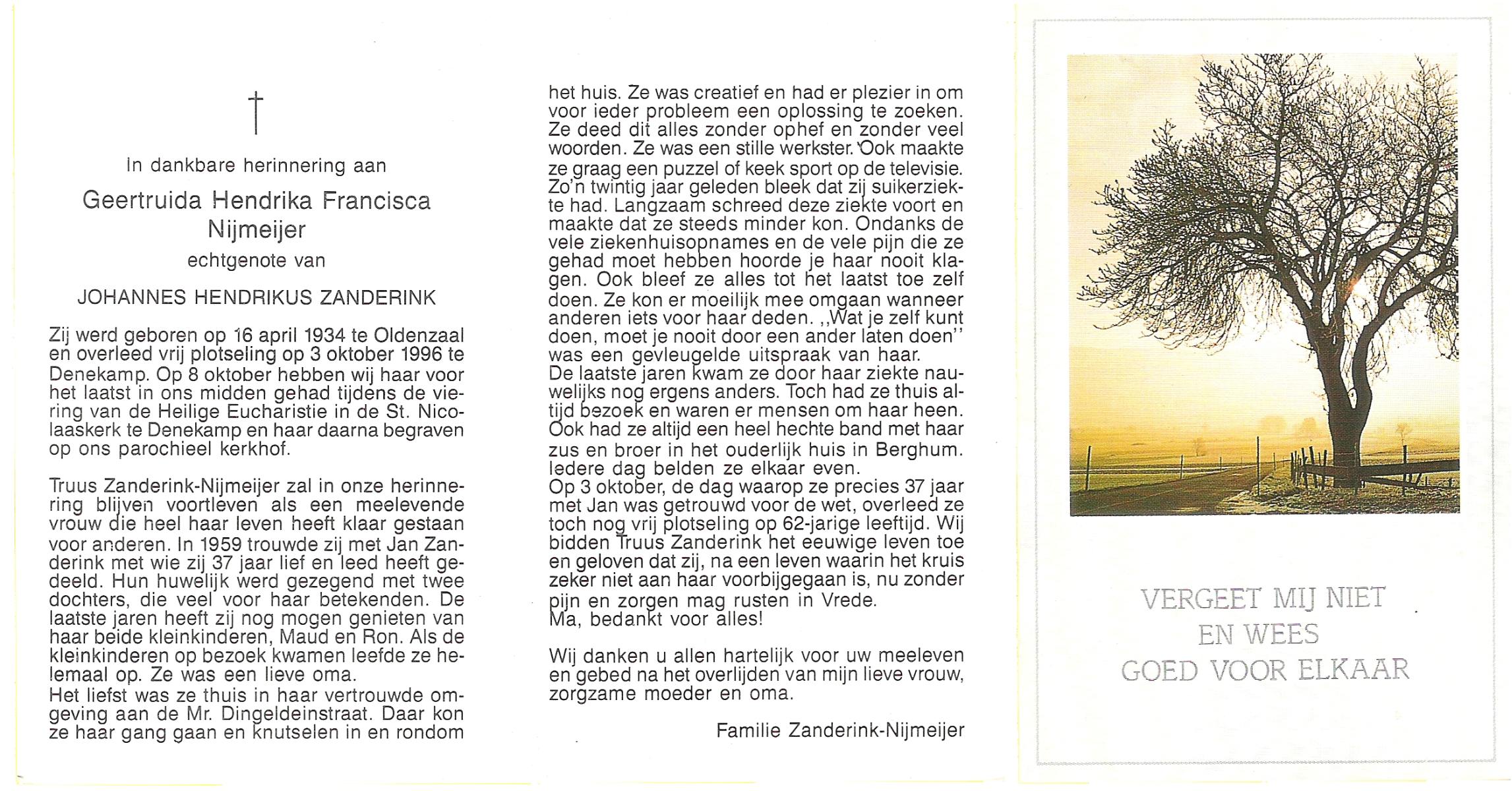 NIJLAND, Gerarda Aleida, geboren op 21-1-1917 te Hasselo, overleden op 5-3-1983 te Borne op 66-jarige leeftijd, begraven op 9-3-1983 te Borne.