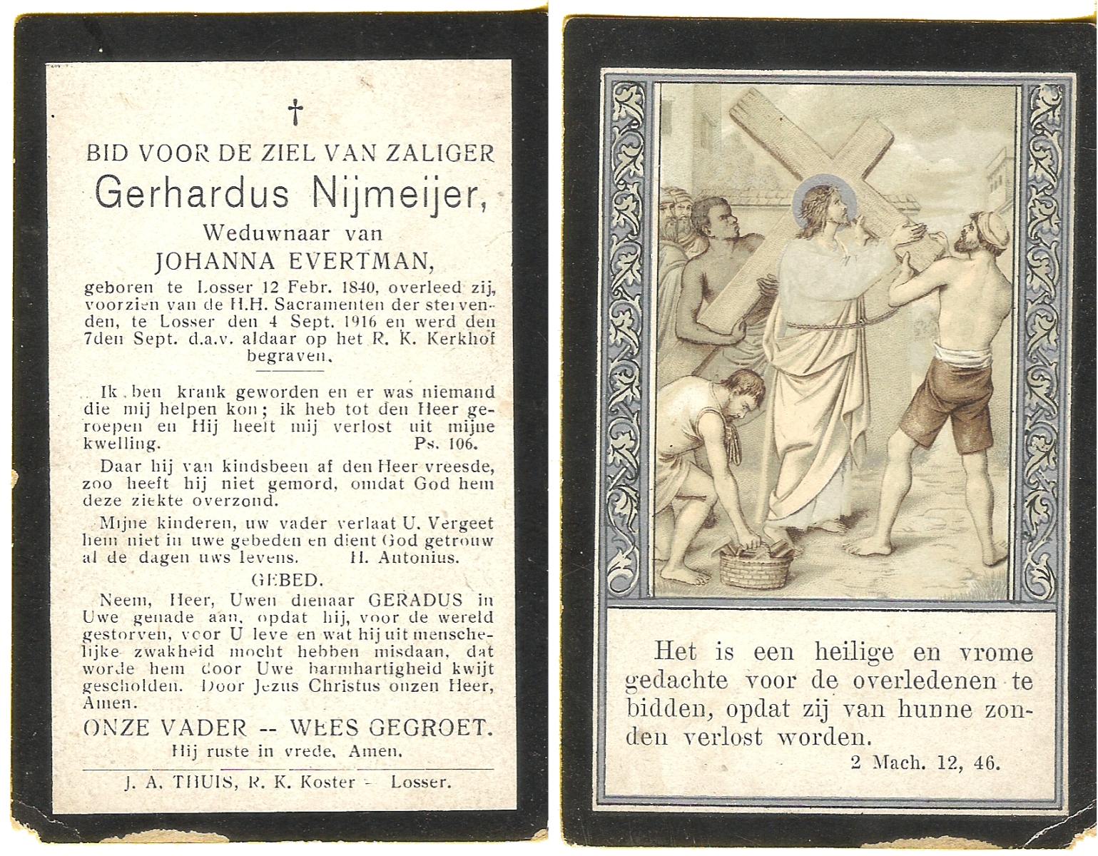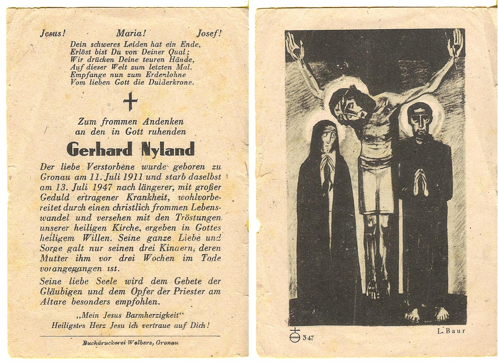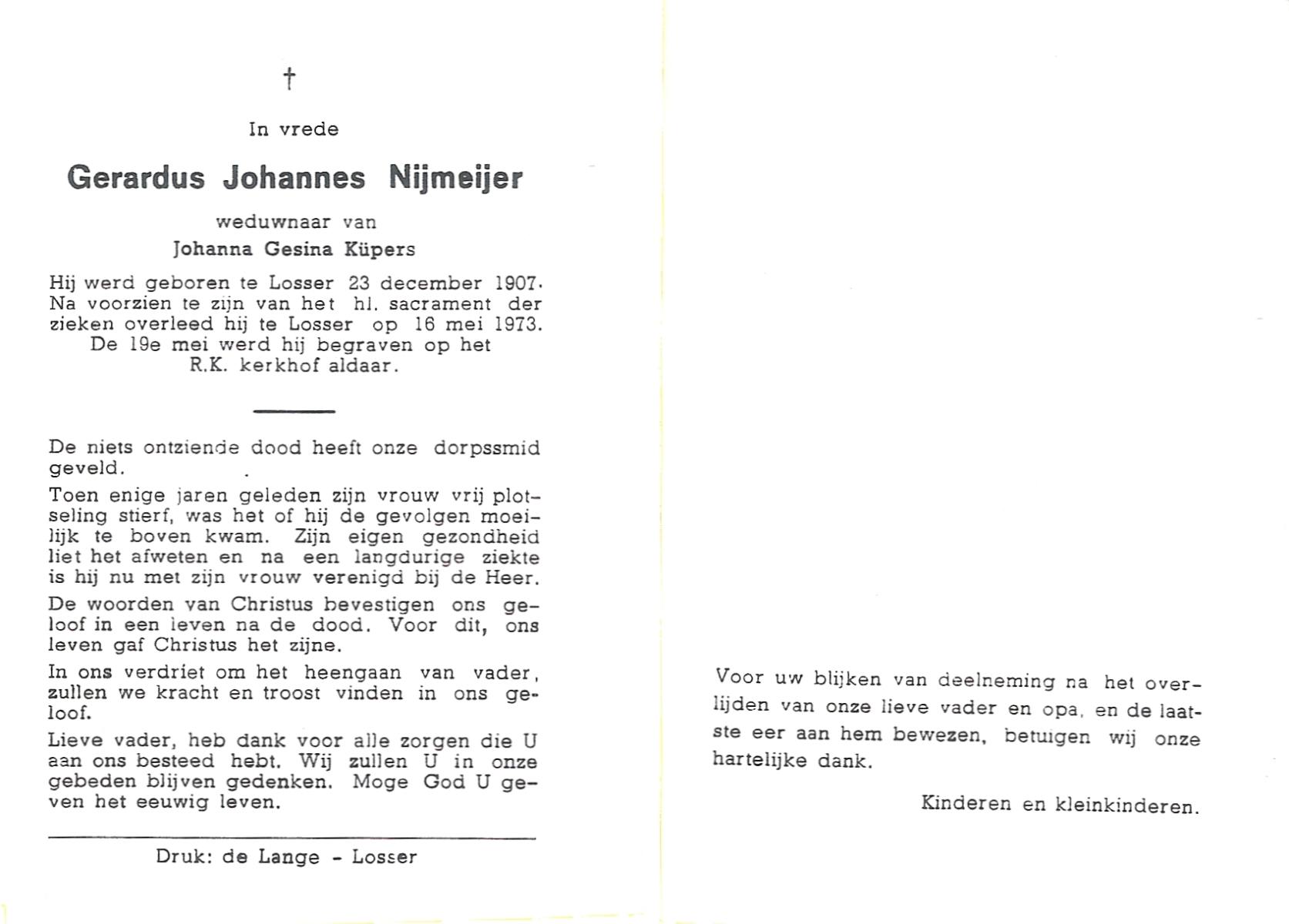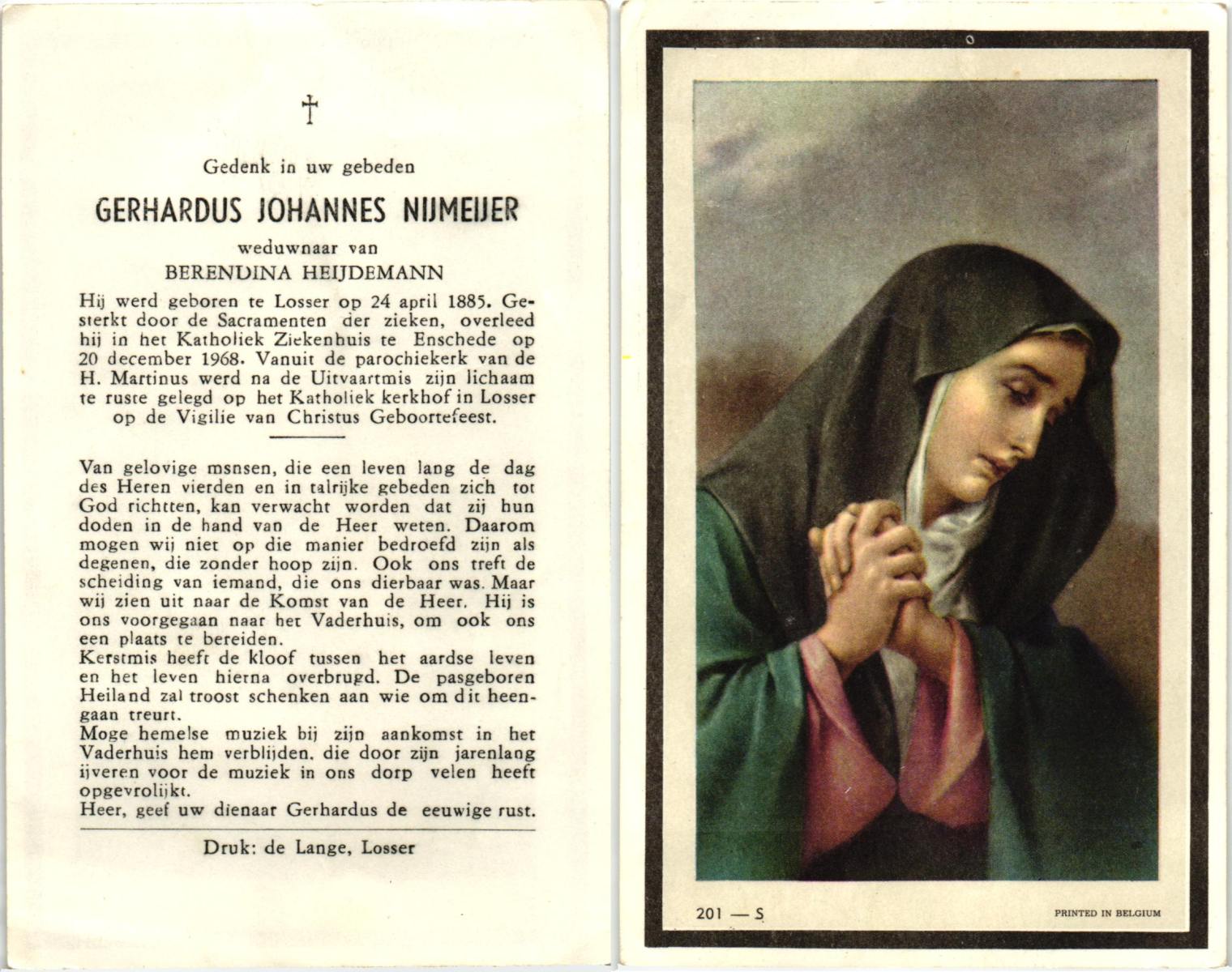 NIJLAND, Gerhardus Antonius, geboren op 03-08-1893 te Overdinkel, overleden op 17-12-1959 te Losser op 66-jarige leeftijd, begraven op 21-12-1959 te Overdinkel.