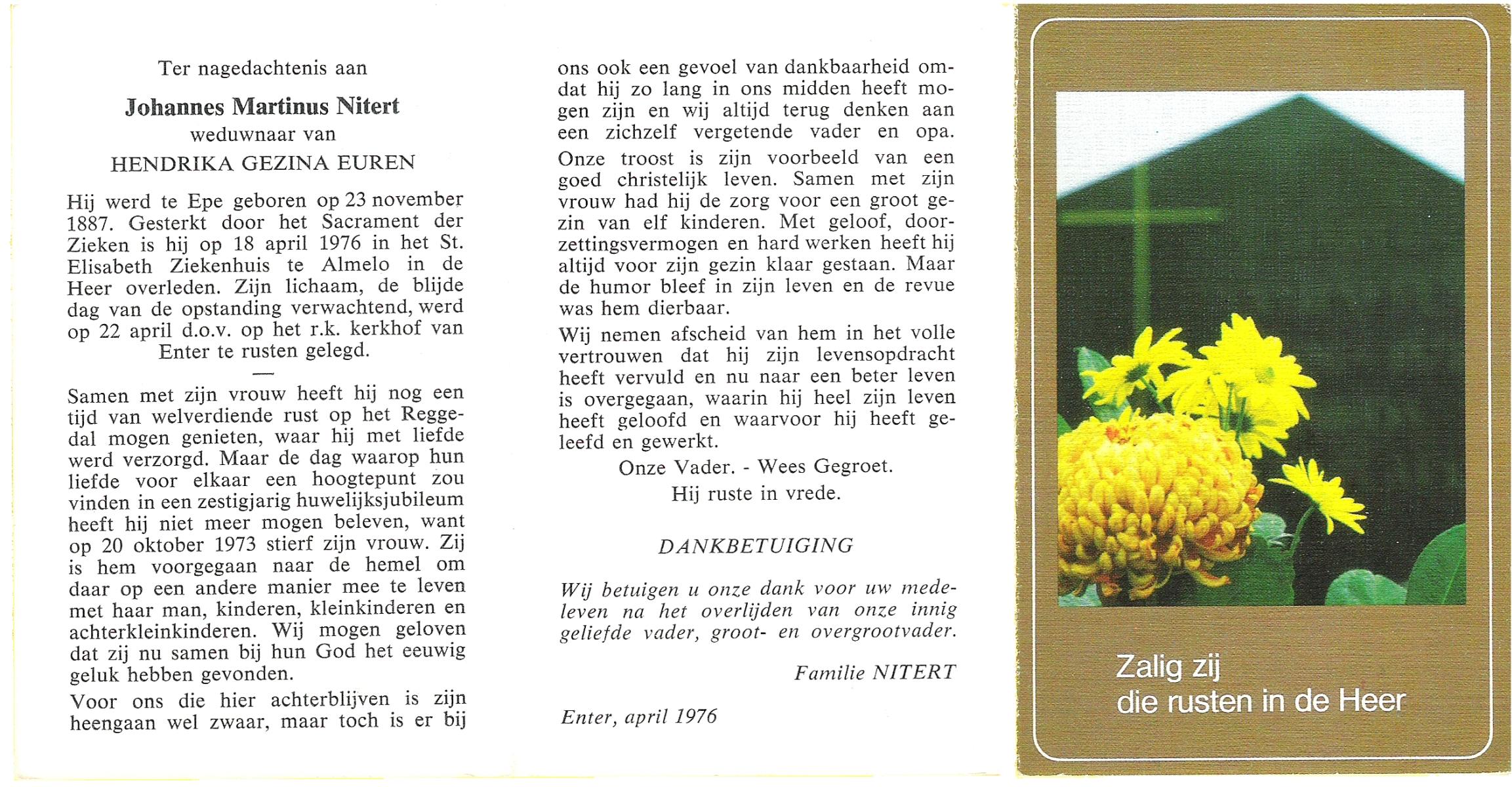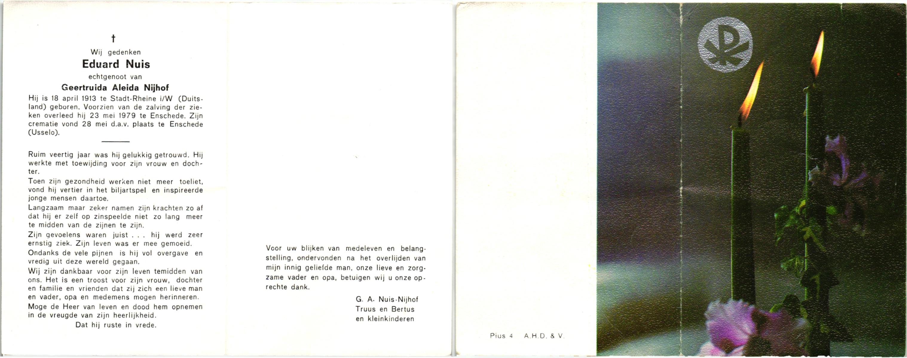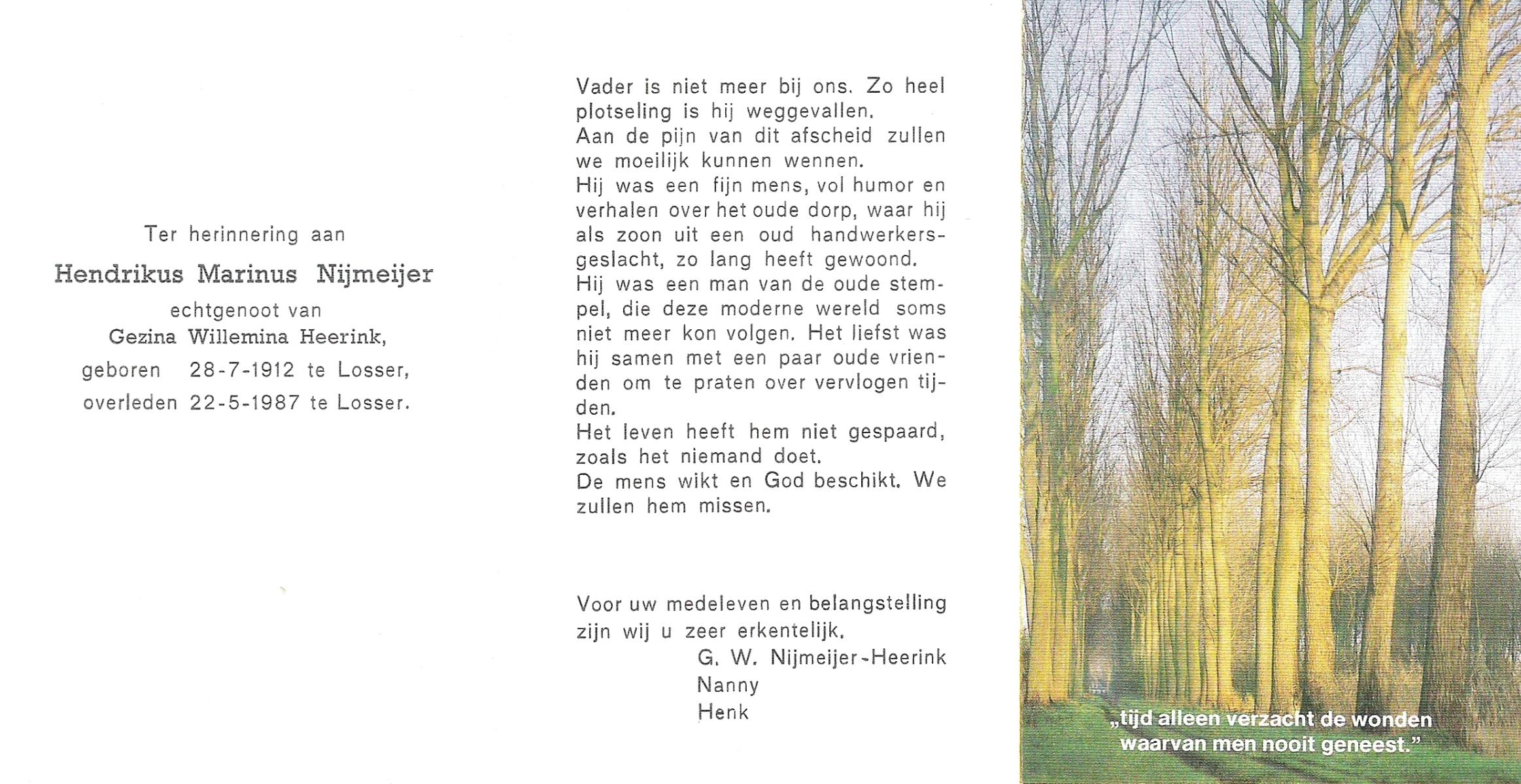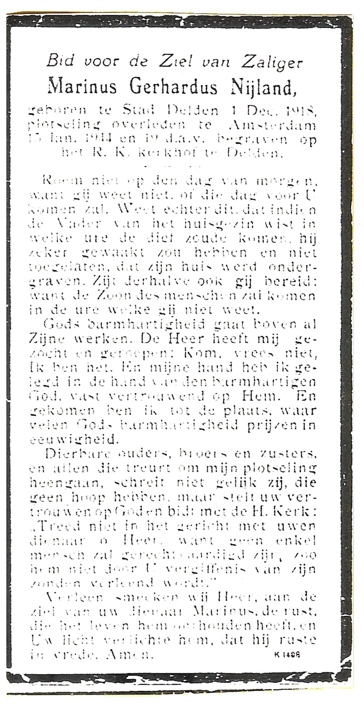NIJLAND, Gerrit Jan Marinus, geboren op 4-5-1906 te Losser, overleden op 21-4-1979 te Oldenzaal op 72-jarige leeftijd, gecremeerd te Usselo.