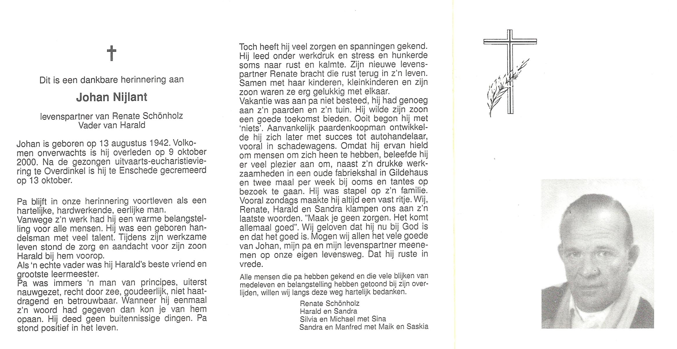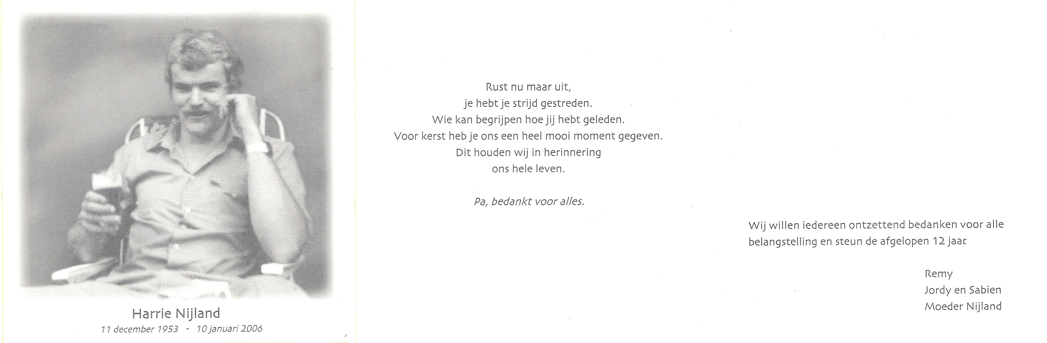 NIJLAND, Harrie, geboren op 11-12-1953, overleden op 10-1-2006 op 52-jarige leeftijd.