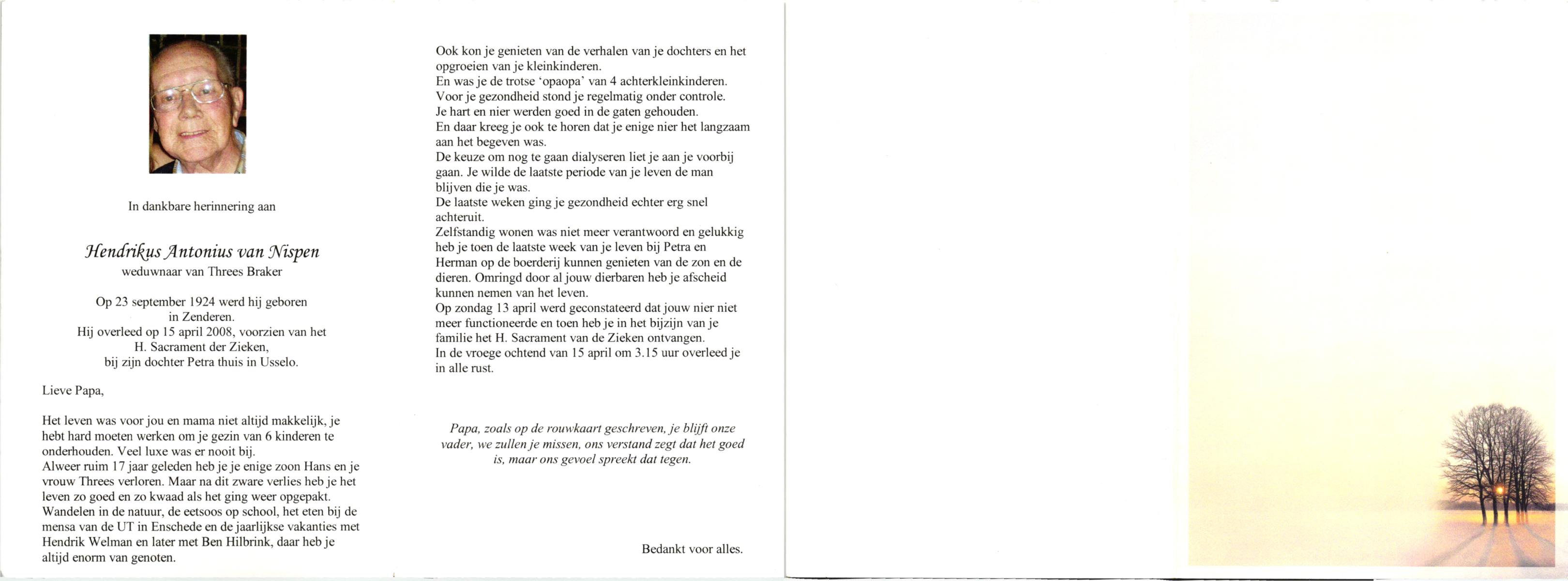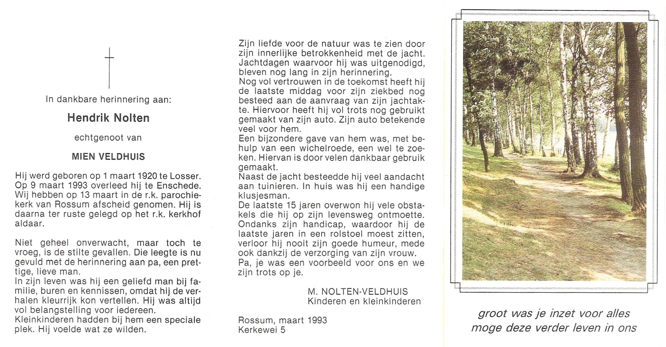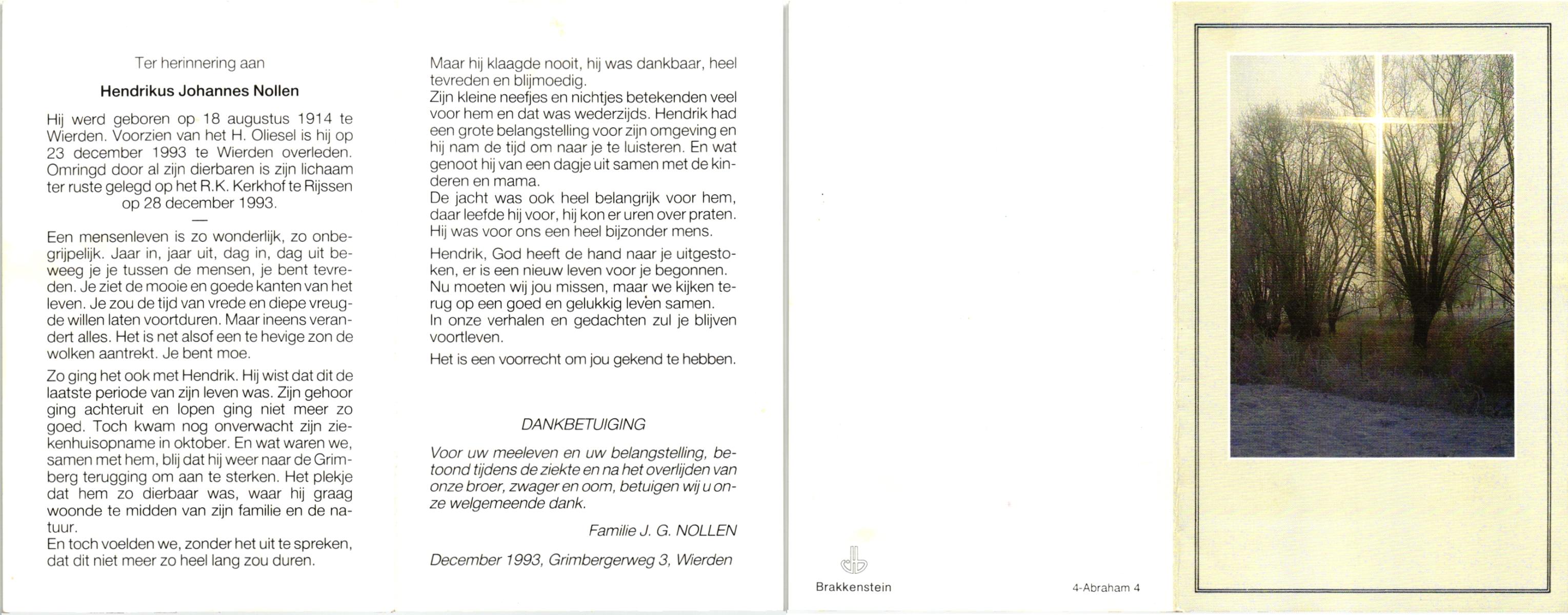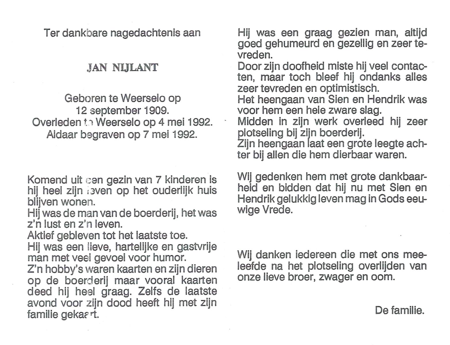 NIJLAND, Hendrik, geboren op 29-3-1902 te Hasselo, overleden op 9-1-1994 te Hengelo (Ov.) op 91-jarige leeftijd, begraven op 12-1-1994 te Hengelo (Ov.).