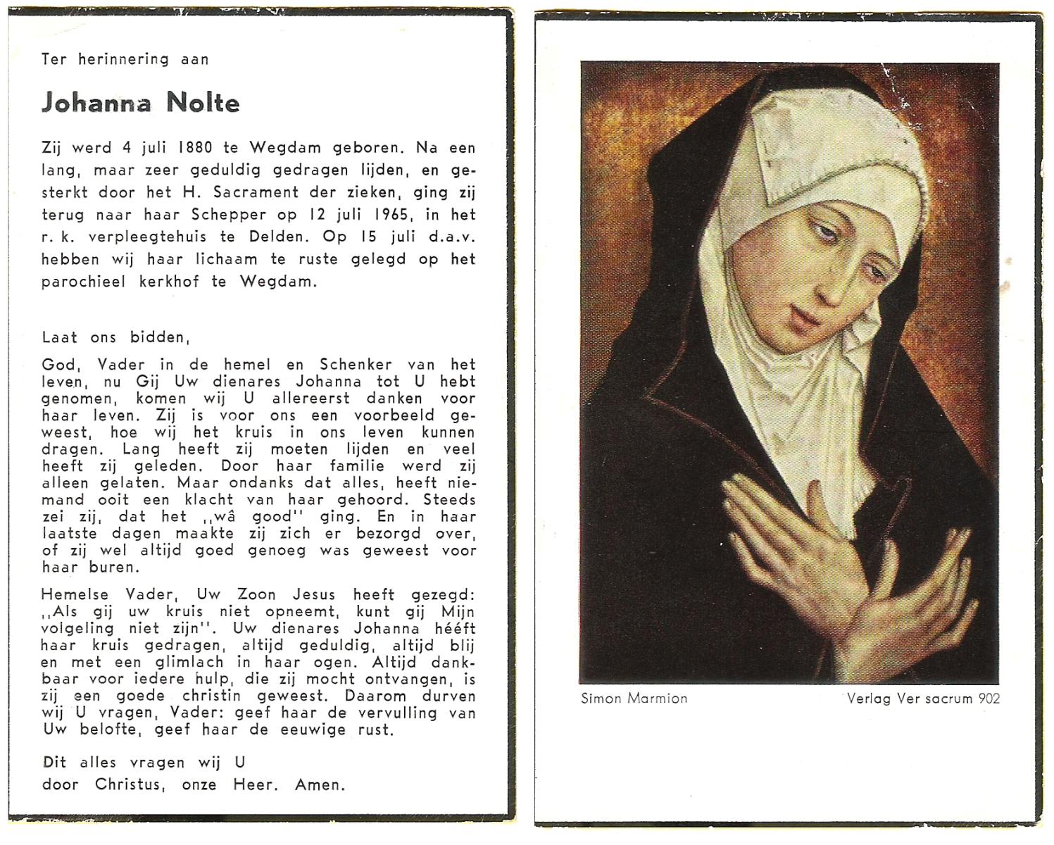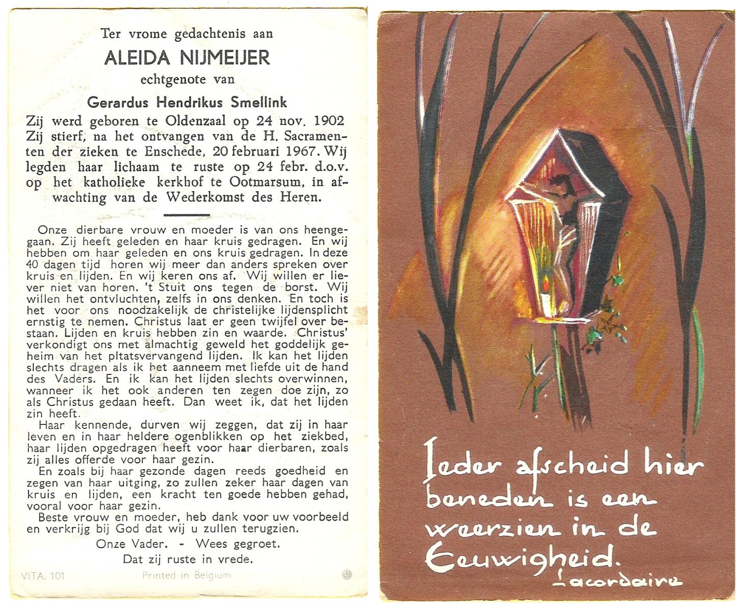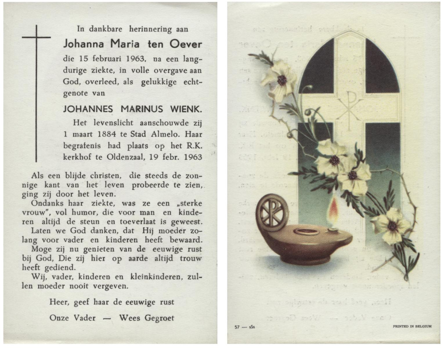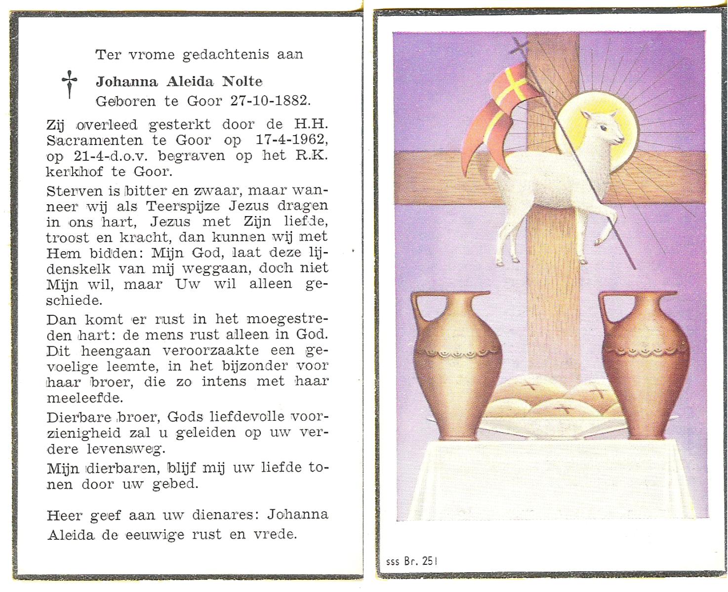 OLDE DUBBELINK, Johanna Aleida, geboren op 31-5-1910 te Lemselo, overleden op 28-4-1975 te Almelo op 64-jarige leeftijd, begraven op 1-5-1975 te Tubbergen.