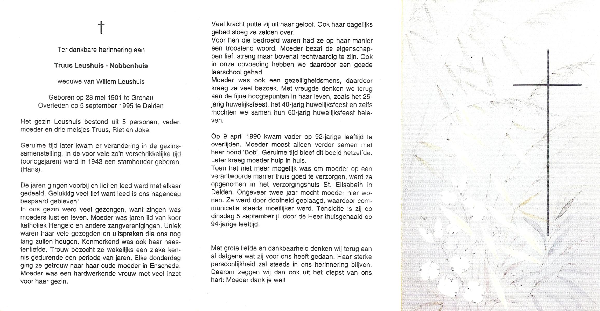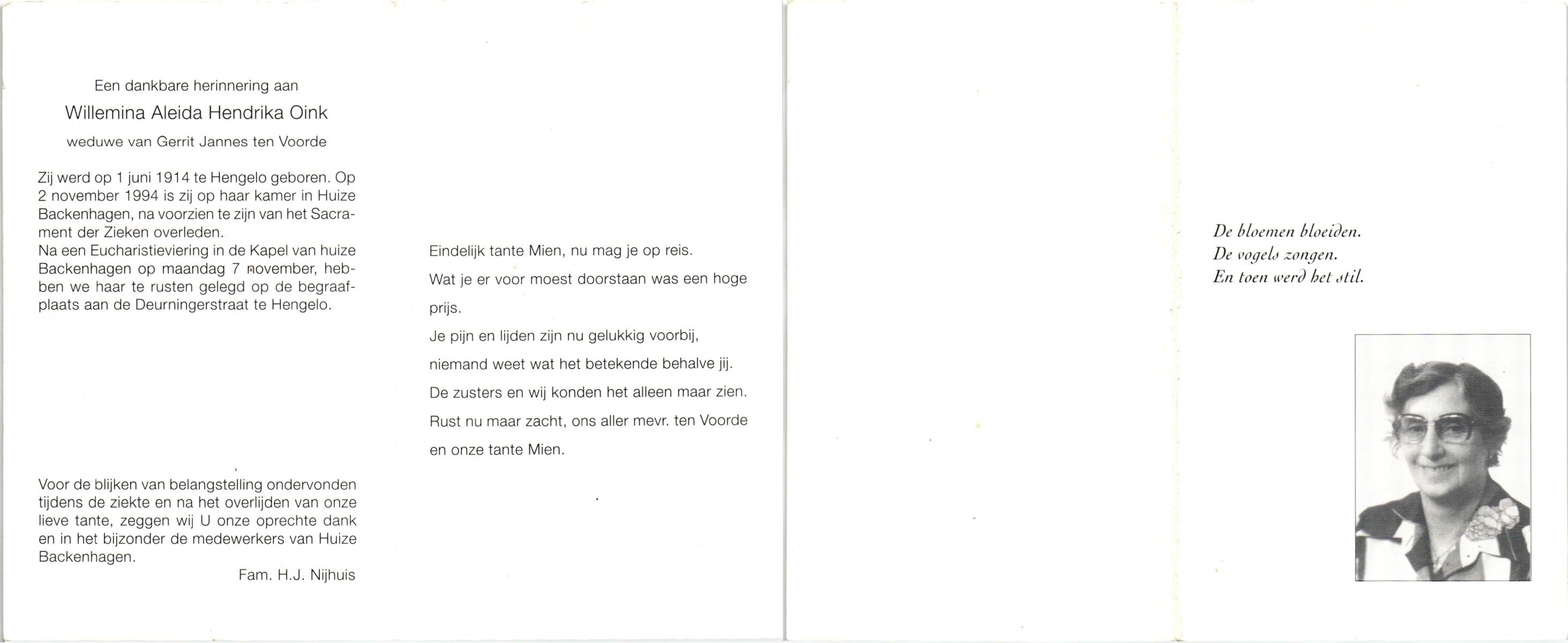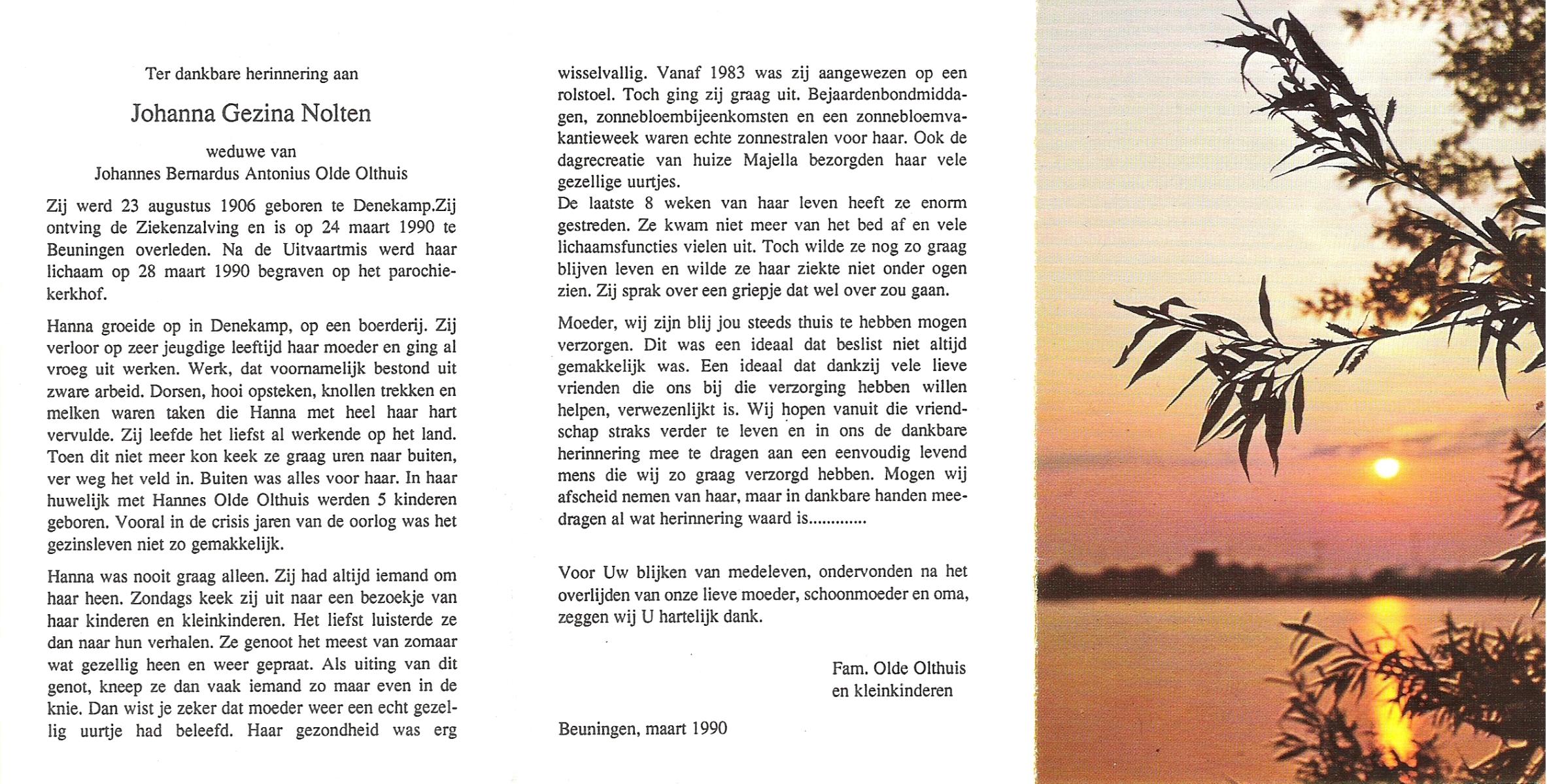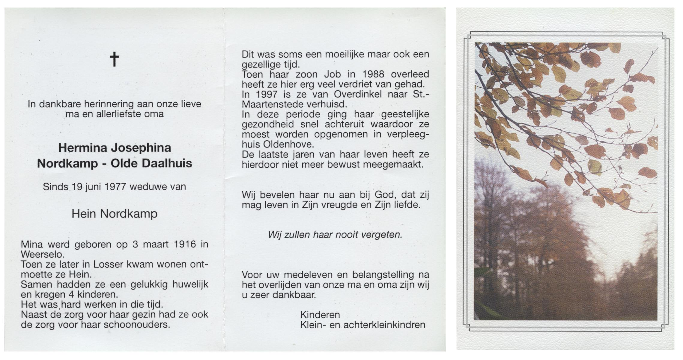 OLDE HANHOFF, Hermina Gezina, geboren op 25-5-1906 te De Lutte, overleden op 31-1-1995 op 88-jarige leeftijd, begraven op 3-2-1995 te De Lutte.