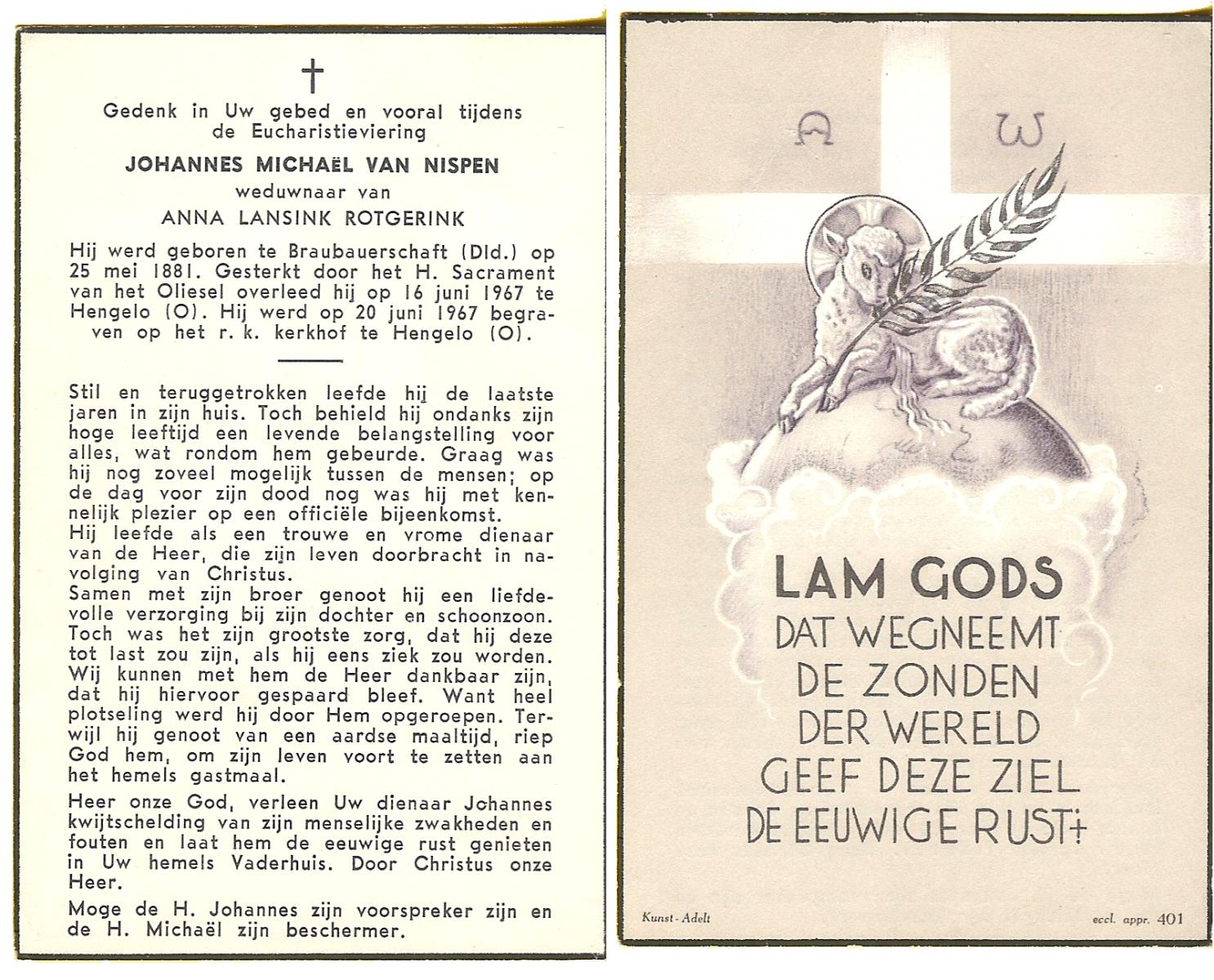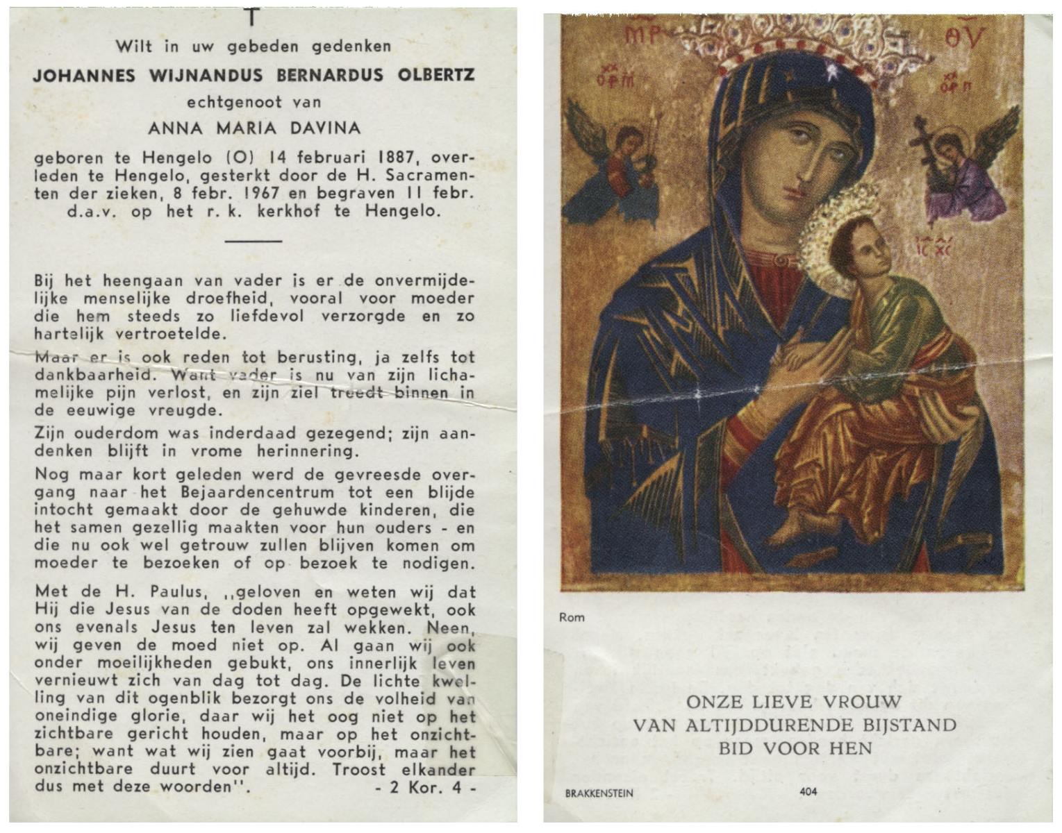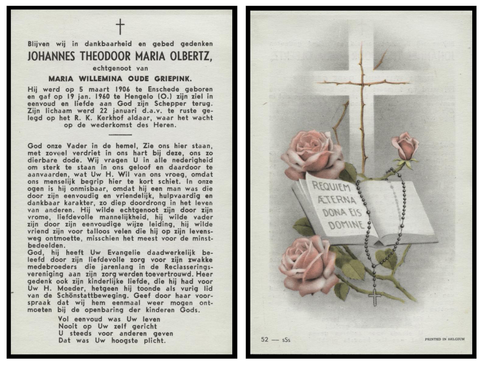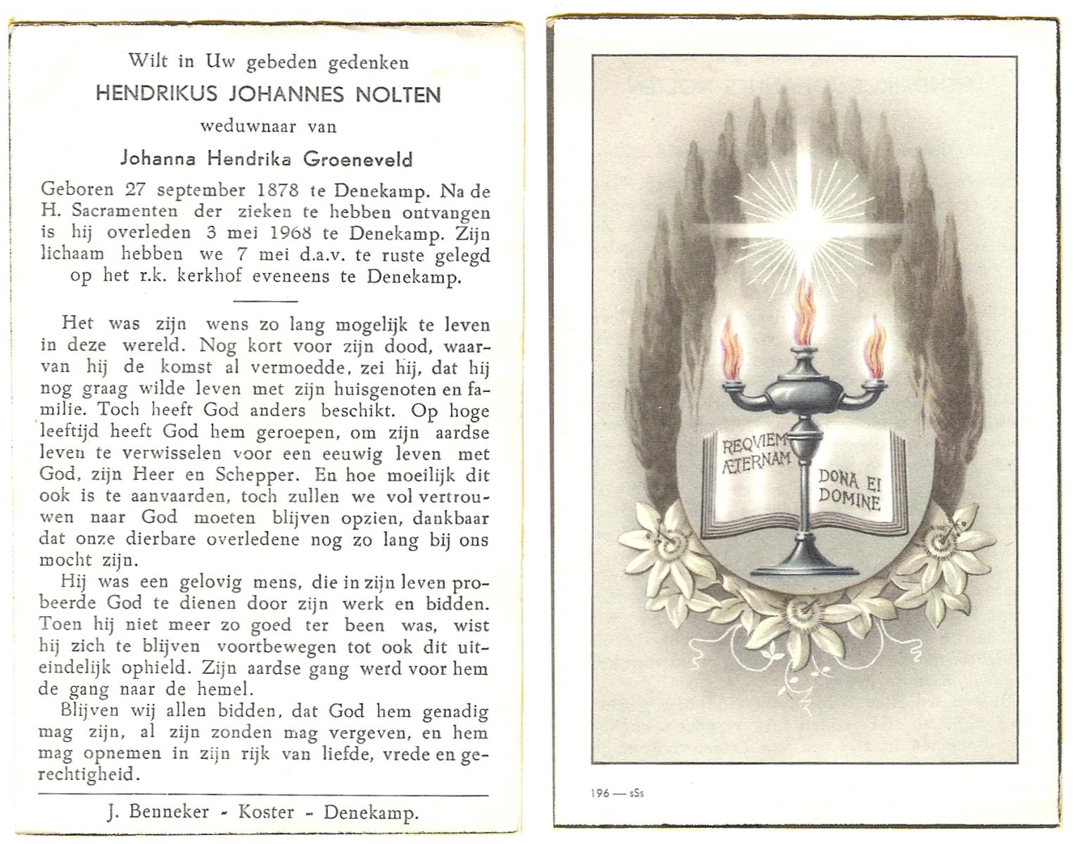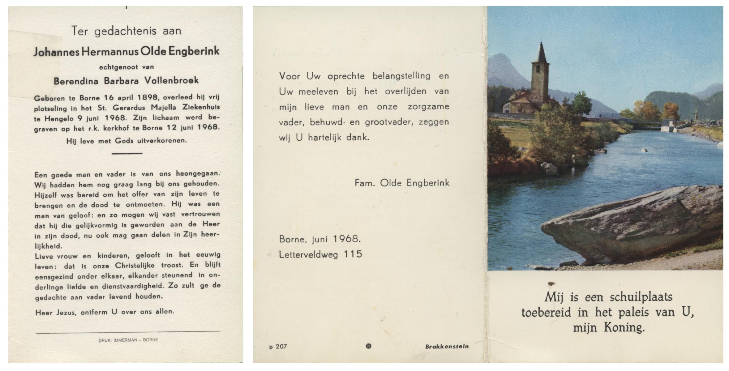 OLDE ENGBERINK, Johannes Hermannus, geboren op 16-04-1898 te Borne, overleden op 9-6-1968 te Hengelo (Ov.) op 70-jarige leeftijd, begraven op 12-6-1968 te Borne.