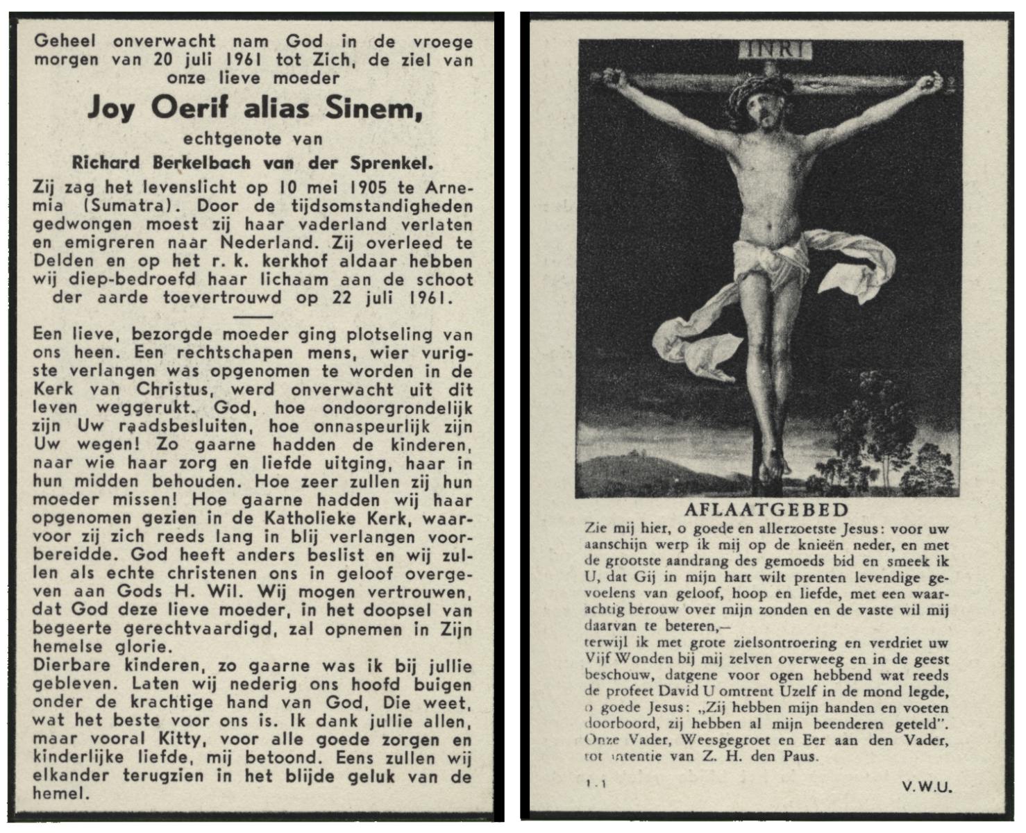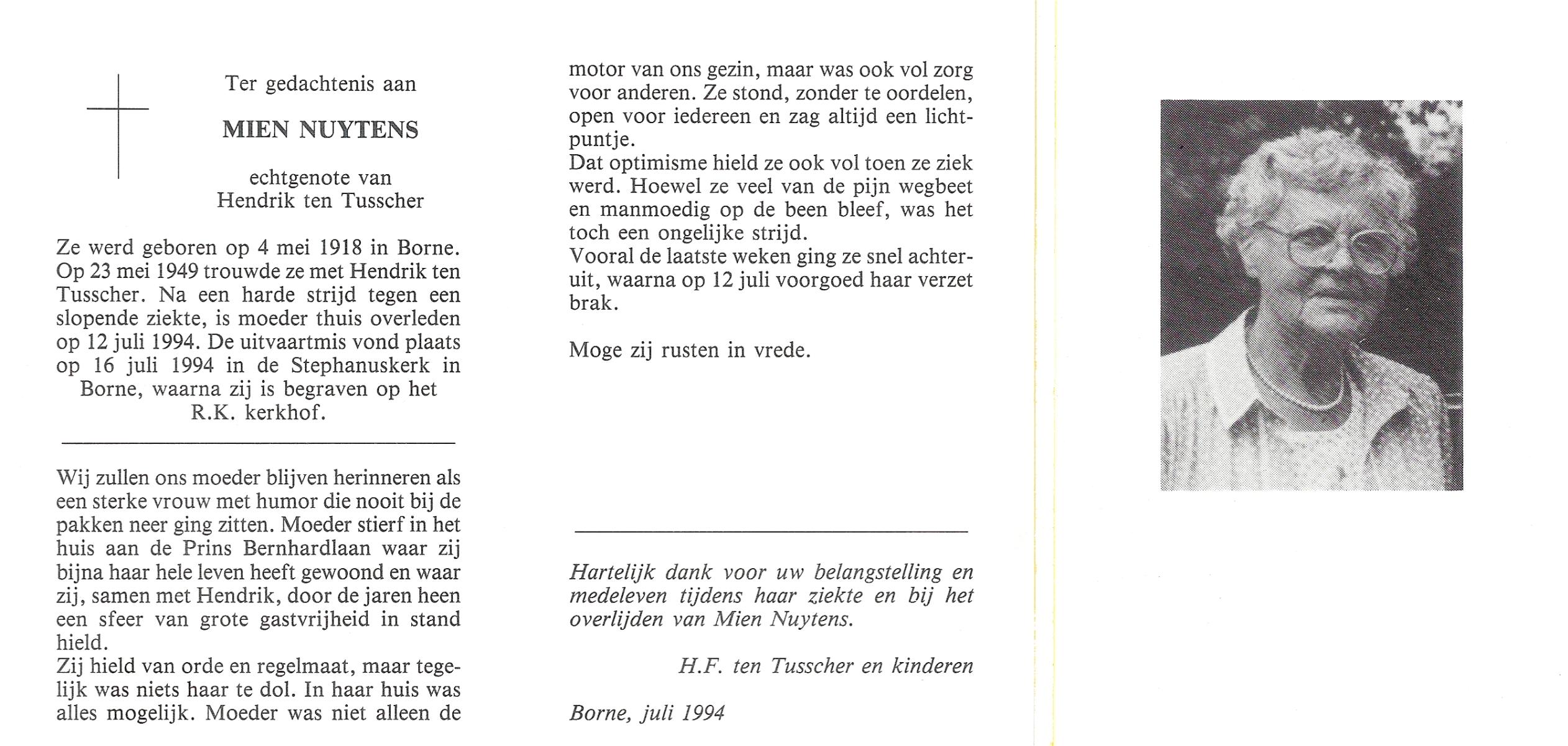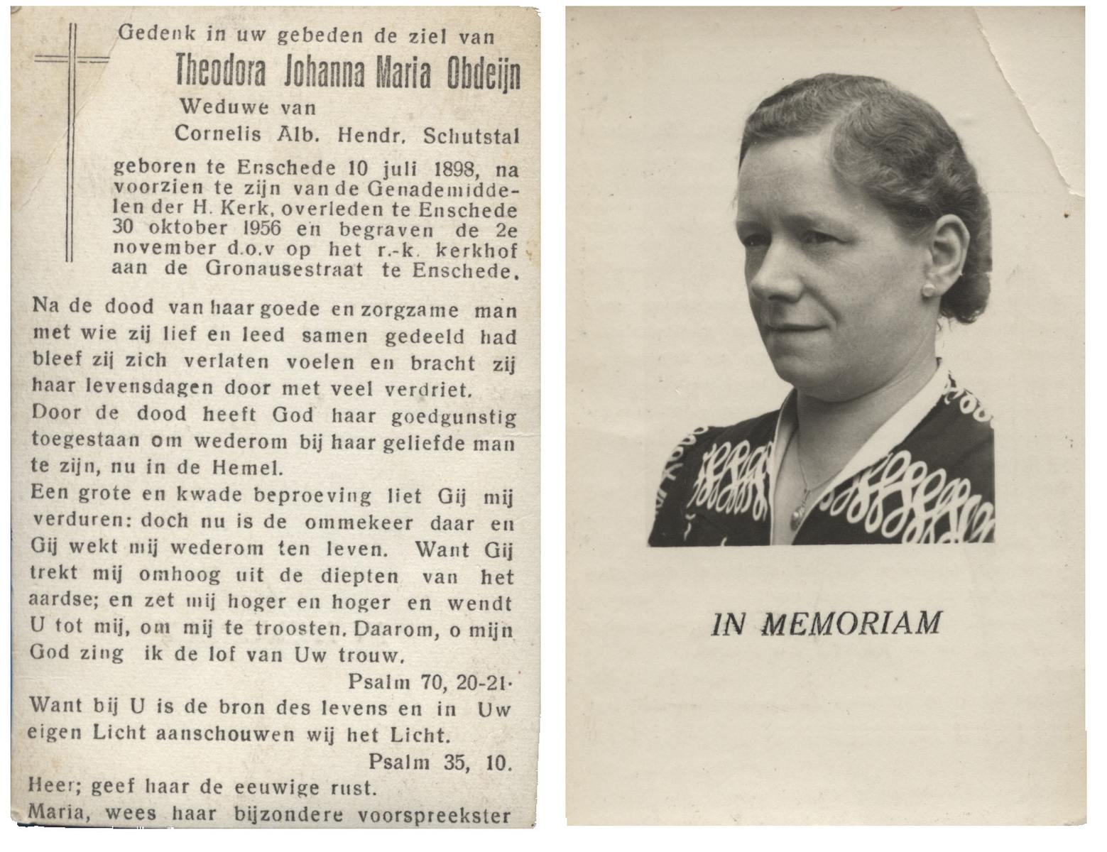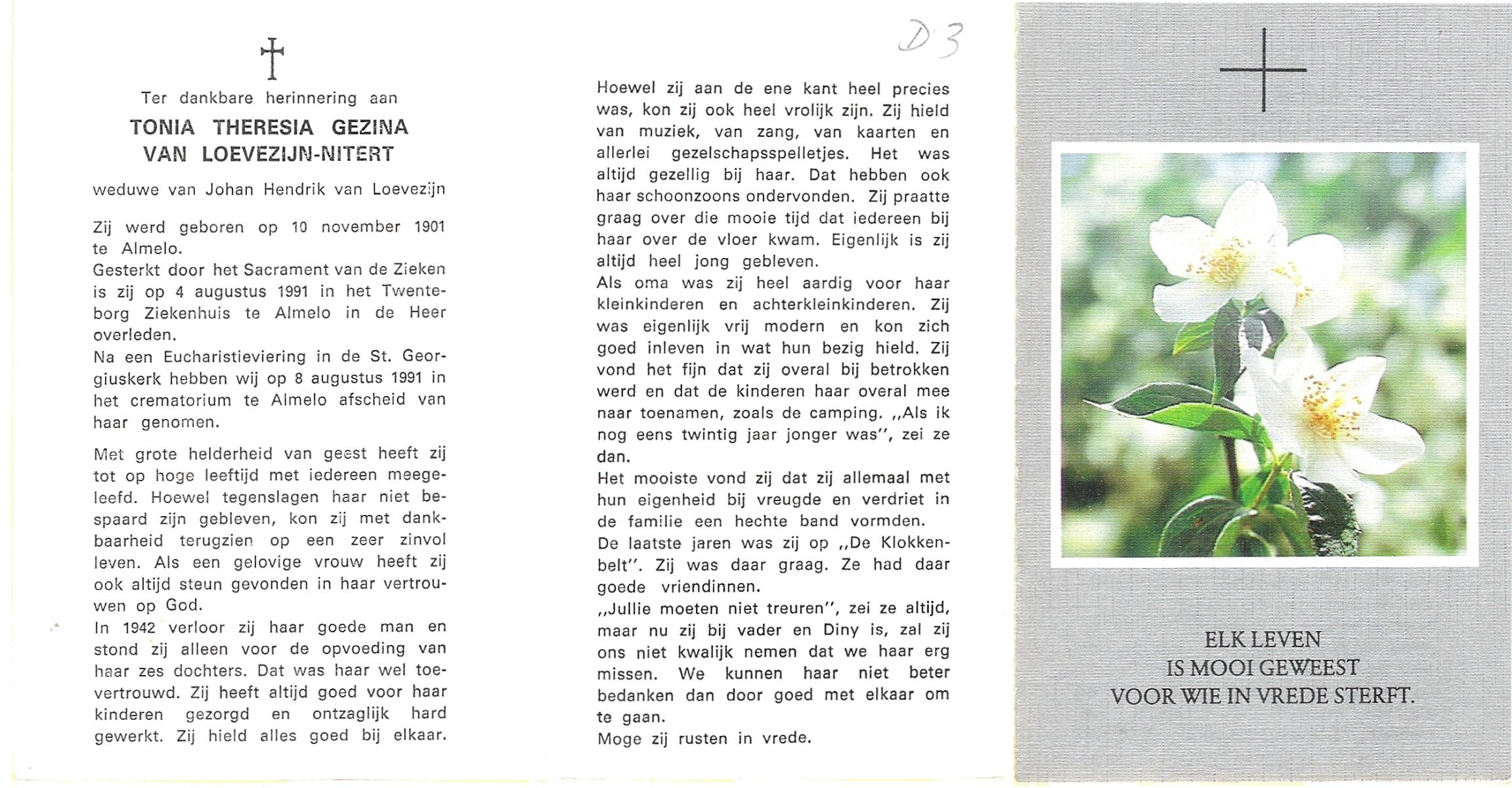OLDE ENGBERINK, Antonia Wilhelmina, geboren op 12-7-1906 te Borne, overleden op 6-3-1993 te Delden op 86-jarige leeftijd, begraven op 10-3-1993 te Borne.