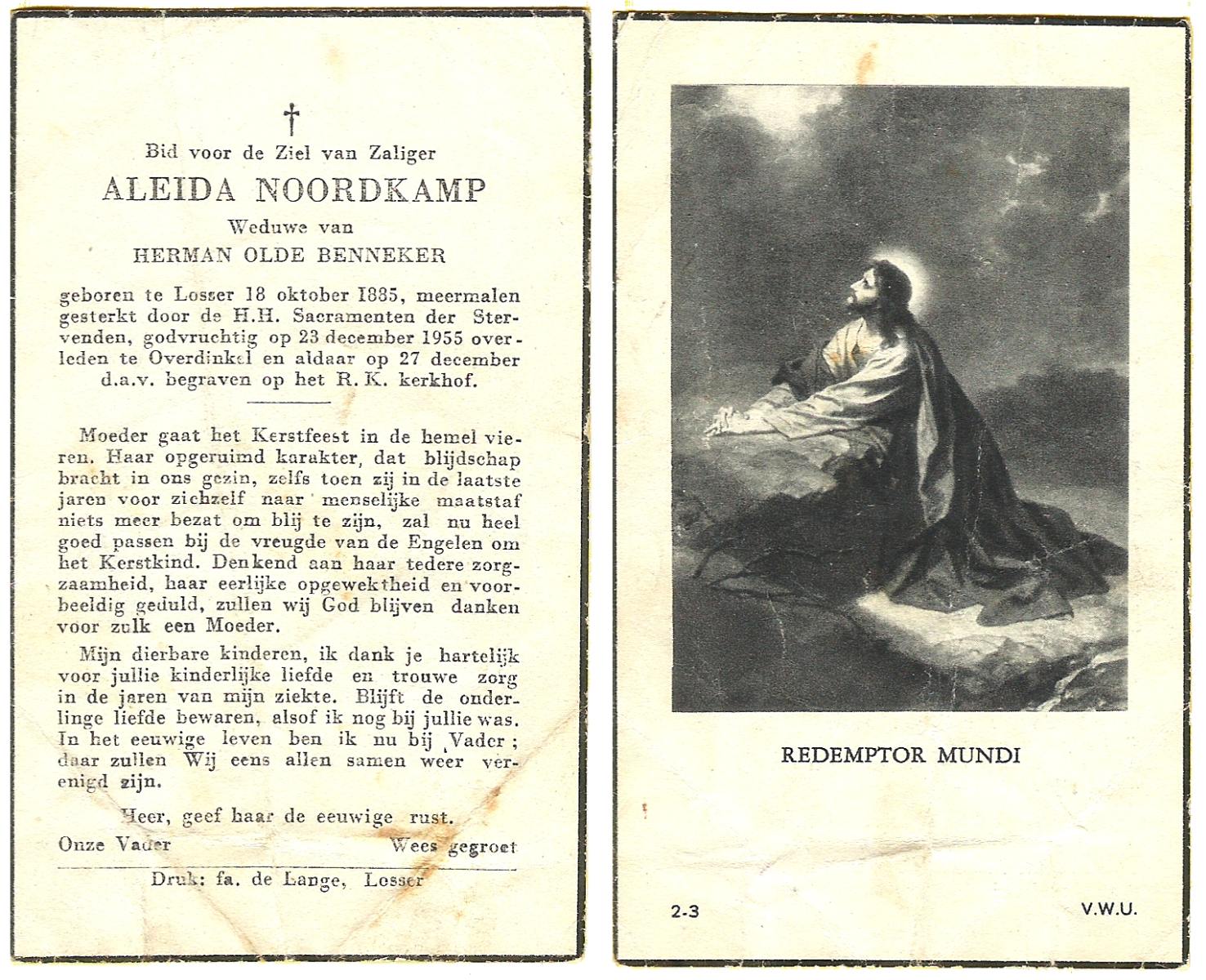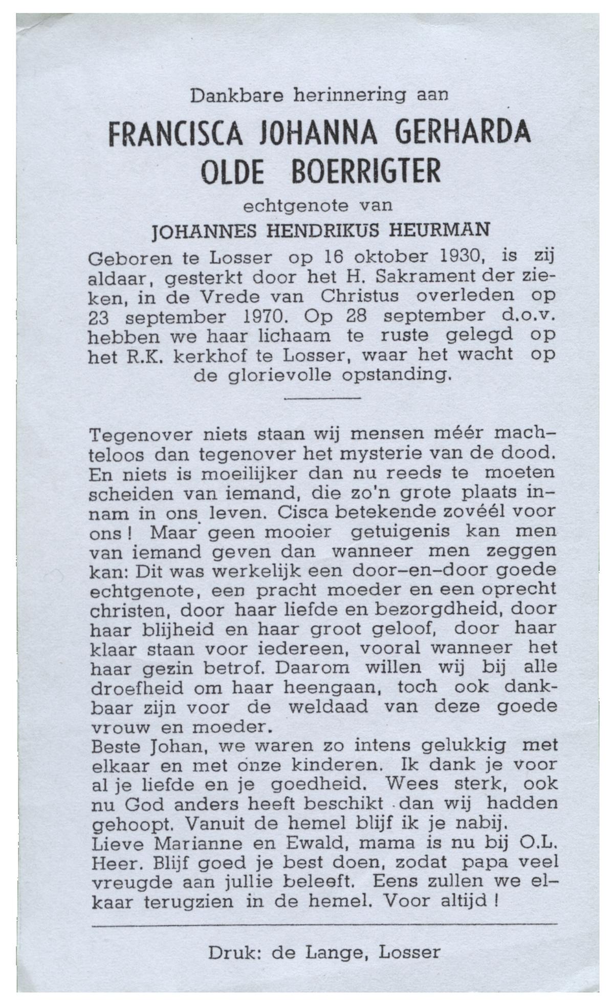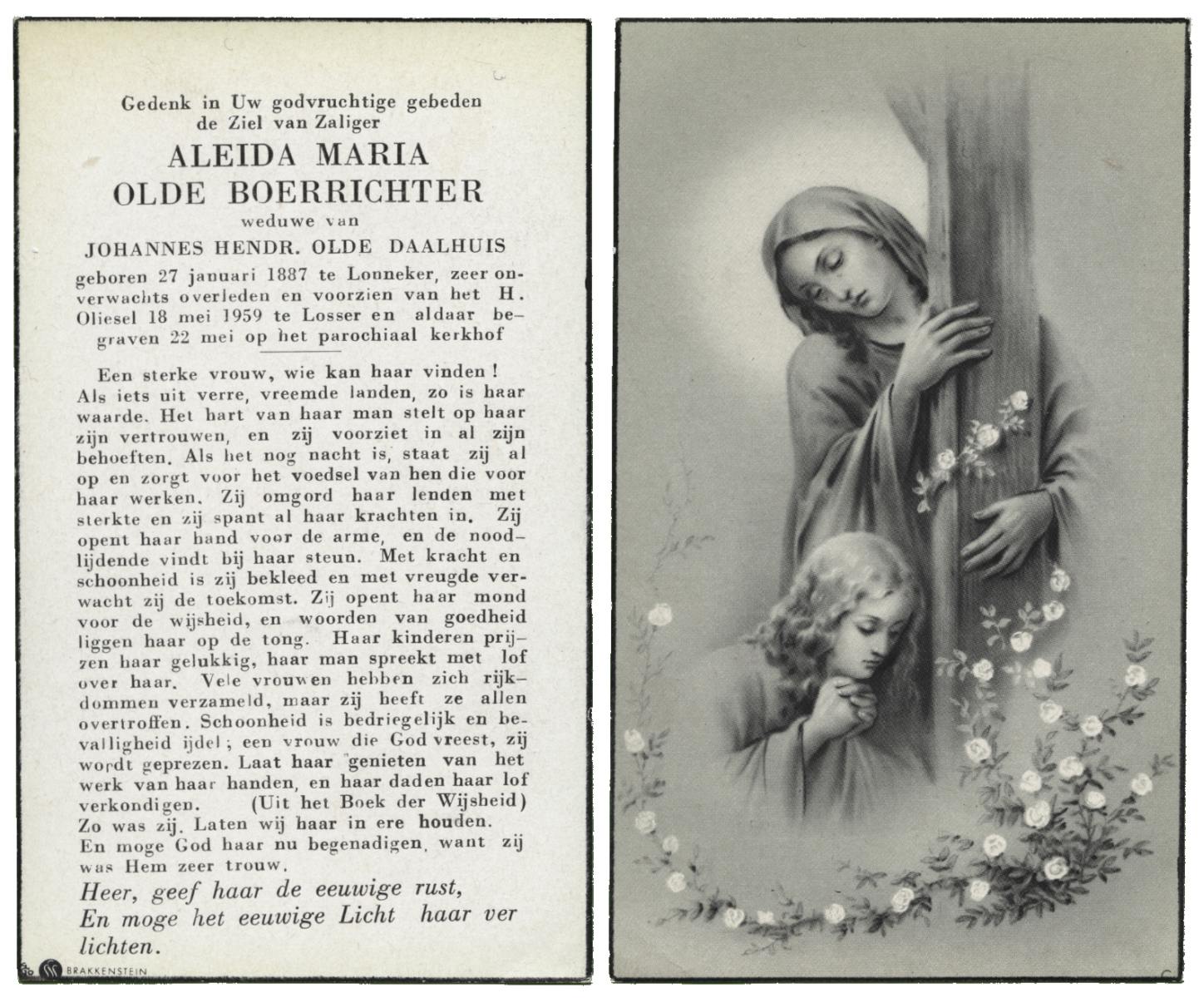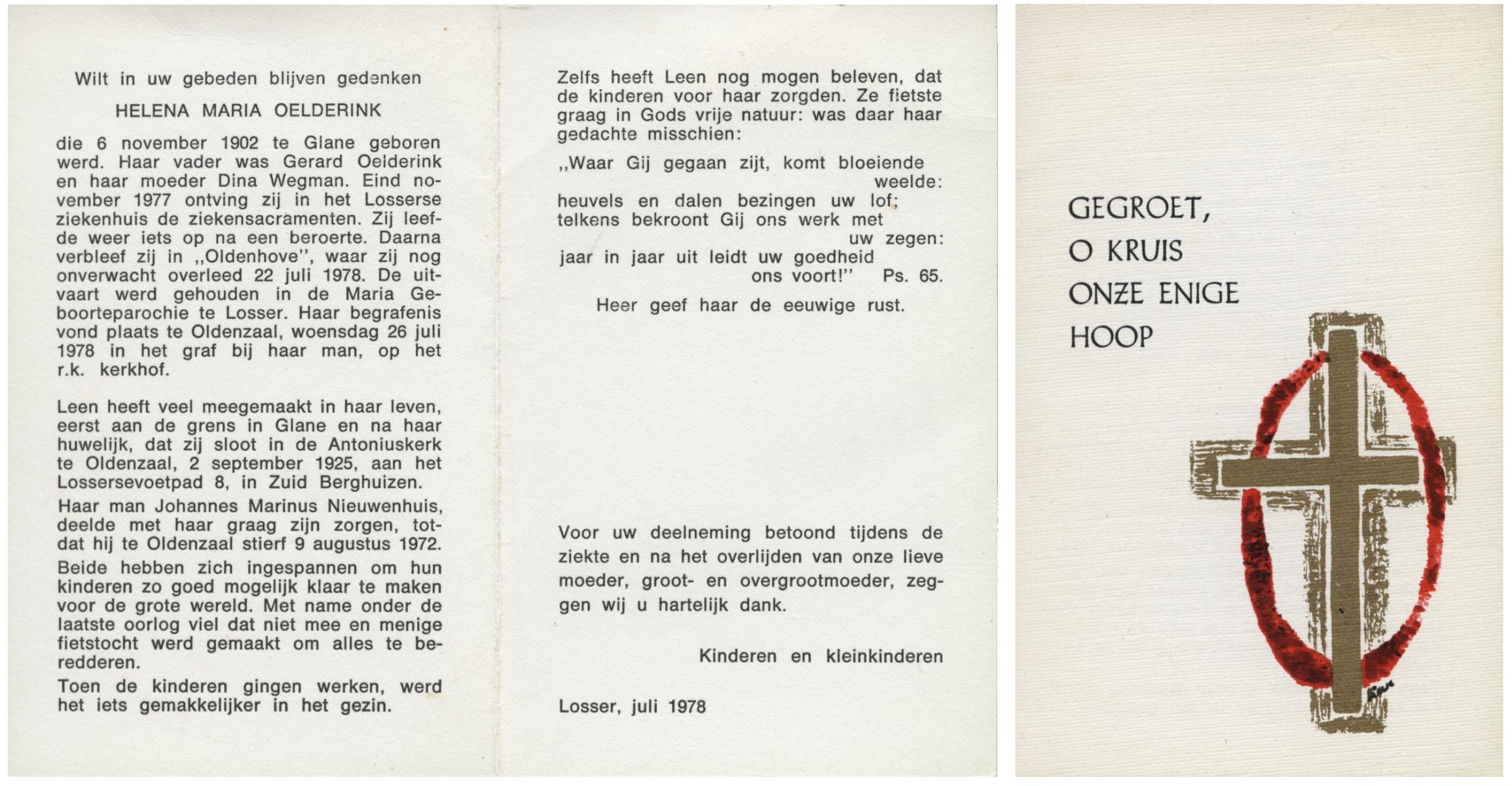OLDE HEUVEL, Aleida Hermina, geboren op 20-02-1899 te Losser, overleden op 28-1-1971 te Losser op 71-jarige leeftijd, begraven op 1-2-1971 te Losser.