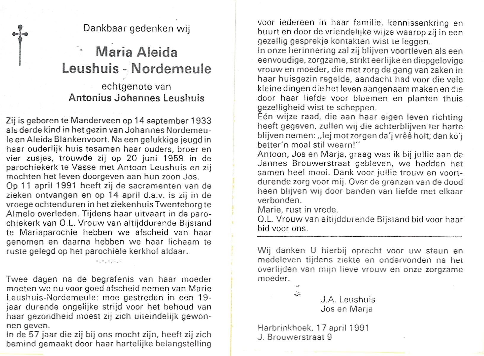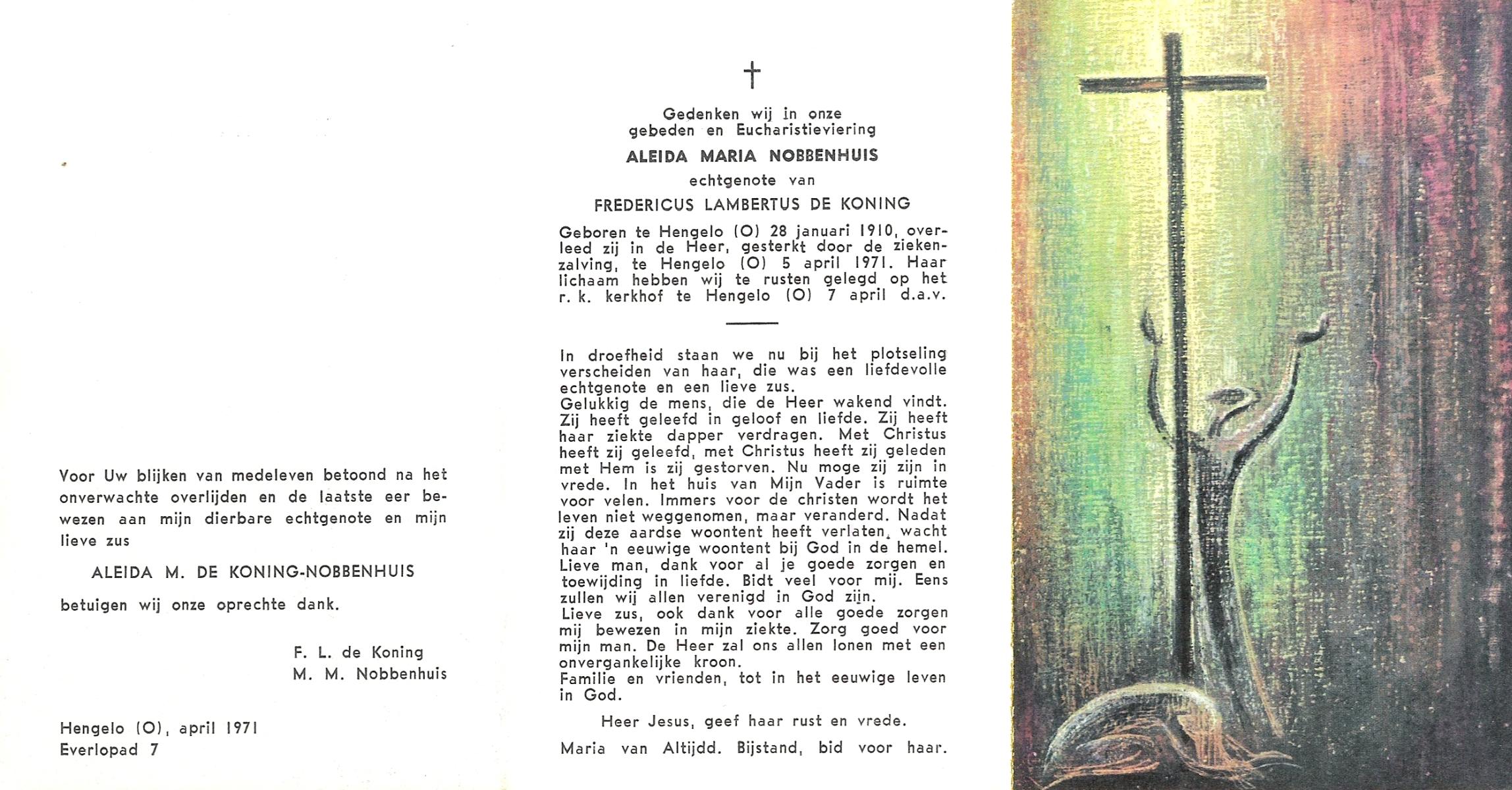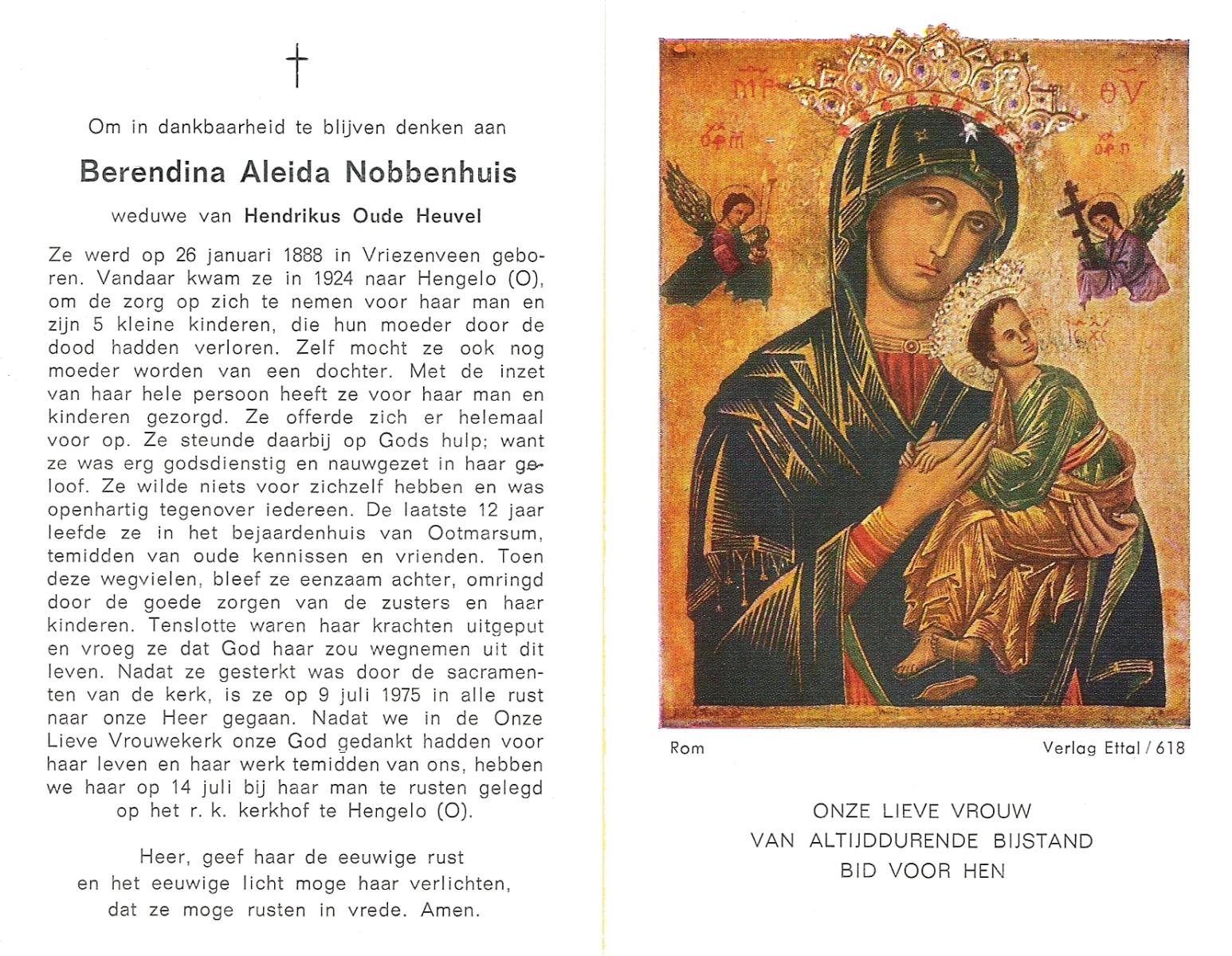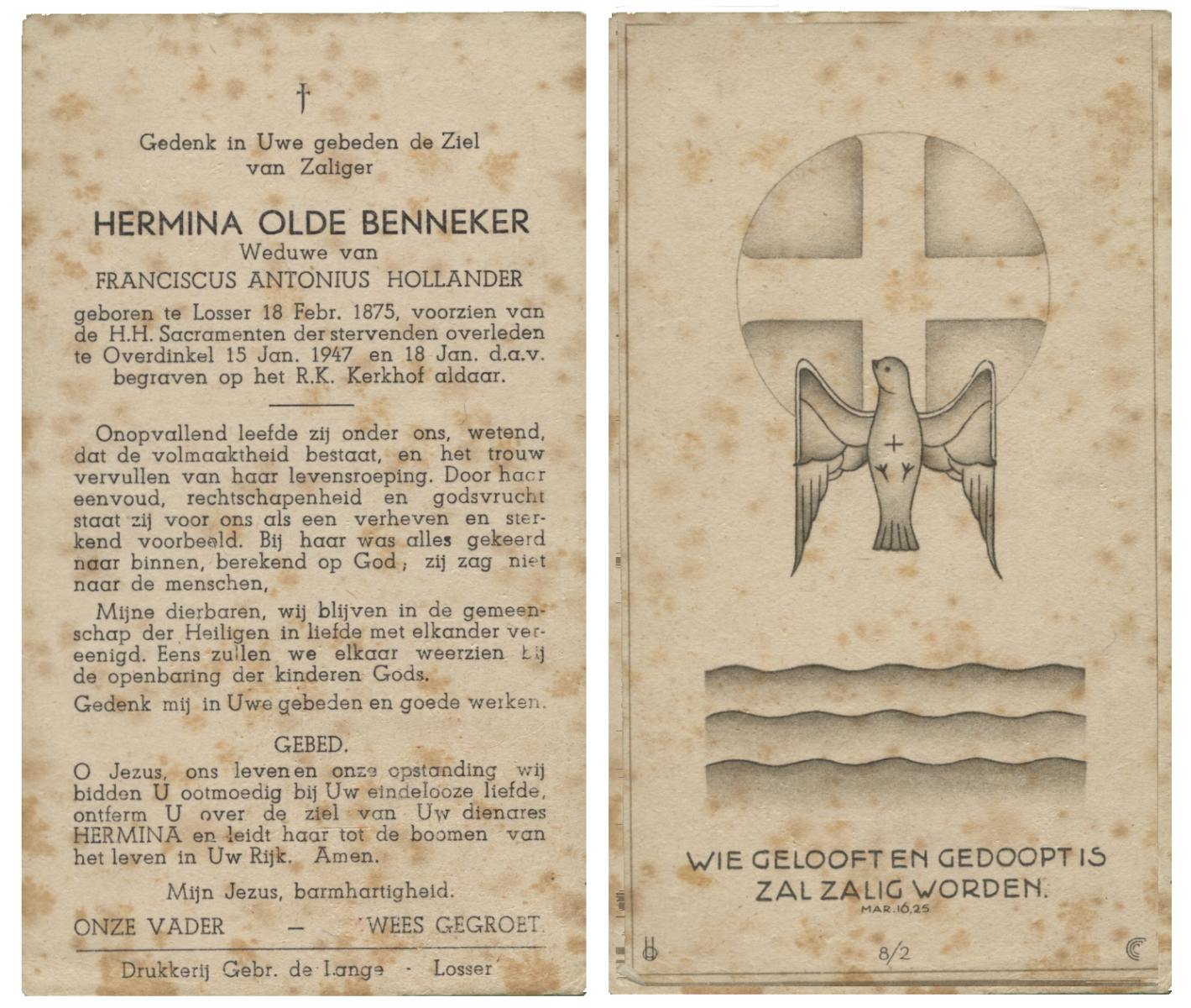 OLDE HEUVEL, Aleida Hermina, geboren op 20-02-1899 te Losser, overleden op 28-1-1971 te Losser op 71-jarige leeftijd, begraven op 1-2-1971 te Losser.