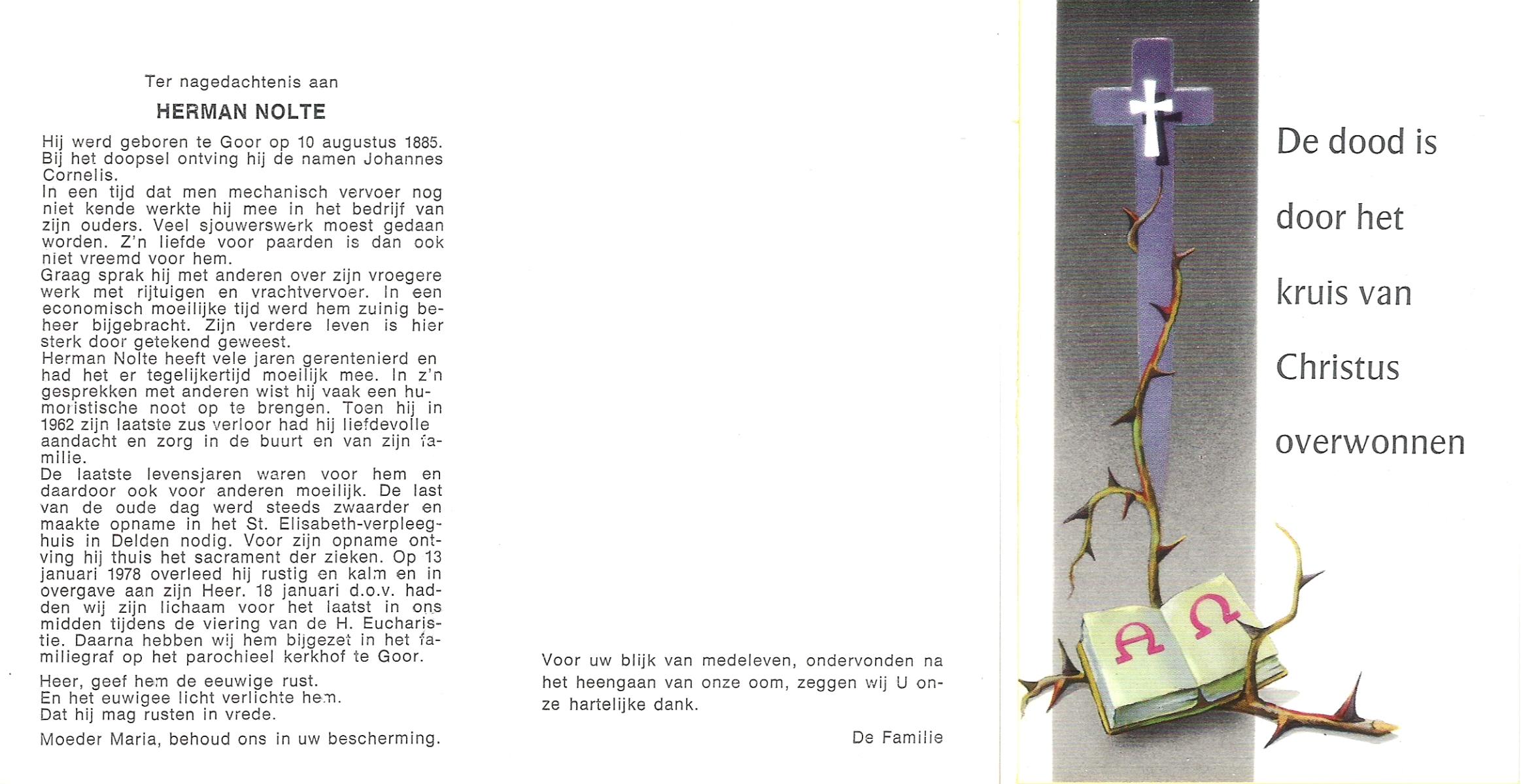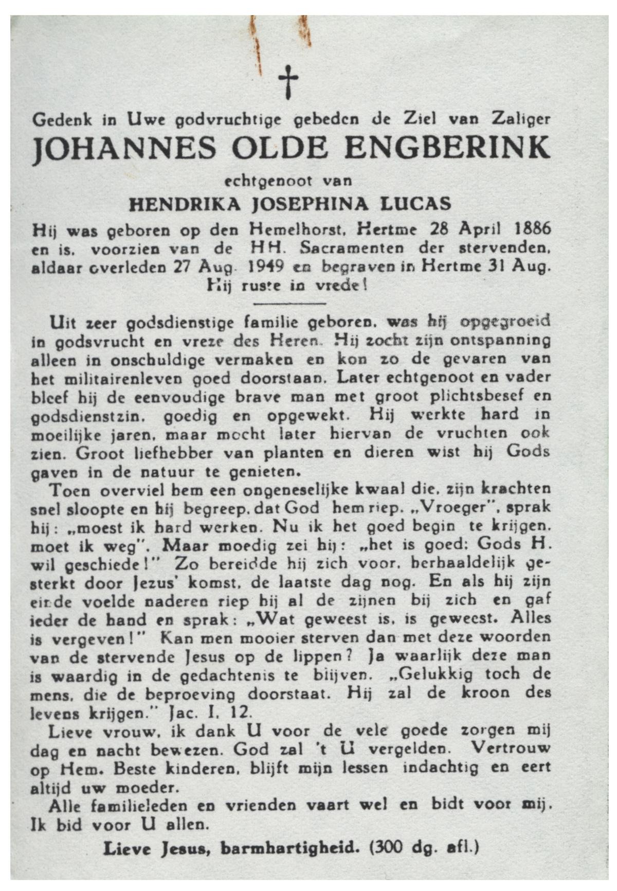 OLDE ENGBERINK, Johannes, geboren op 28-04-1886 te Hertme, overleden op 27-8-1949 te Hertme op 63-jarige leeftijd, begraven op 31-8-1949 te Hertme.