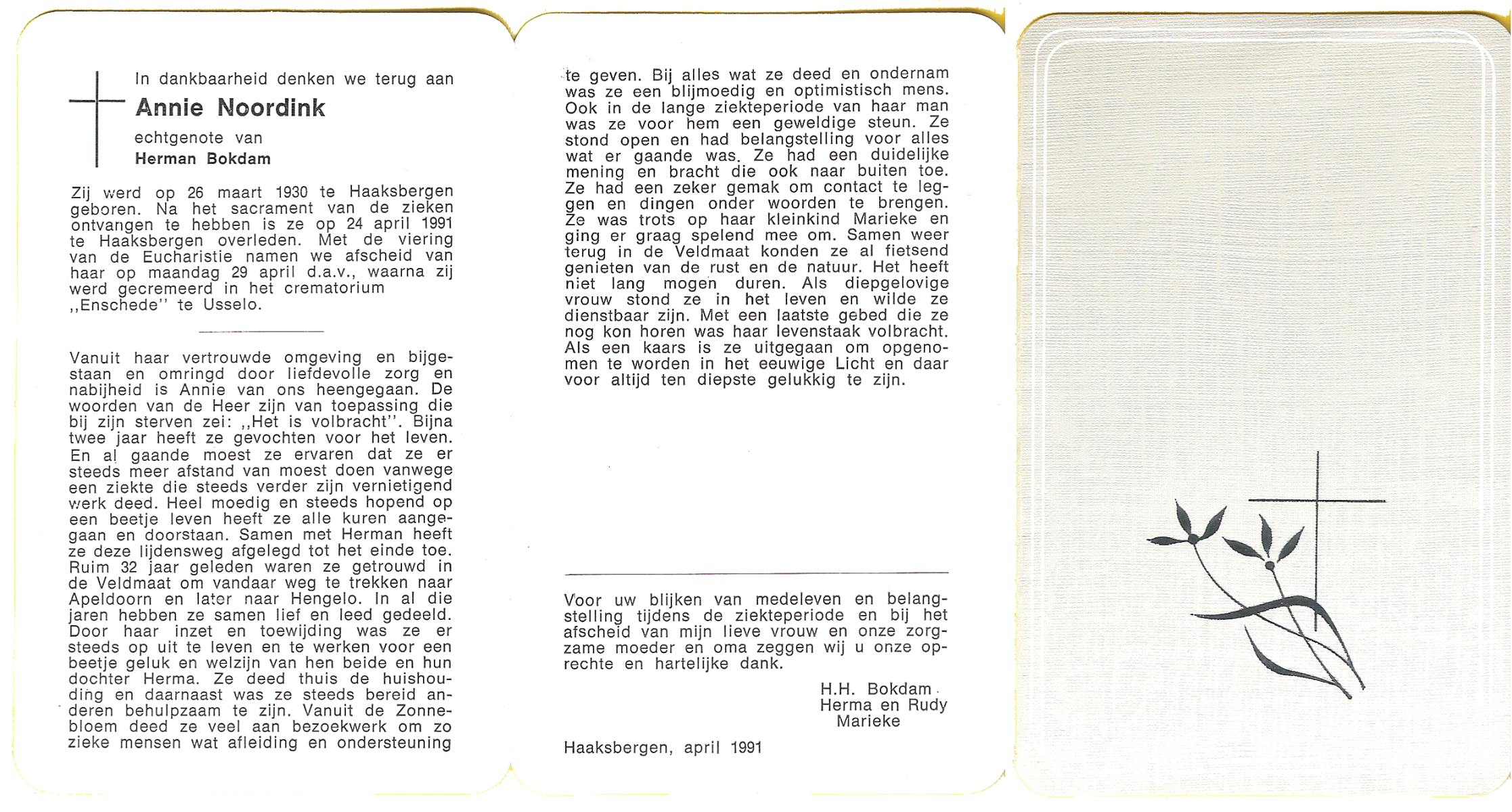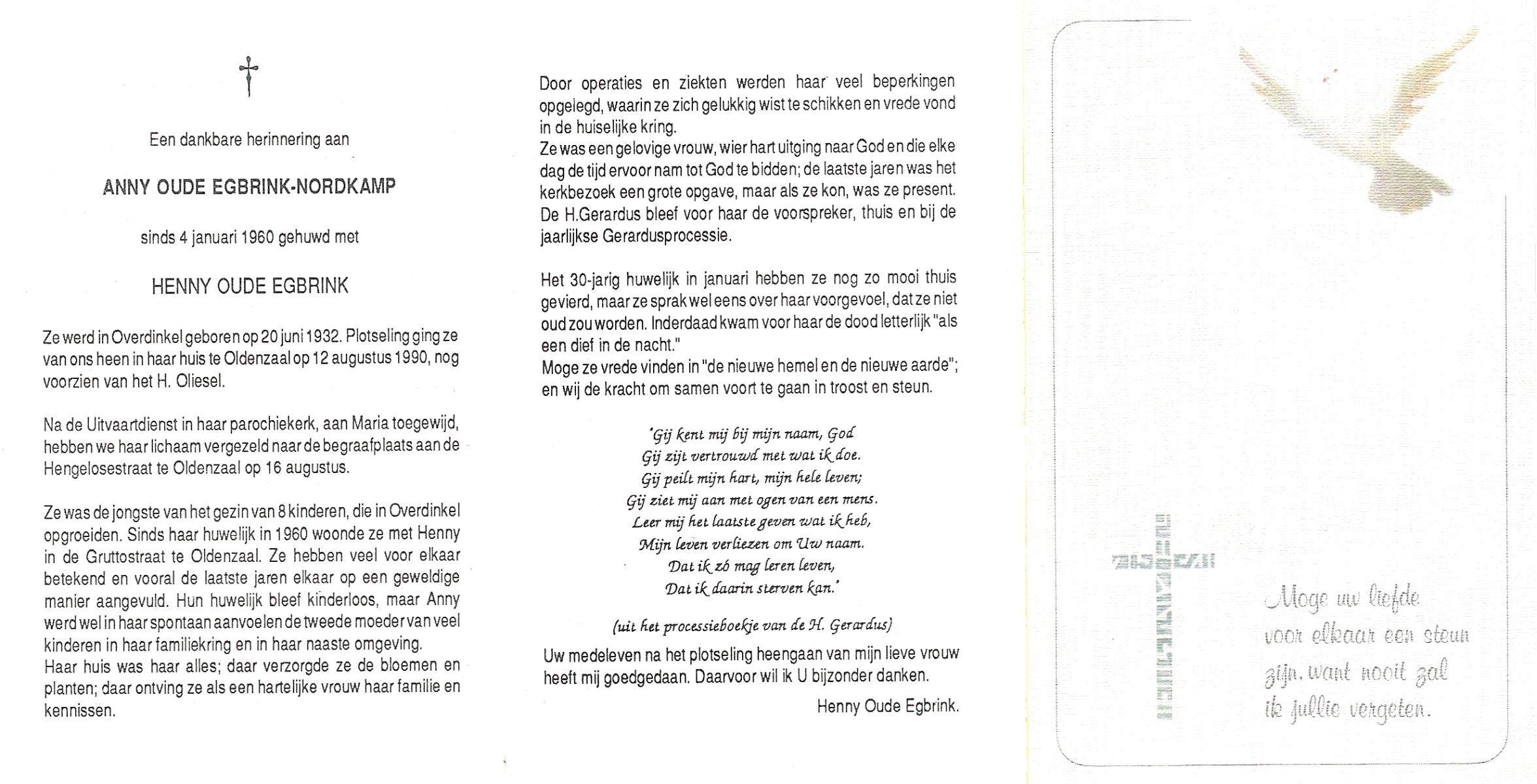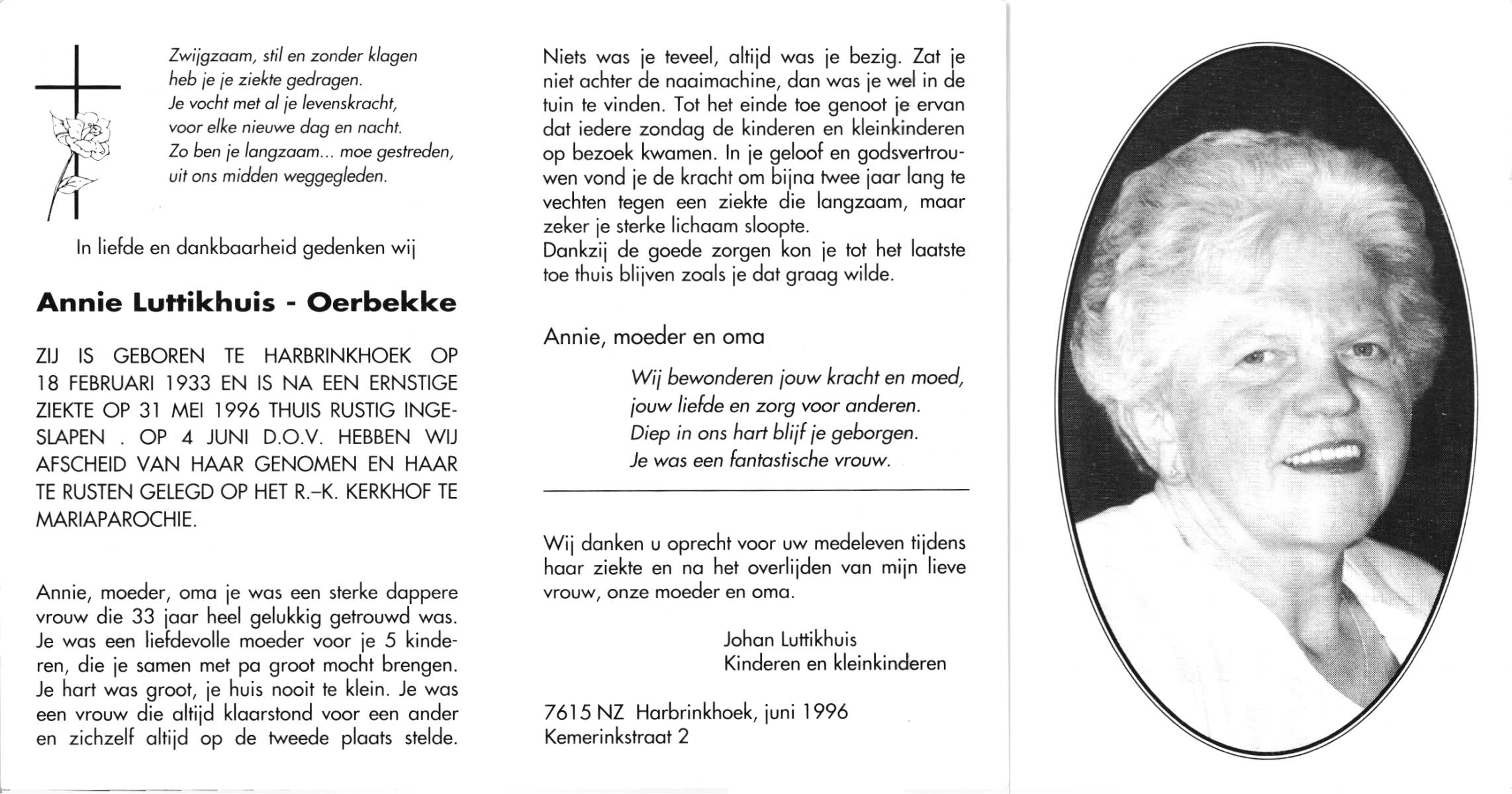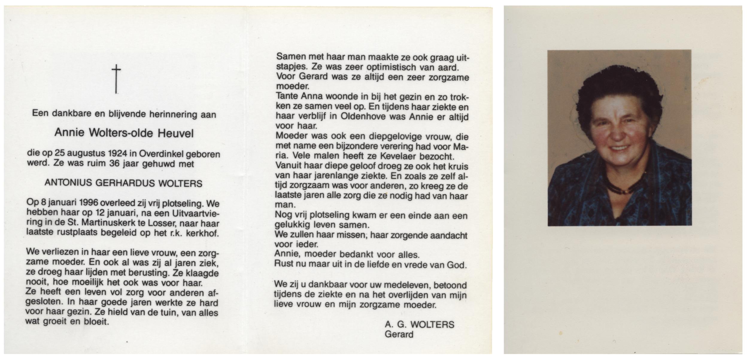 OLDE HEUVEL, Annie, geboren op 25-8-1924 te Overdinkel, overleden op 8-1-1996 op 71-jarige leeftijd, begraven op 12-1-1996 te Losser.