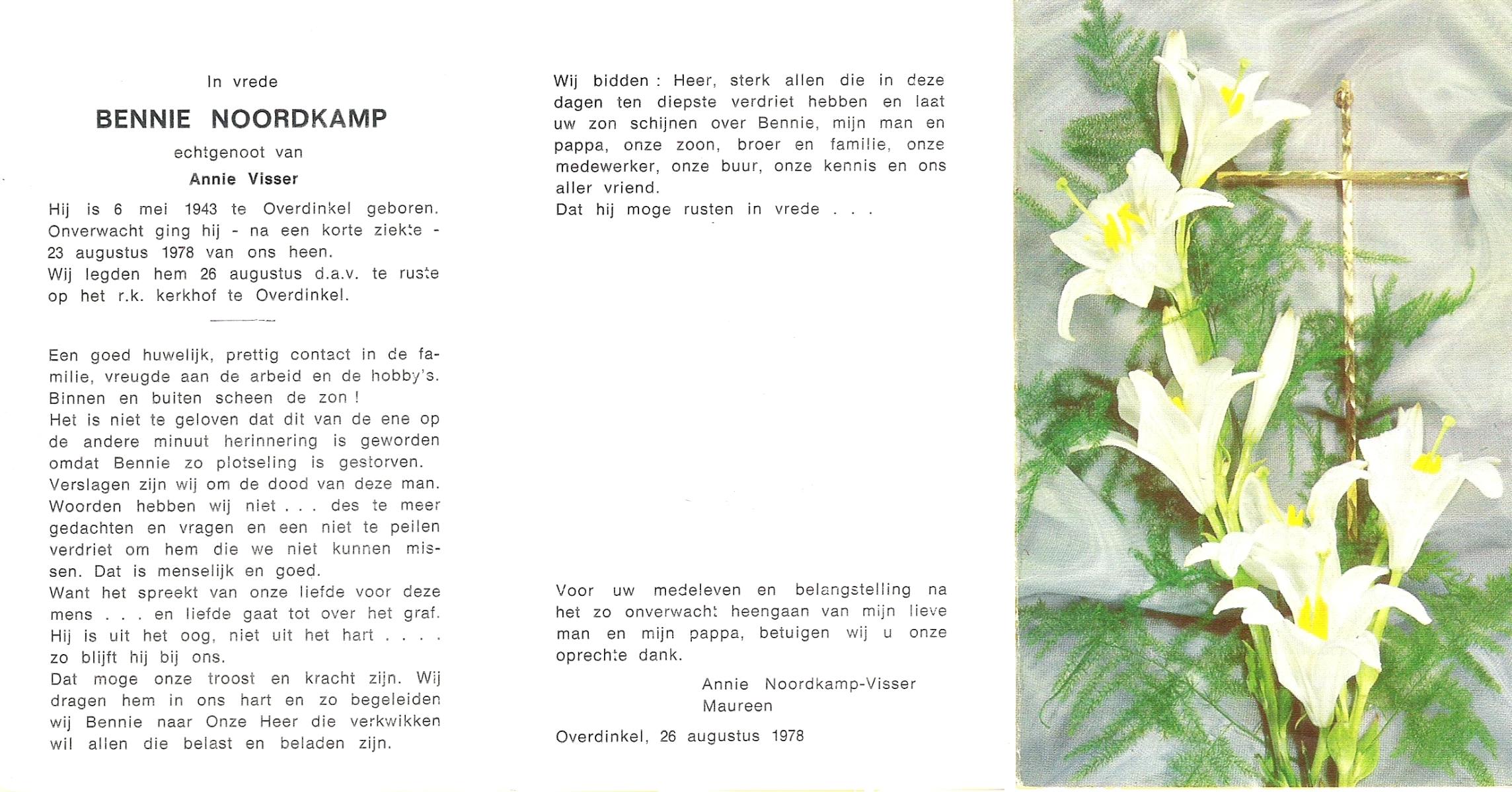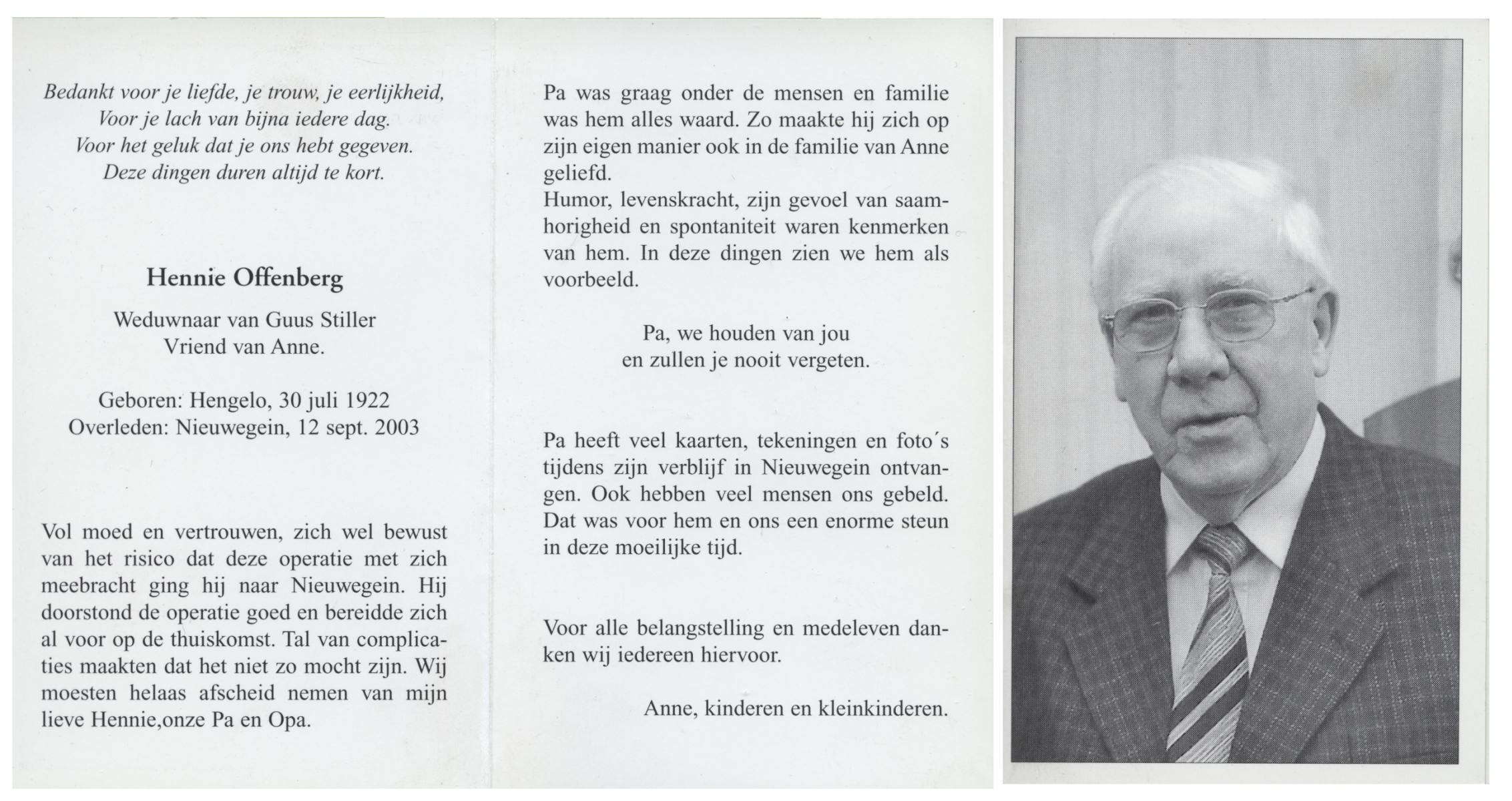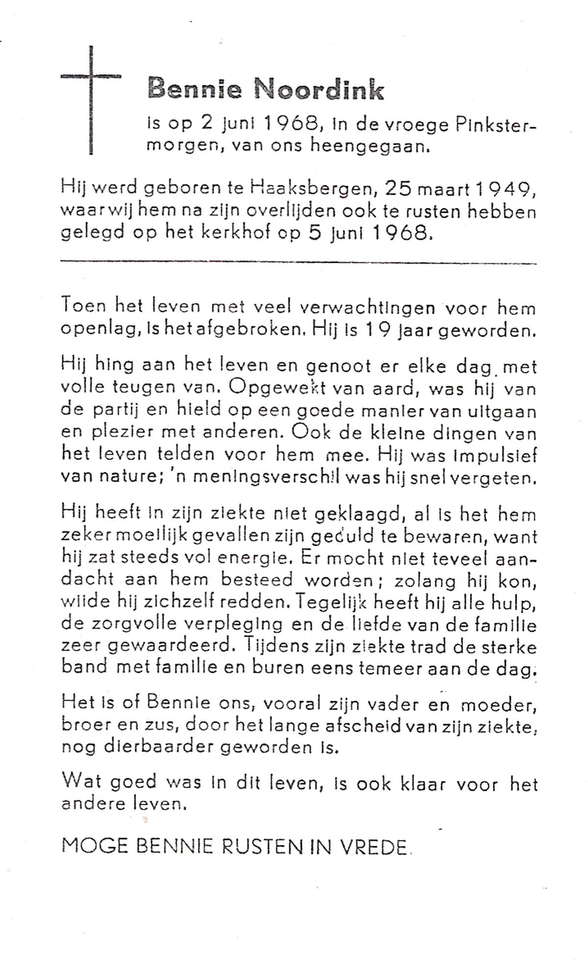 OLDE HAMPSINK, Bennie, geboren op 28-12-1930 te Tubbergen, overleden op 10-6-2000 te Almelo op 69-jarige leeftijd, begraven op 15-6-2000 te Tubbergen.