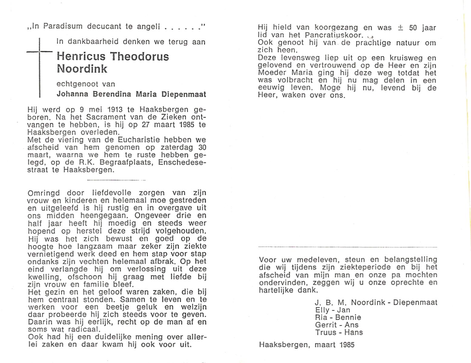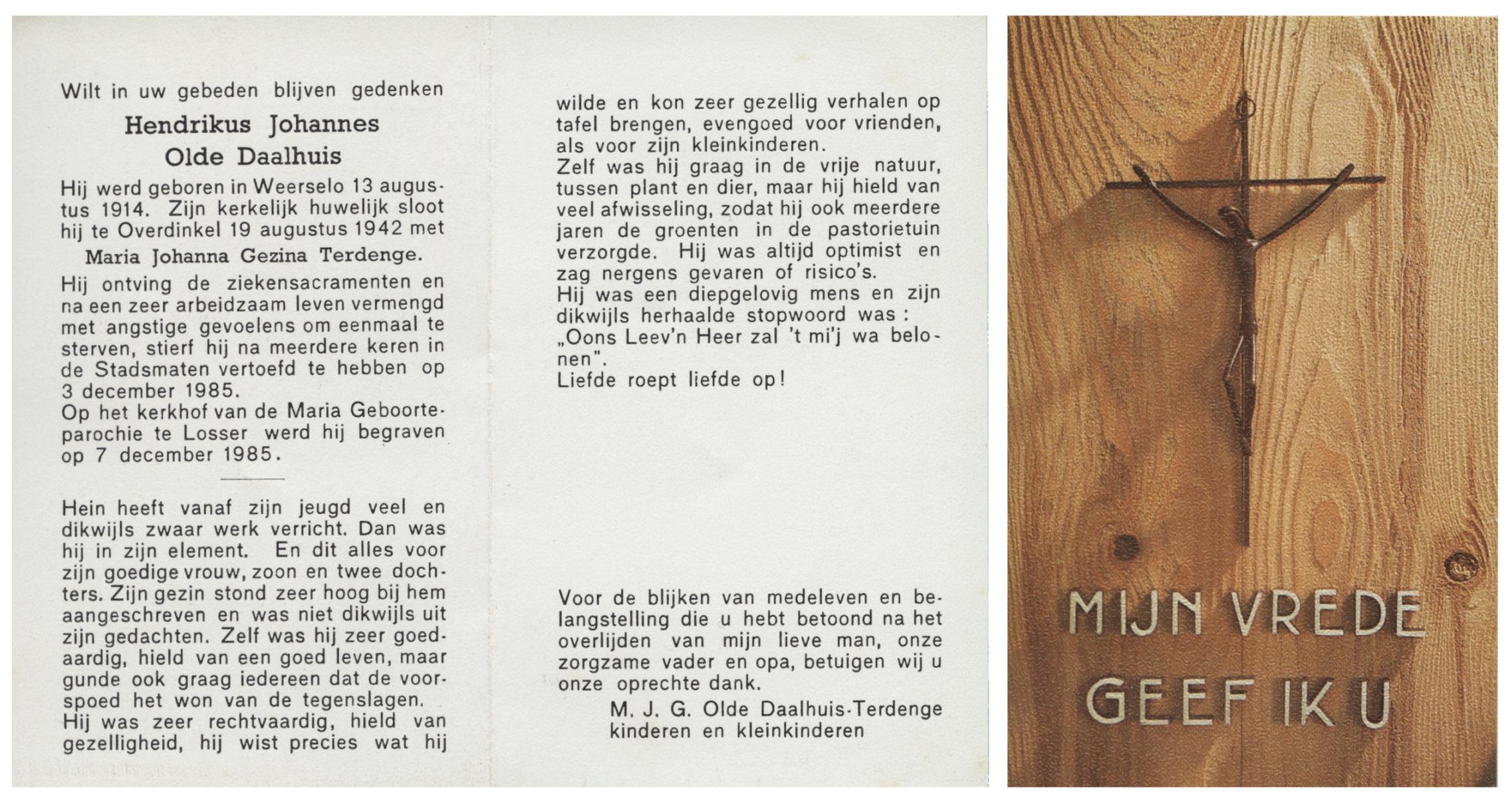 OLDE DAALHUIS, Hendrikus Johannes, geboren op 13-8-1914 te Weerselo, overleden op 3-12-1985 te Enschede op 71-jarige leeftijd, begraven op 7-12-1985 te Losser.