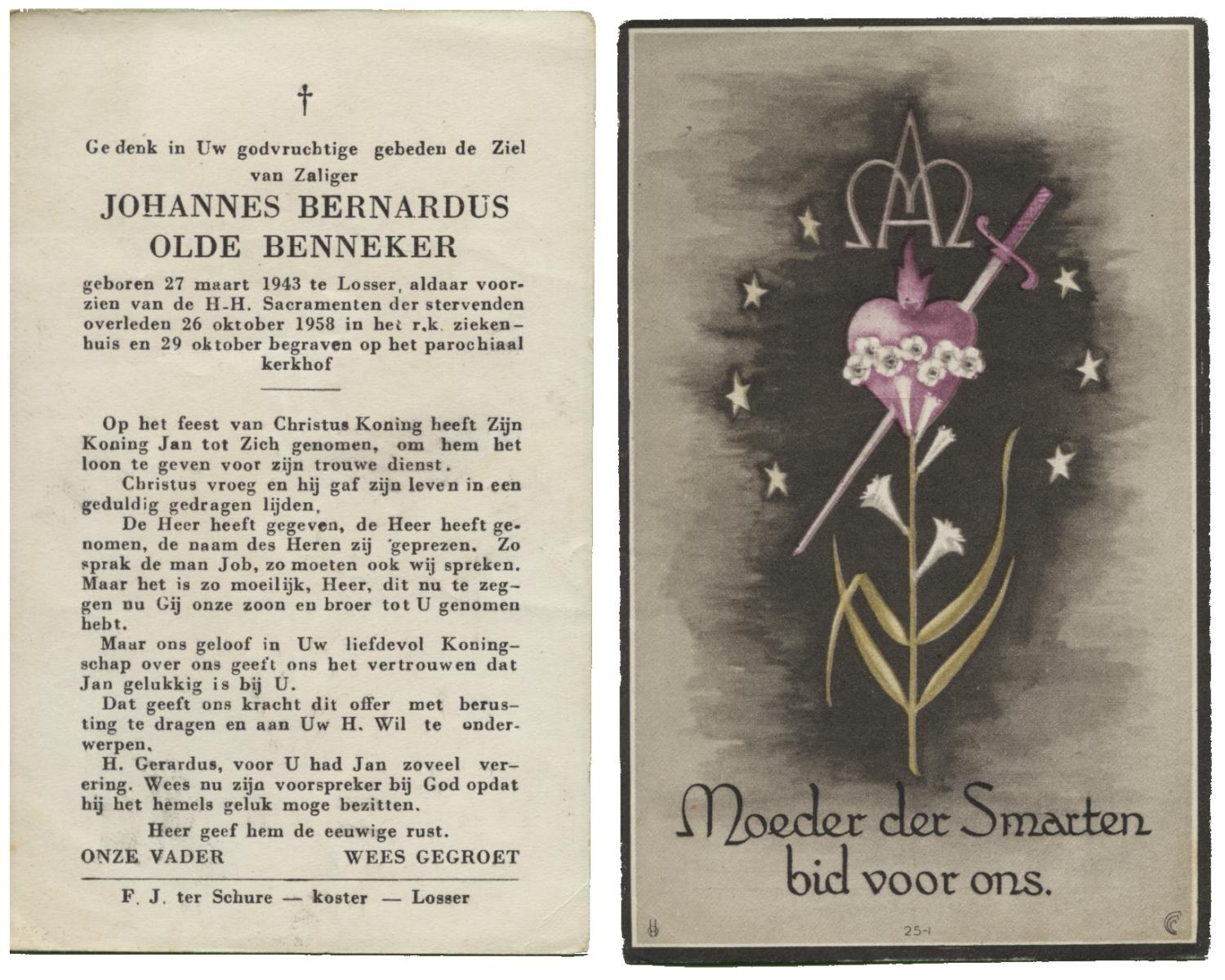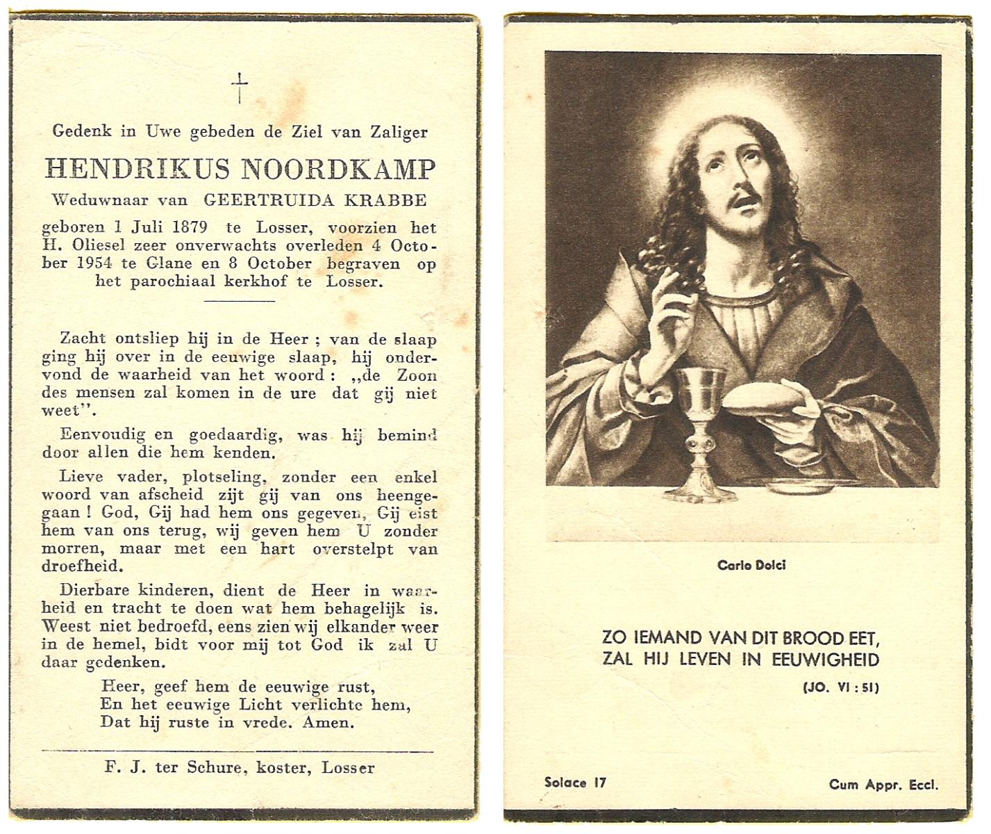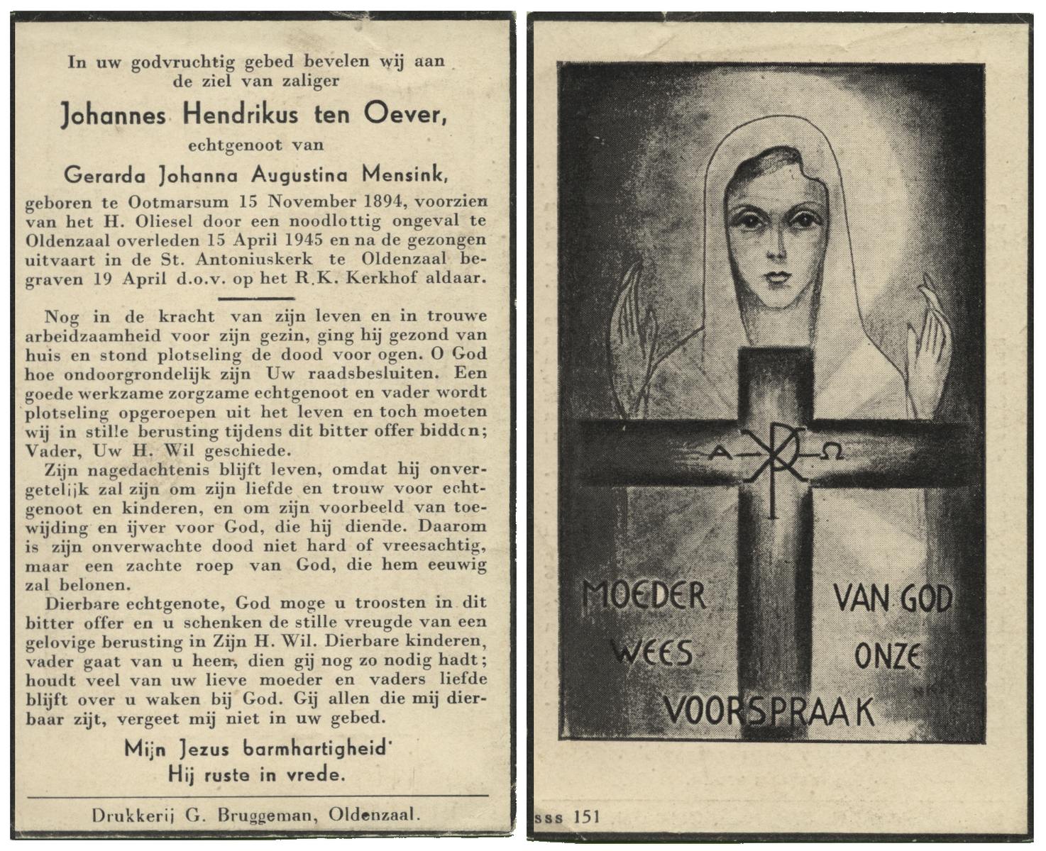 OLDE GRUNDER, Johannes, geboren op 23-11-1885 te Weerselo, overleden op 24-10-1957 te Losser op 71-jarige leeftijd, begraven op 28-10-1957 te Losser.