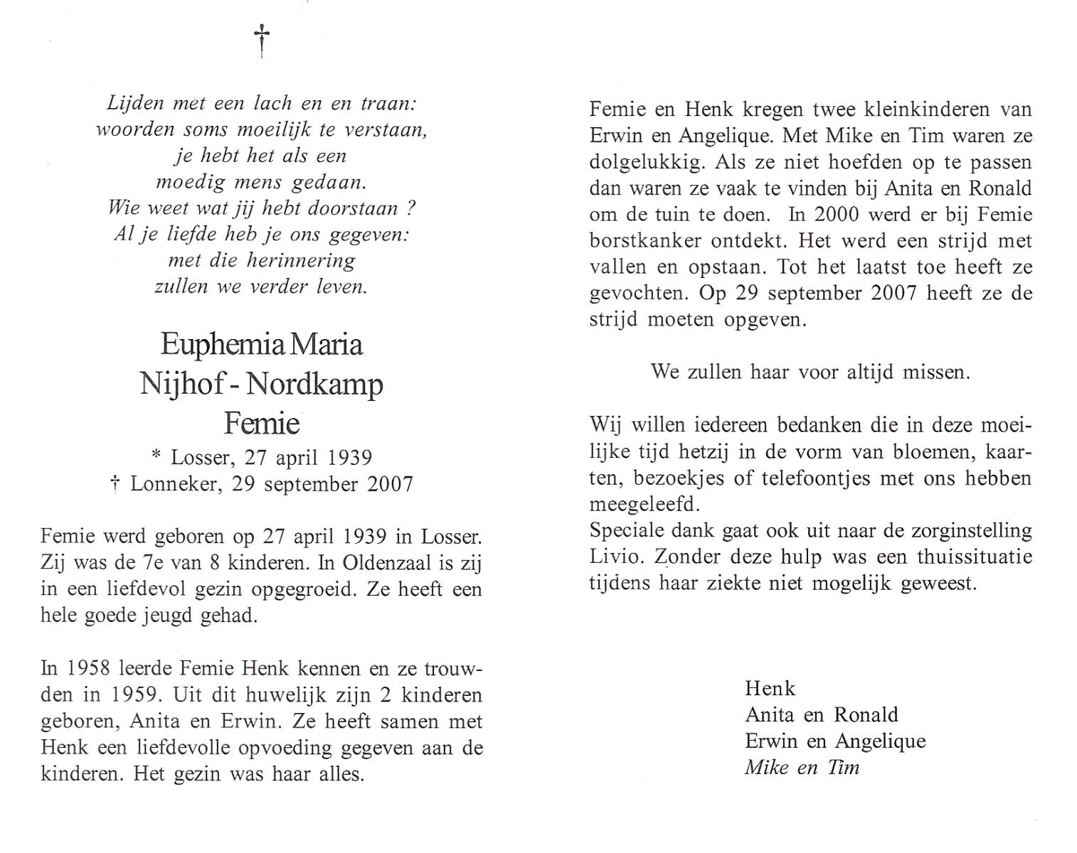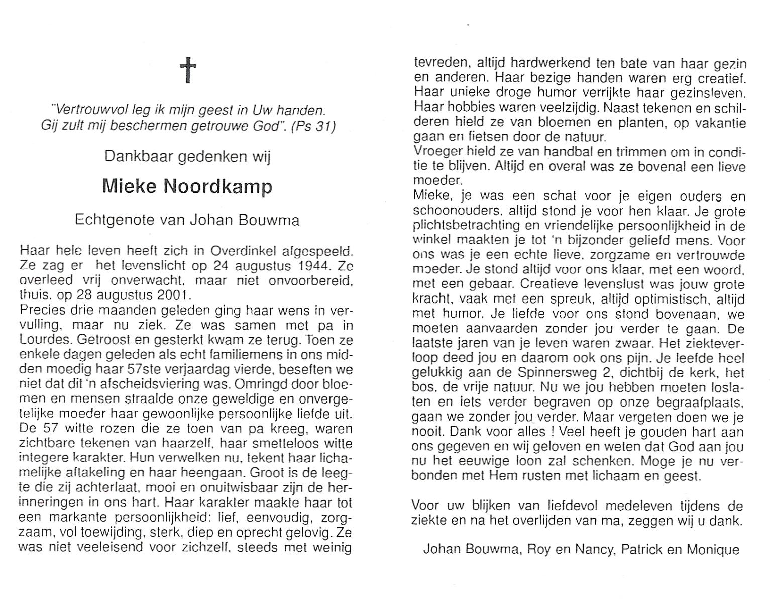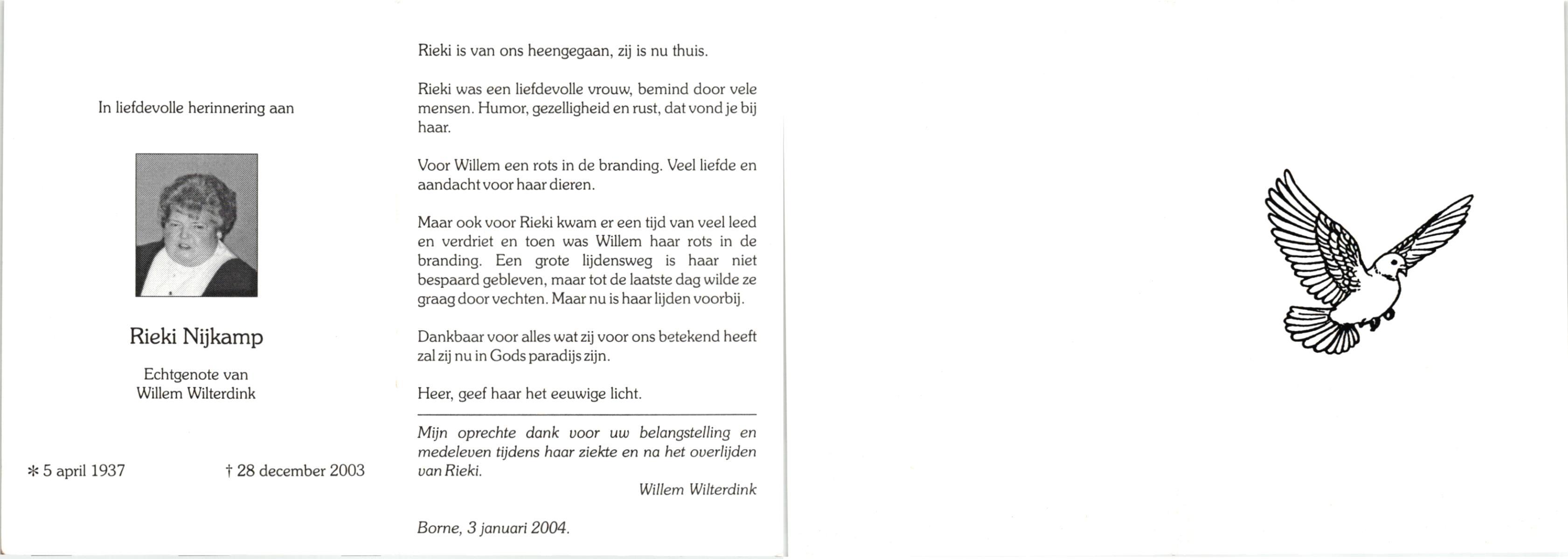 NIJKAMP, , Rieki, geboren op 5-4-1937, overleden op 28-12-2003 op 66-jarige leeftijd.
