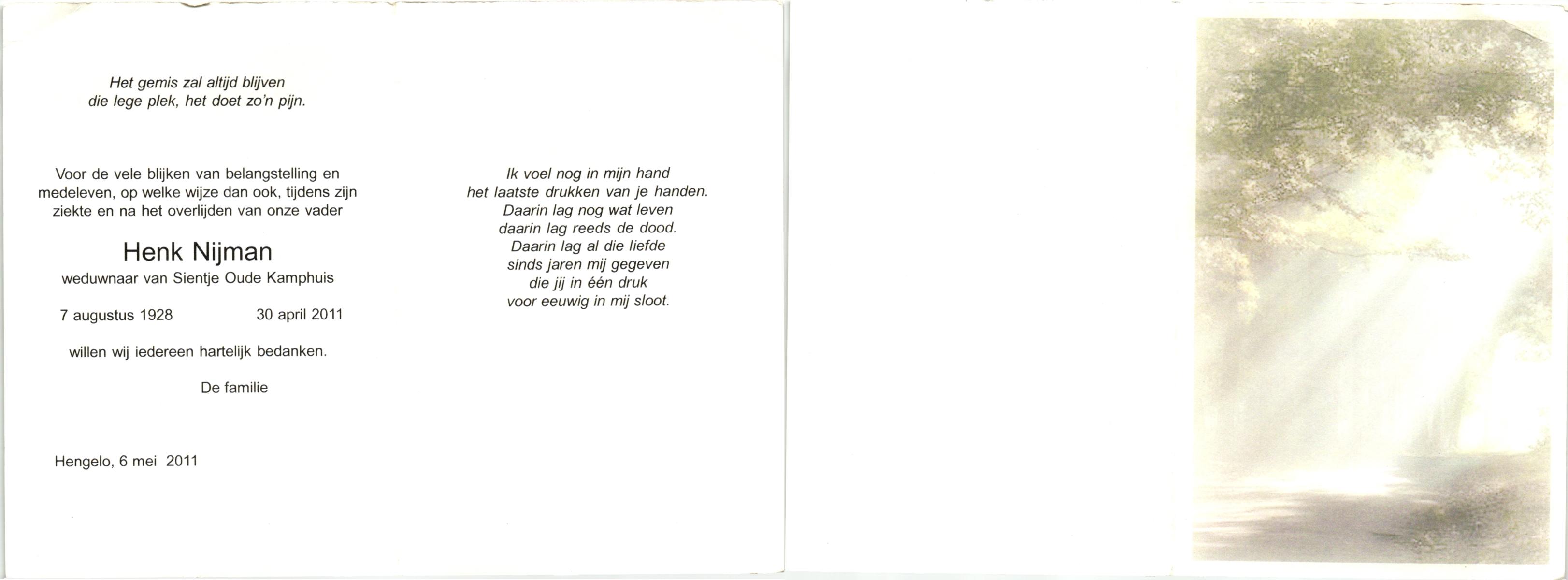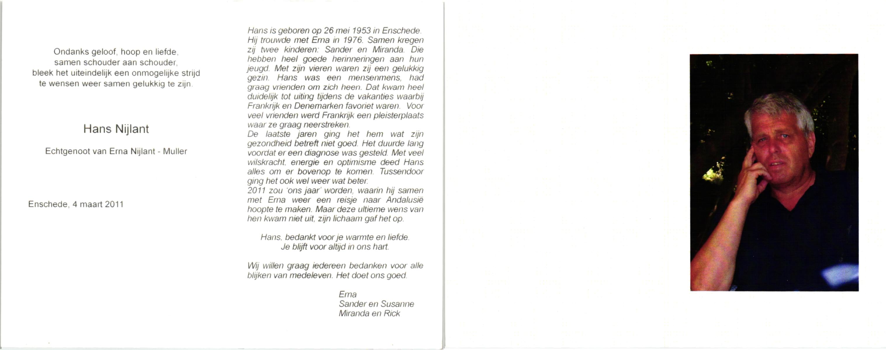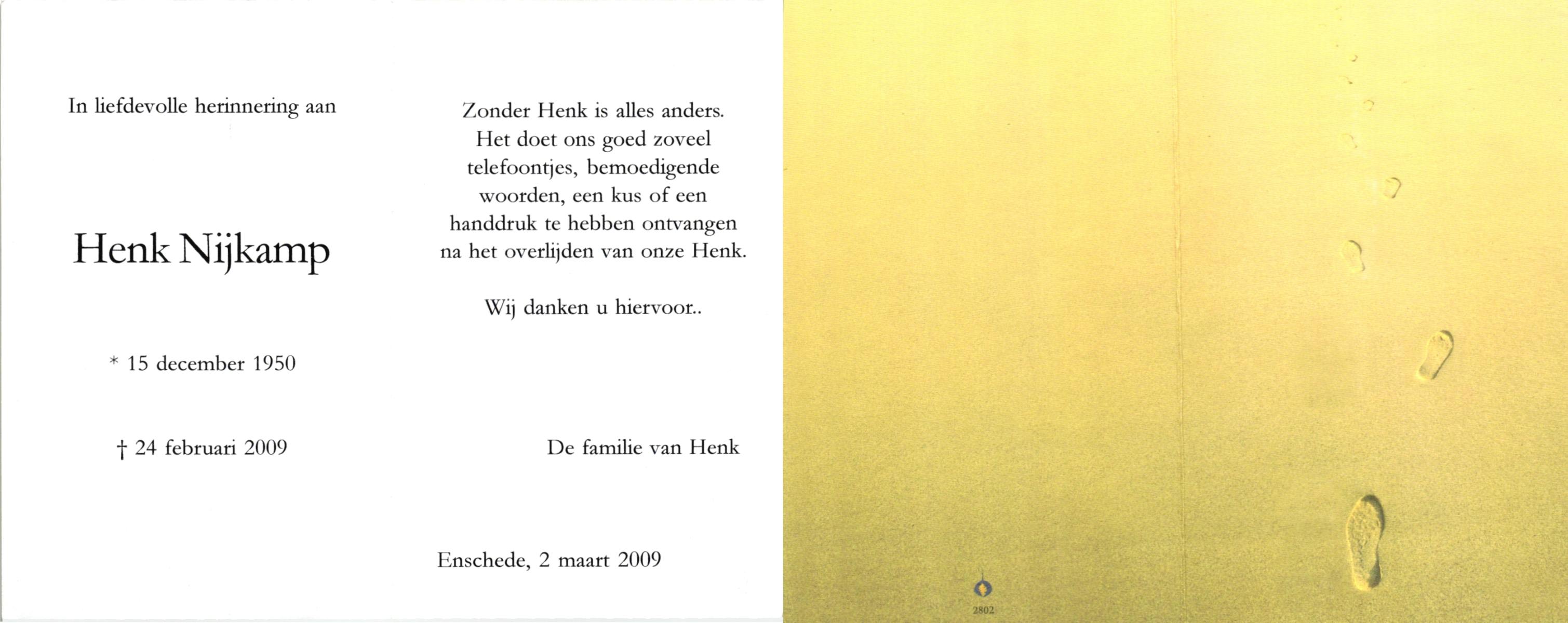 NIJKAMP, , Henk, geboren op 15-12-1950, overleden op 24-2-2009 op 58-jarige leeftijd.