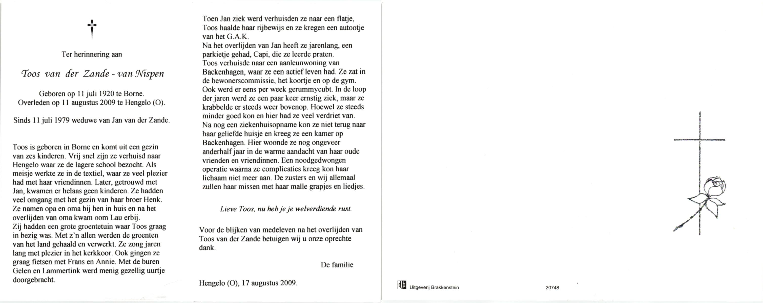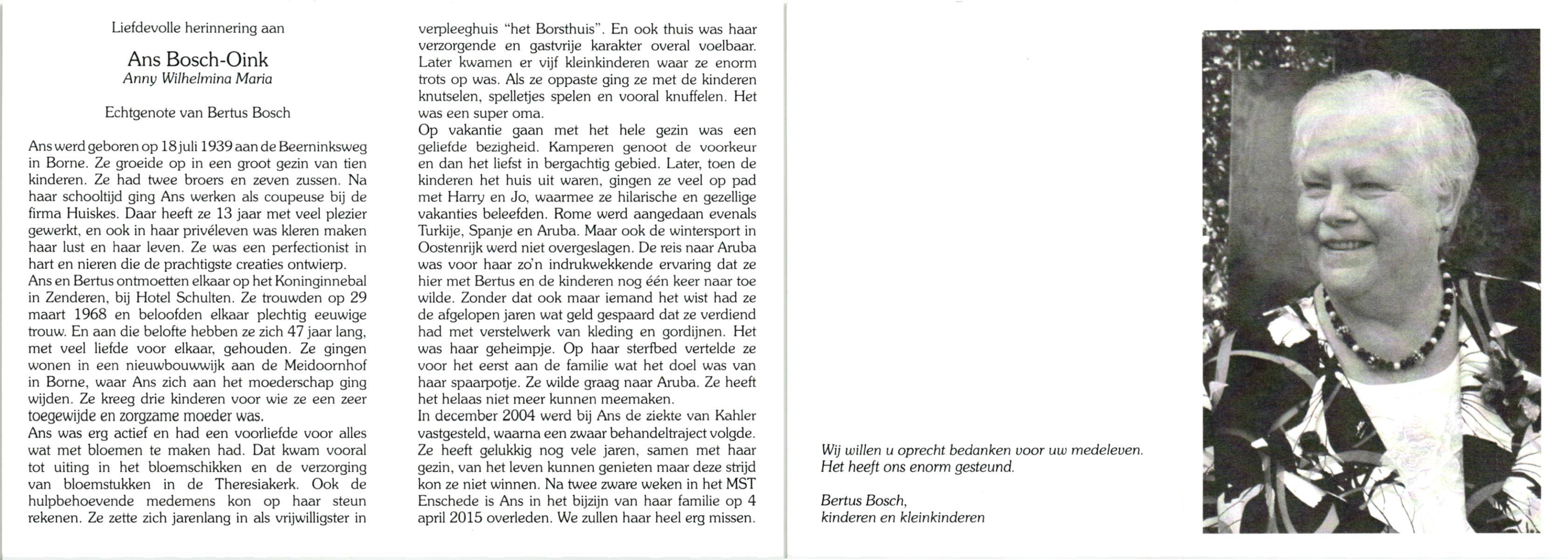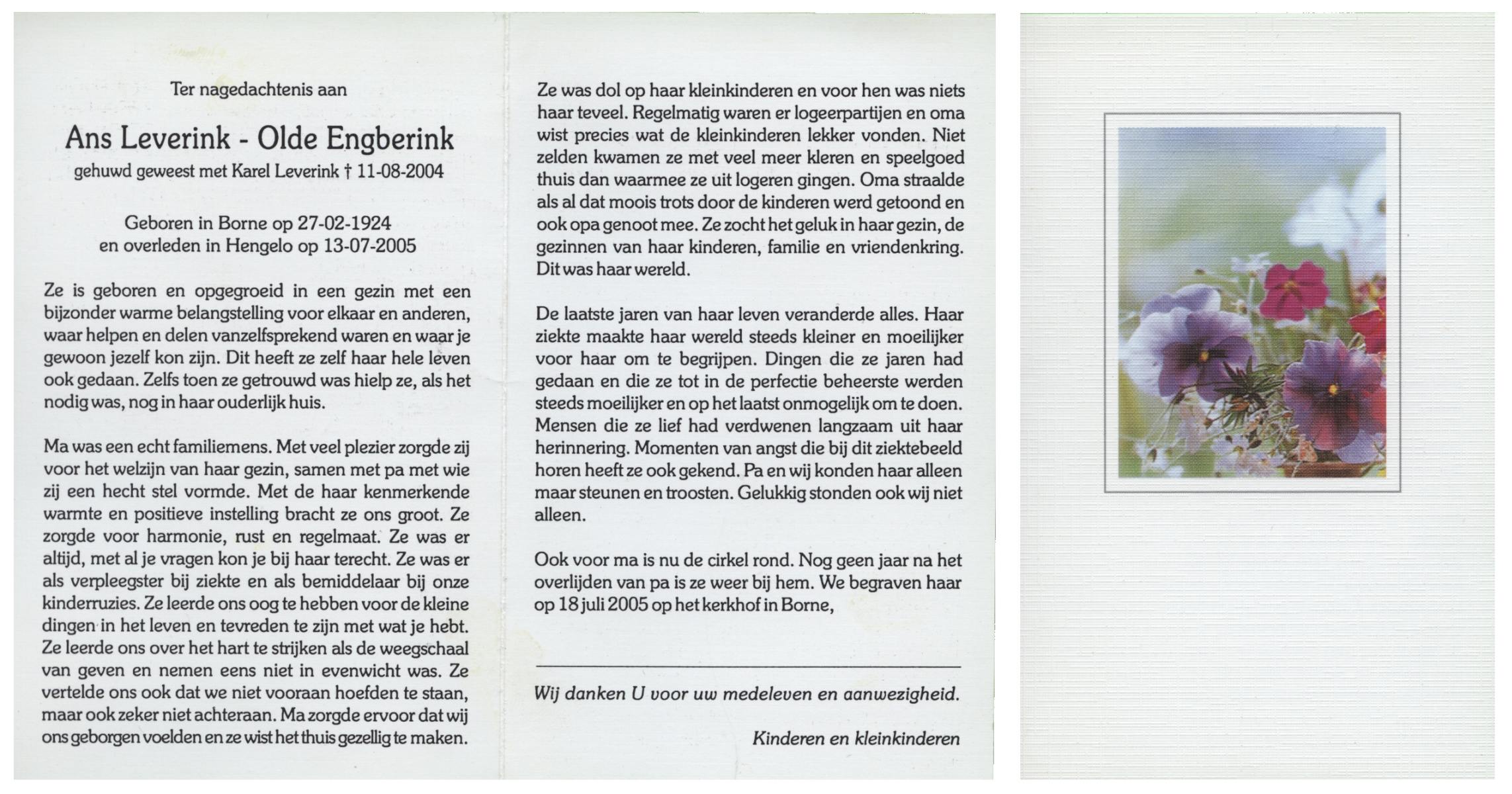 OLDE ENGBERINK, Ans, geboren op 27-2-1924 te Borne, overleden op 13-7-2005 te Hengelo (Ov.) op 81-jarige leeftijd.