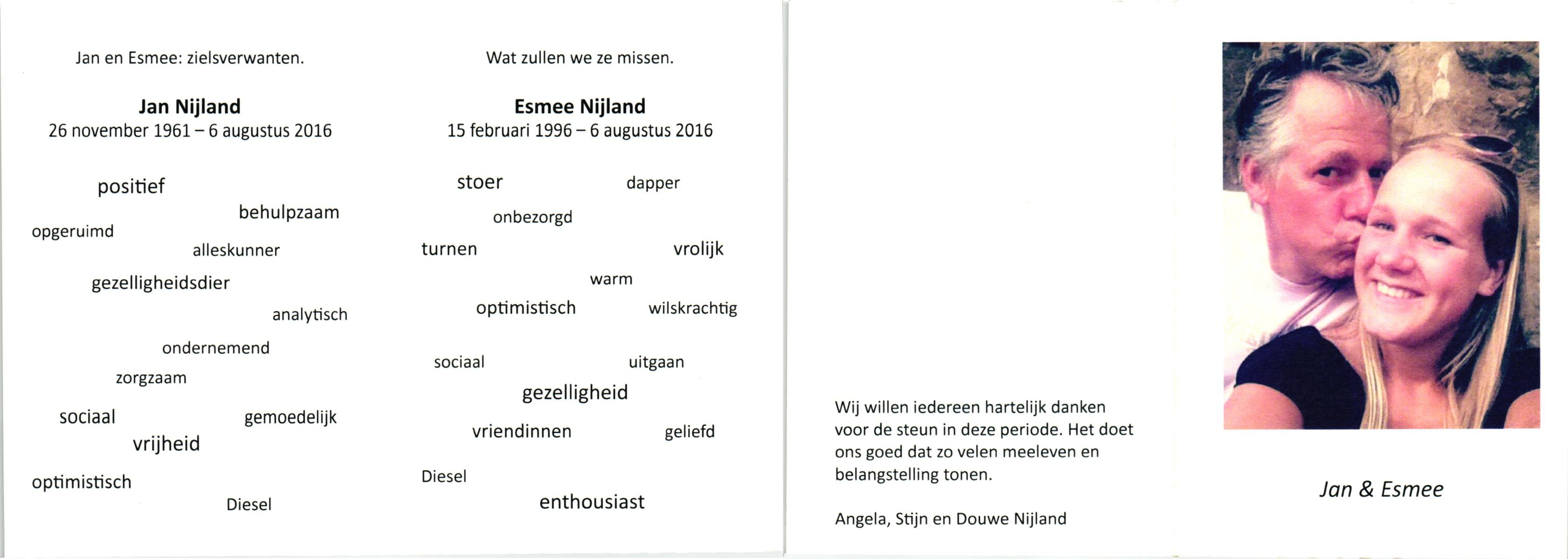 NIJLAND, Esmee, geboren op 15-2-1996, overleden op 6-8-2016 op 20-jarige leeftijd.