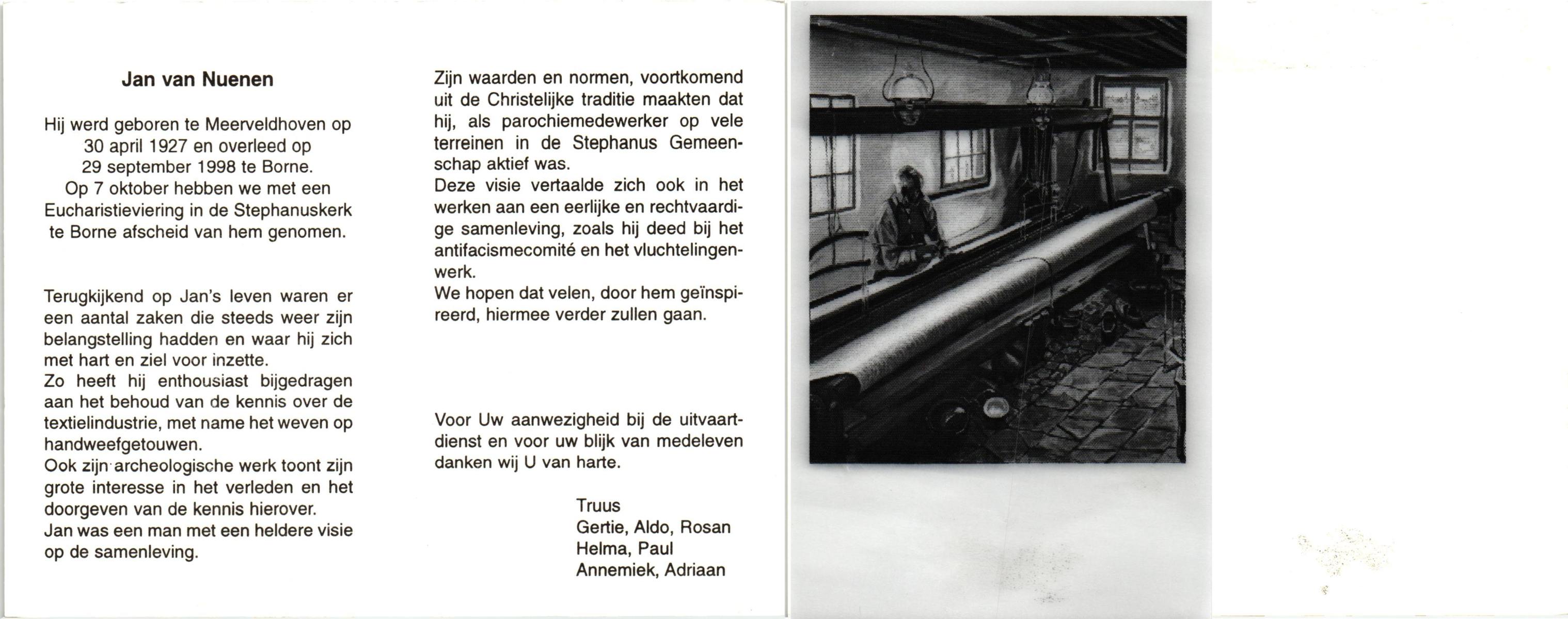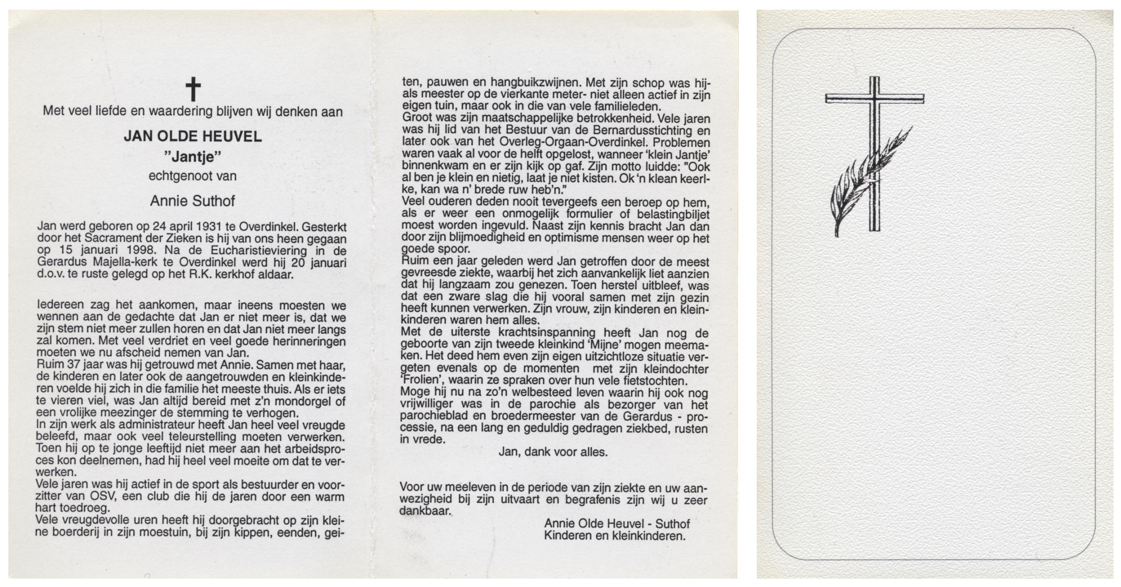 OLDE HEUVEL, Jan, geboren op 24-4-1931 te Overdinkel, overleden op 15-1-1998 op 66-jarige leeftijd, begraven op 20-1-1998 te Overdinkel.