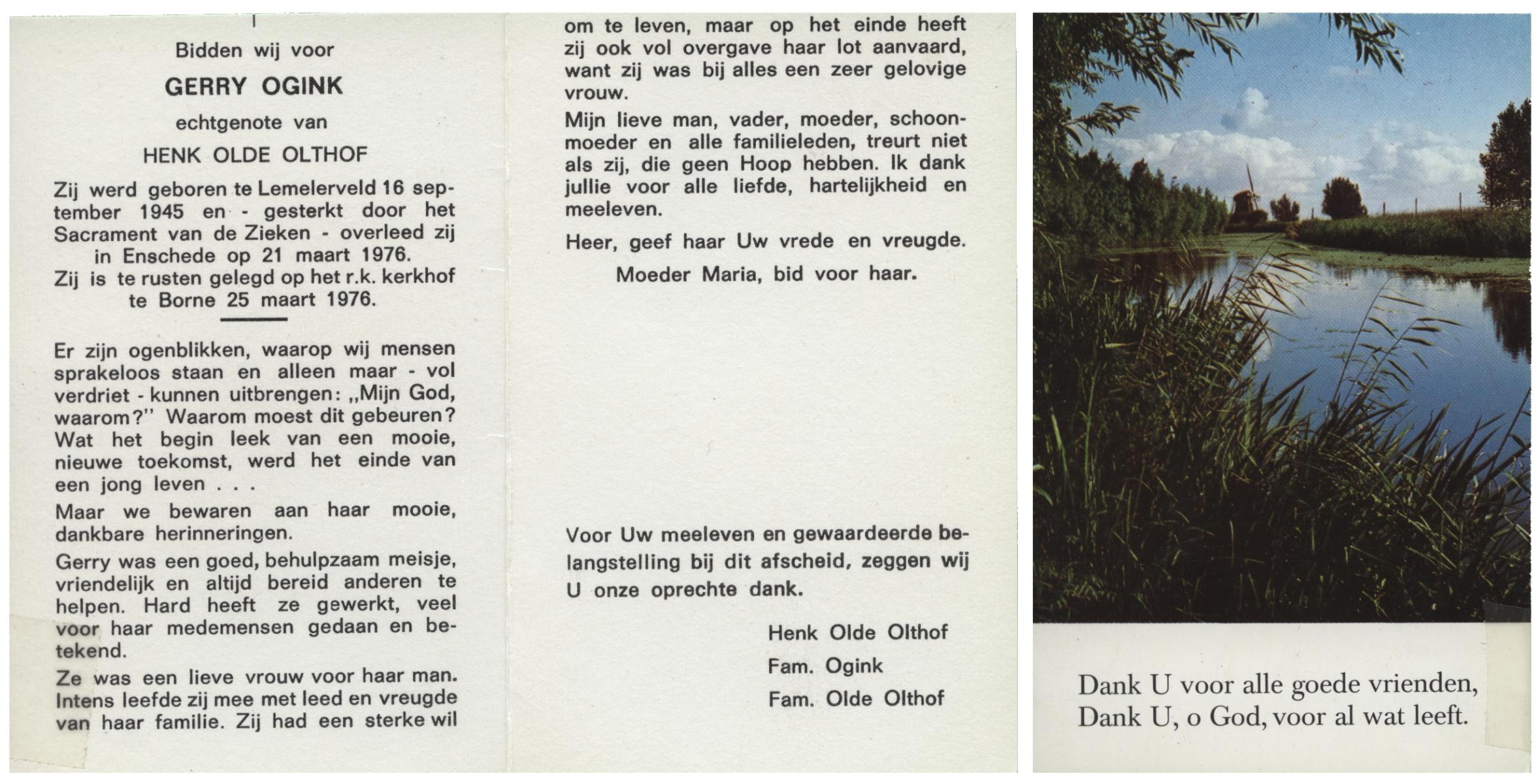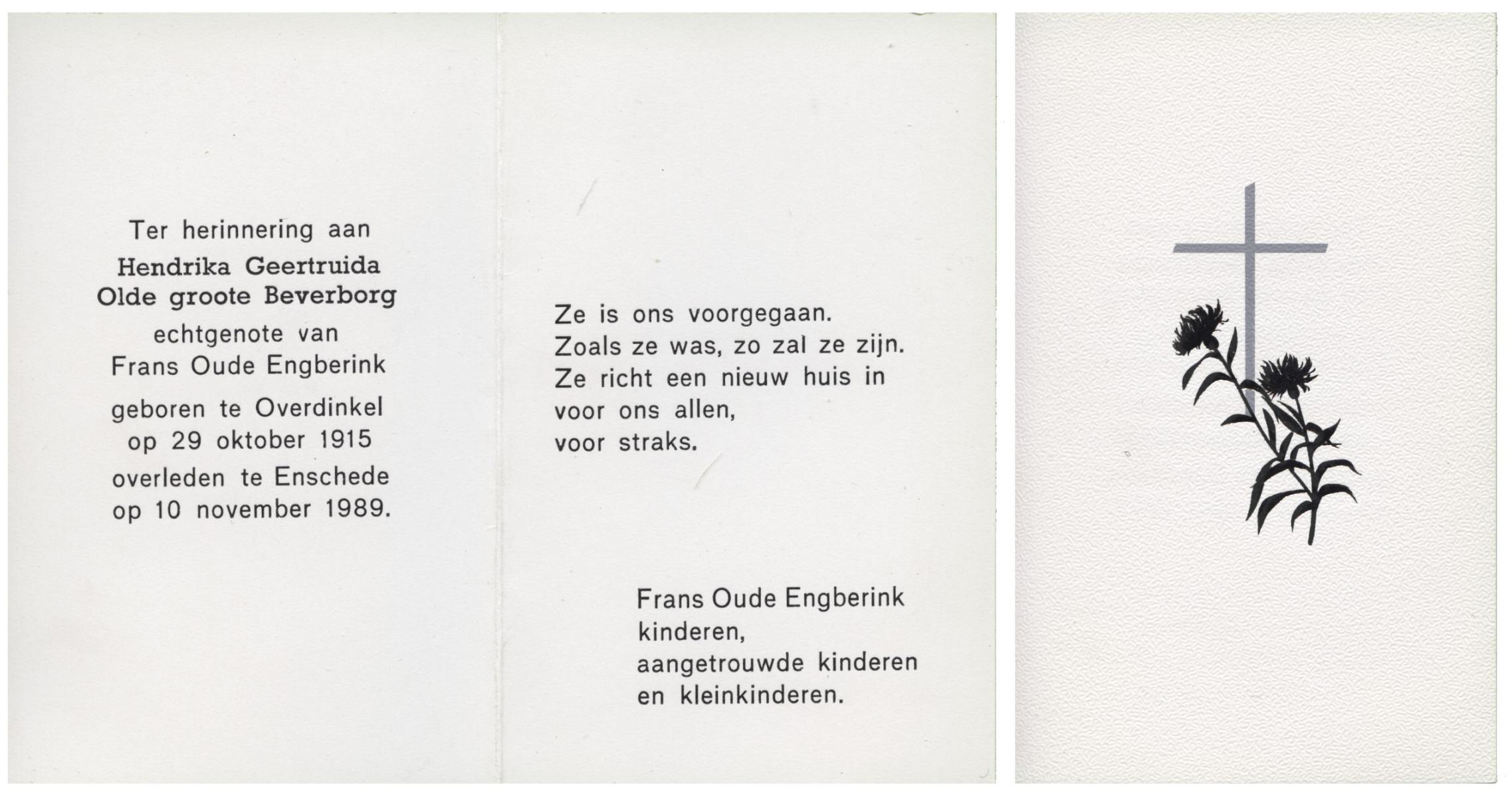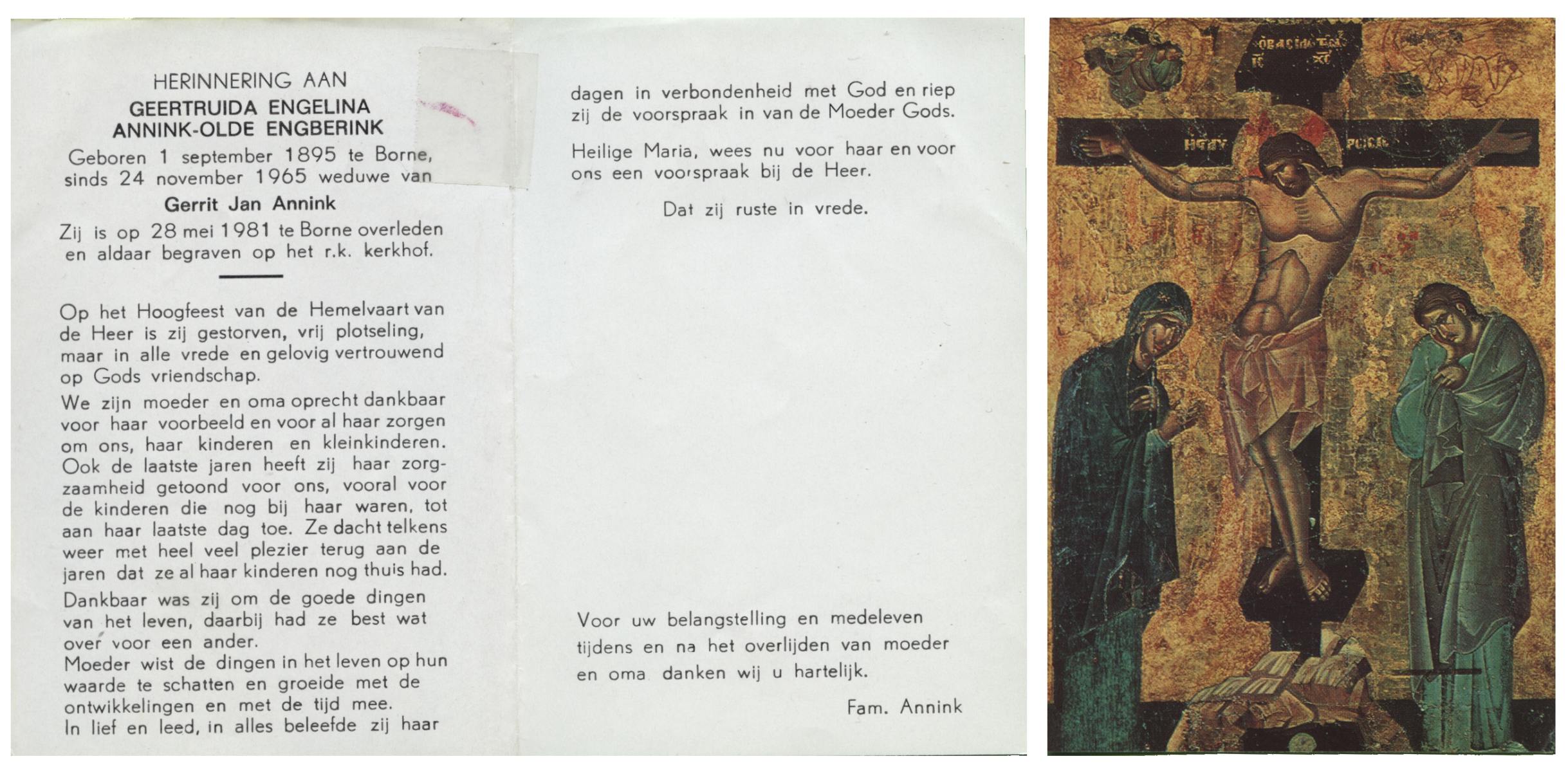 OLDE ENGBERINK, Geertruida Engelina, geboren op 01-09-1895 te Borne, overleden op 28-5-1981 te Borne op 85-jarige leeftijd, begraven te Borne.
