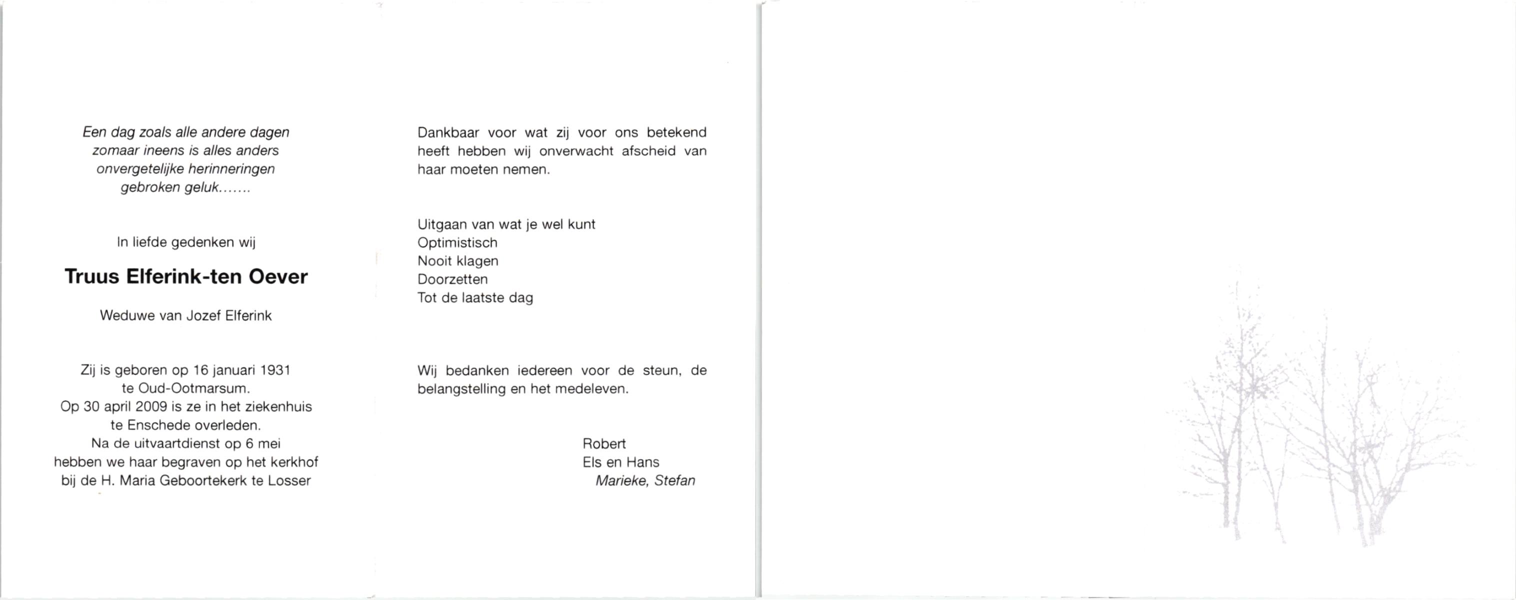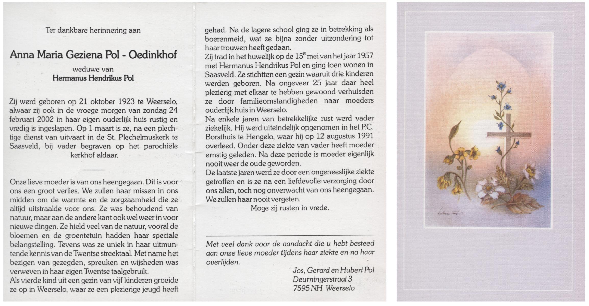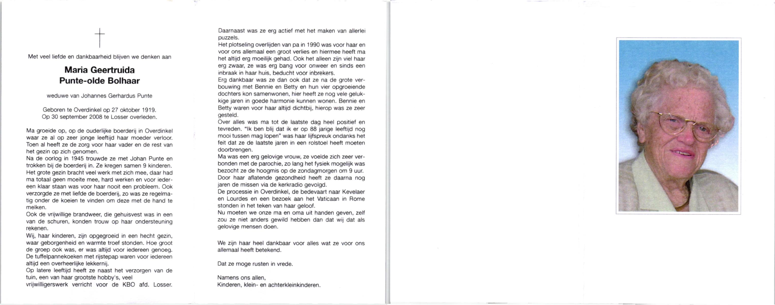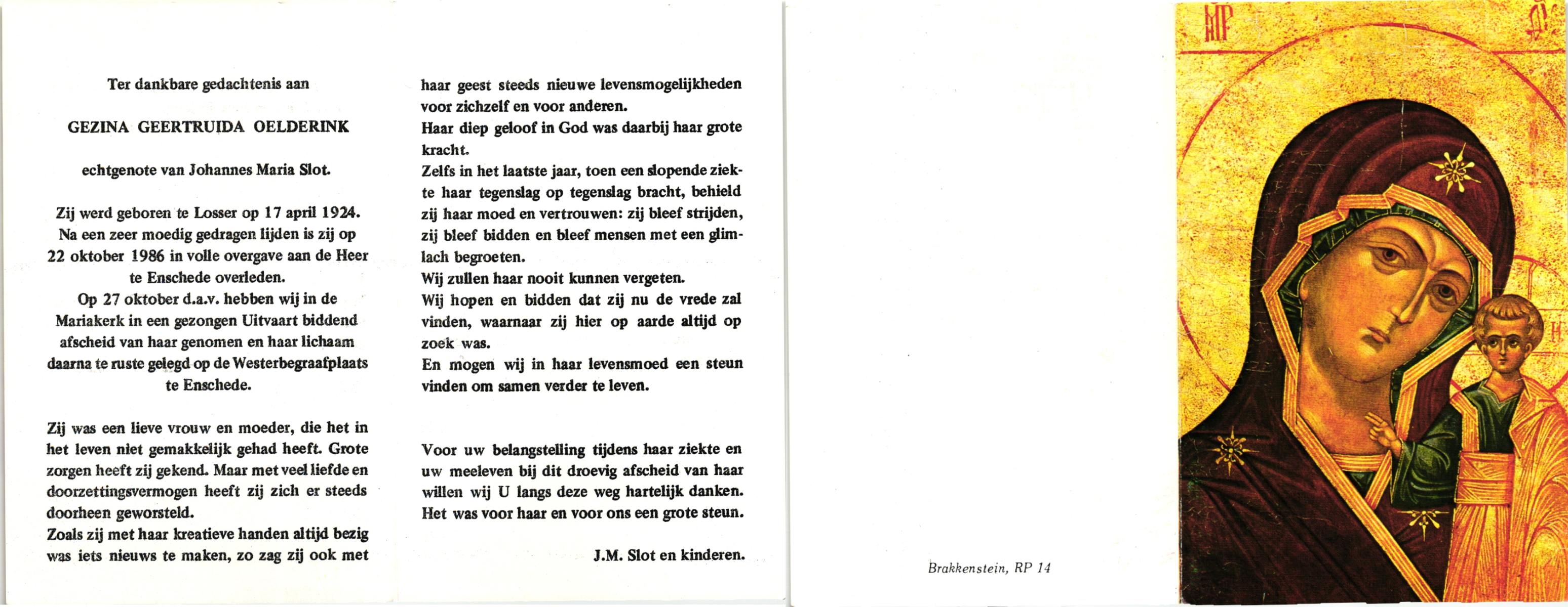 OLDE ENGBERINK, Geertruida Engelina, geboren op 01-09-1895 te Borne, overleden op 28-5-1981 te Borne op 85-jarige leeftijd, begraven te Borne.