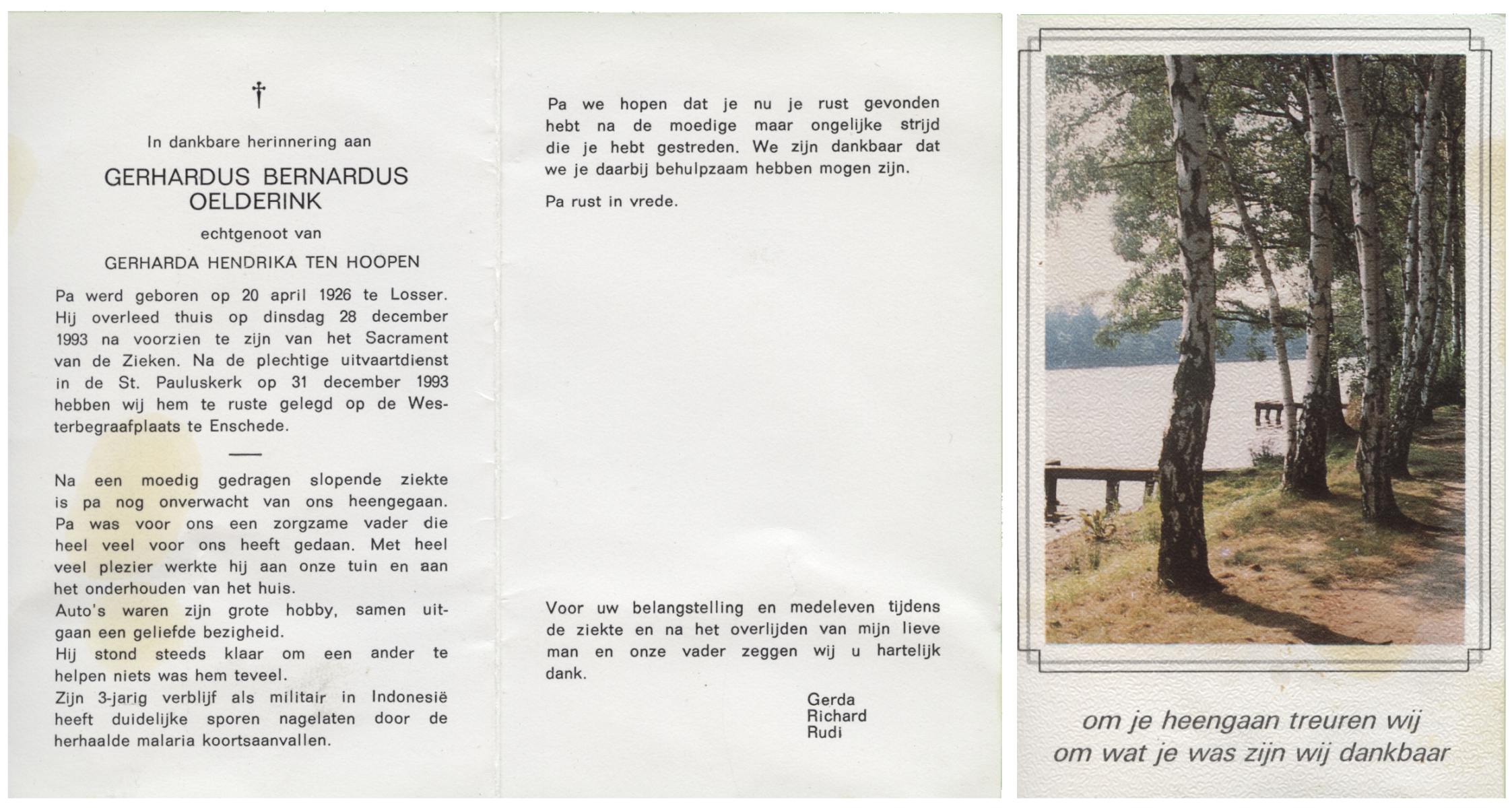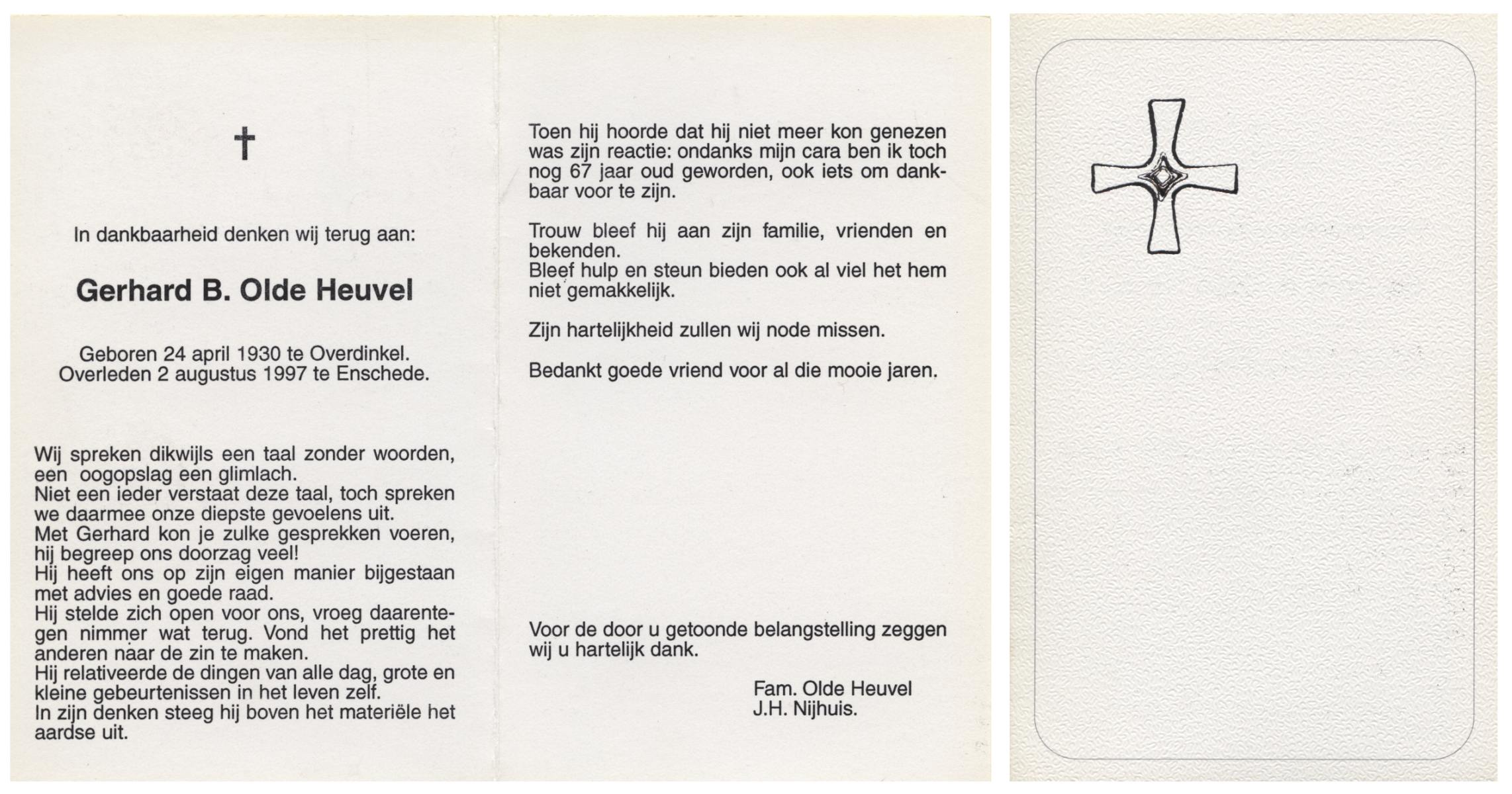 OLDE HEUVEL, Gerhard B., geboren op 24-4-1930 te Overdinkel, overleden op 2-8-1997 te Enschede op 67-jarige leeftijd.