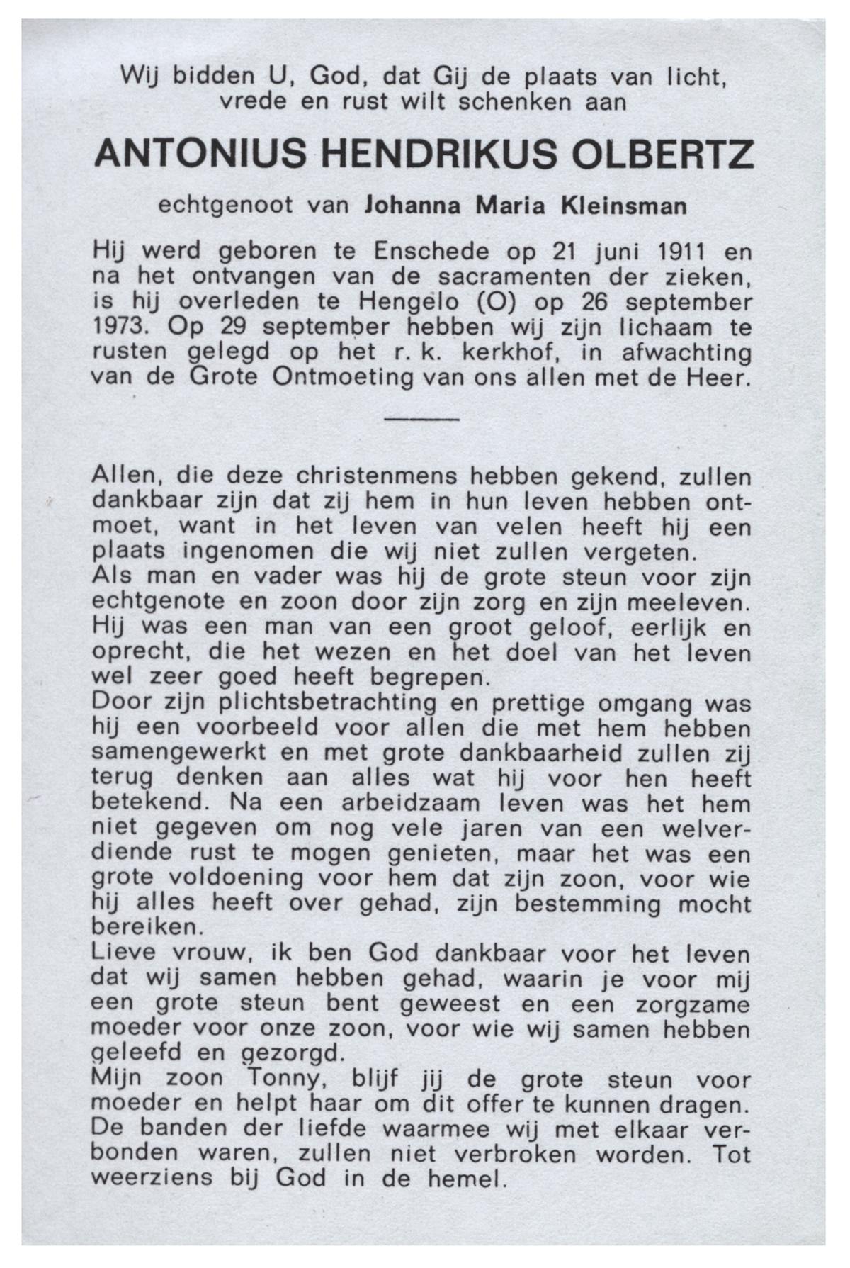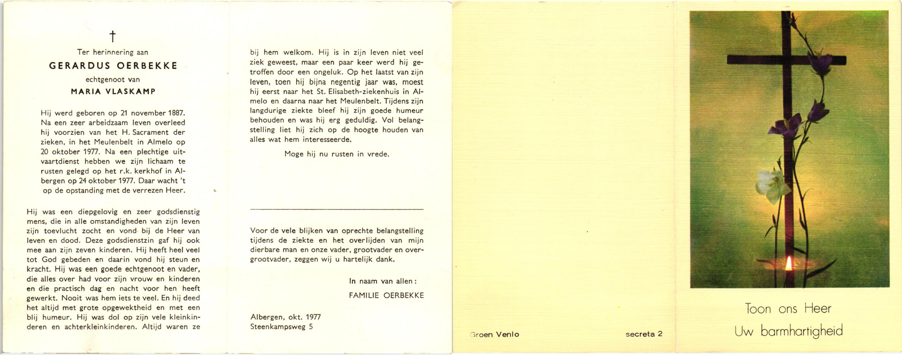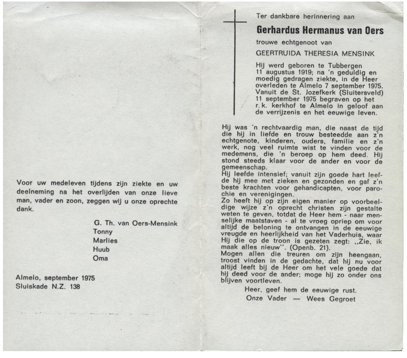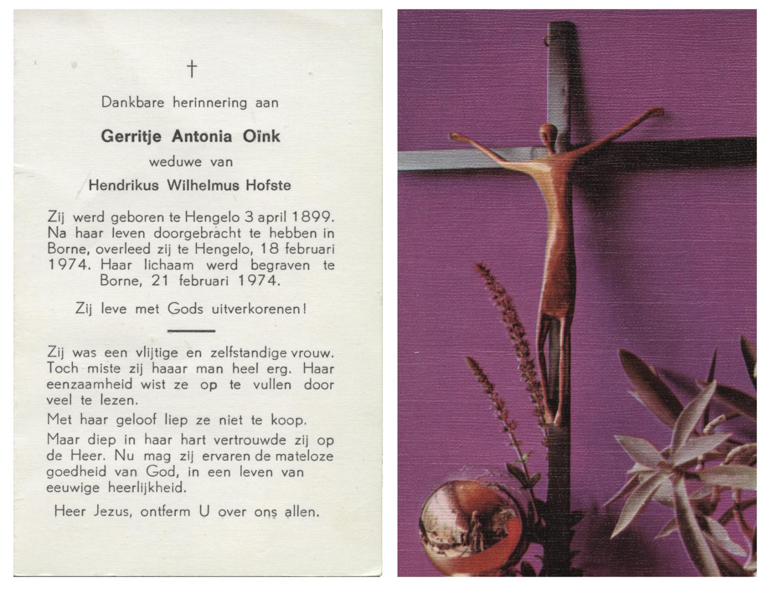 OLDE ENGBERINK, Gerardus Antonius, geboren op 11-10-1898 te Borne, overleden op 11-8-1974 te Beckum op 75-jarige leeftijd, begraven op 15-8-1974 te Borne.