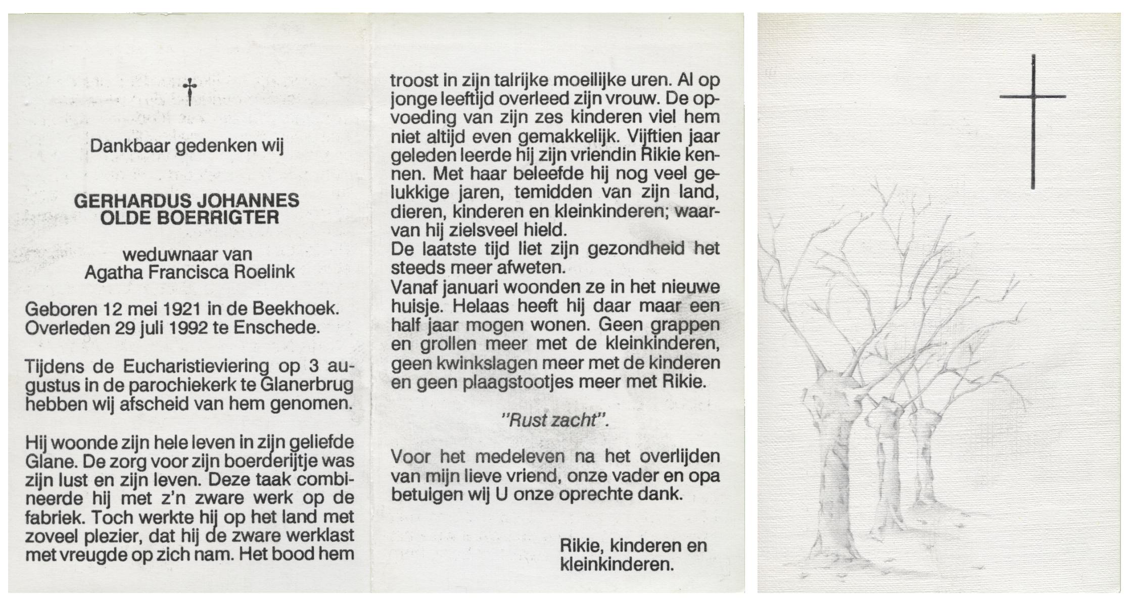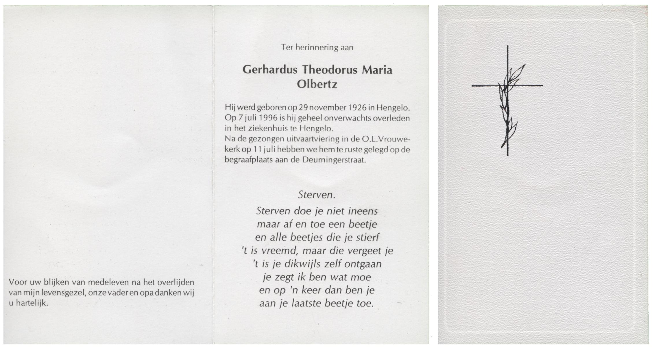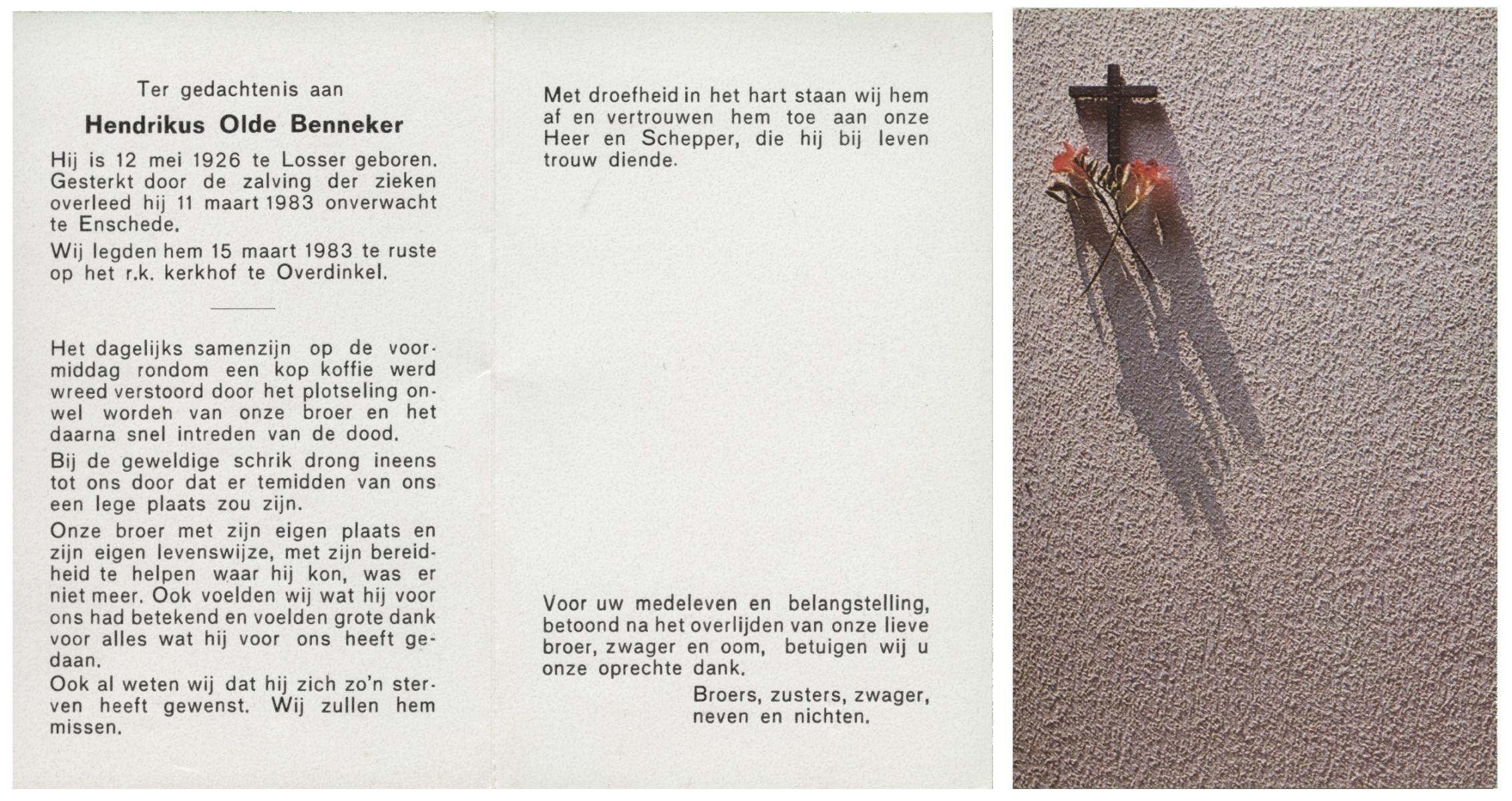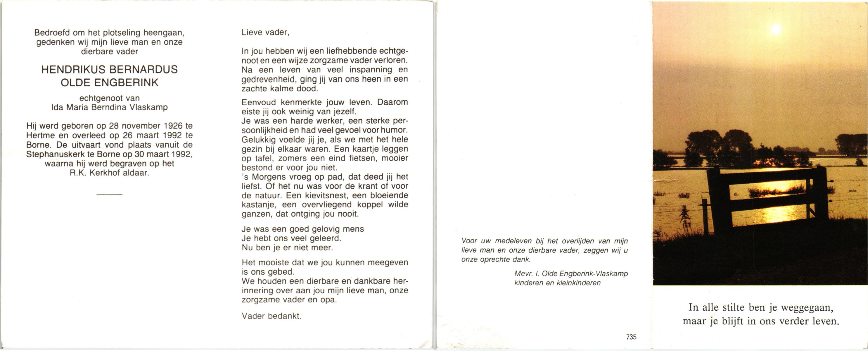 OLDE ENGBERINK, Hendrikus Bernardus, geboren op 28-11-1926 te Hertme, overleden op 26-3-1992 te Borne op 65-jarige leeftijd, begraven op 30-3-1992 te Borne.