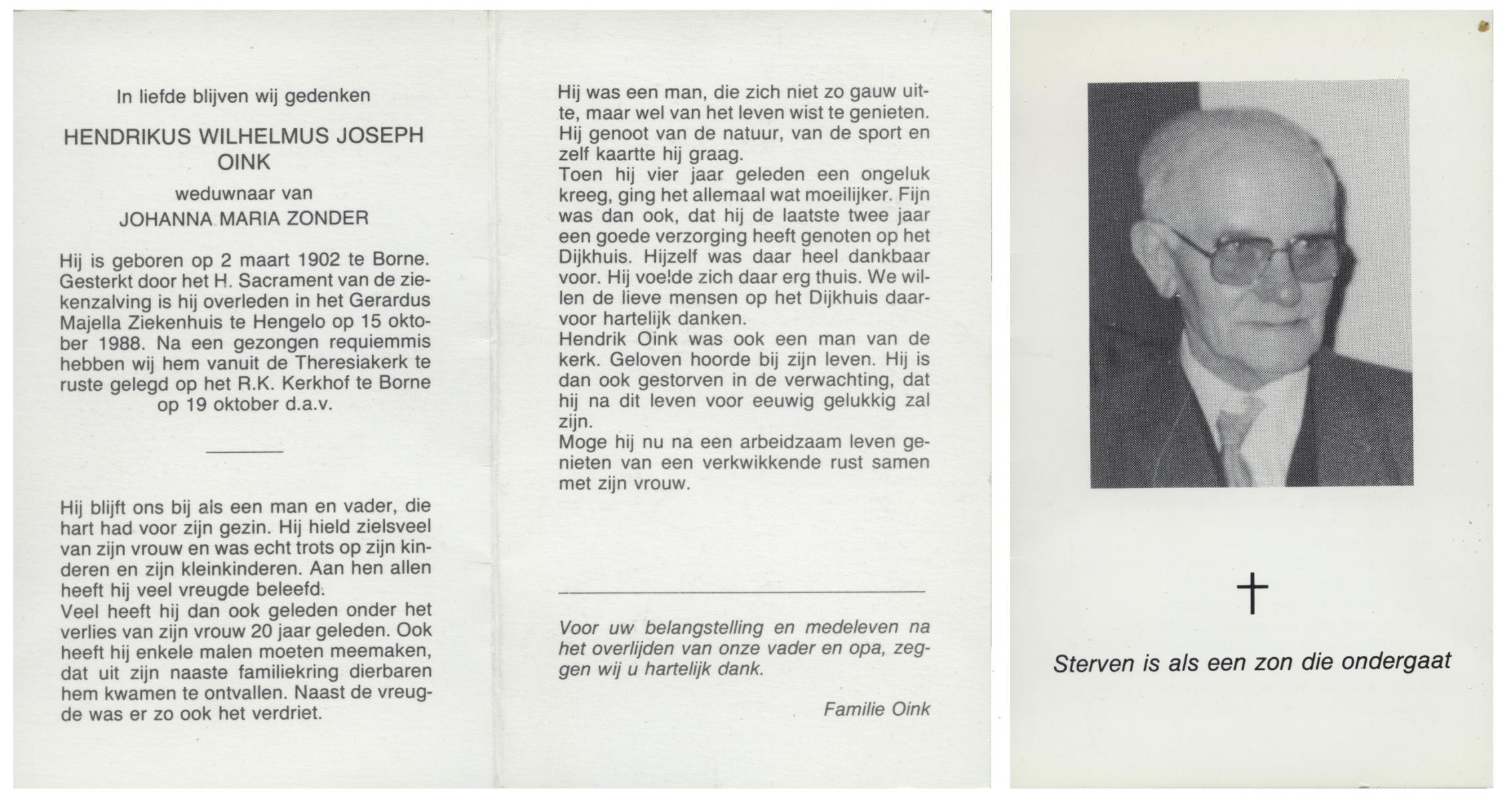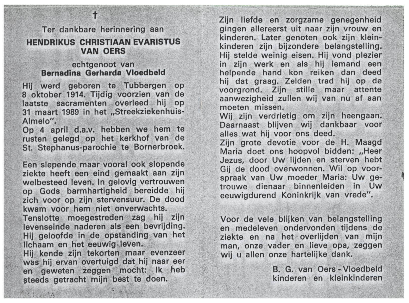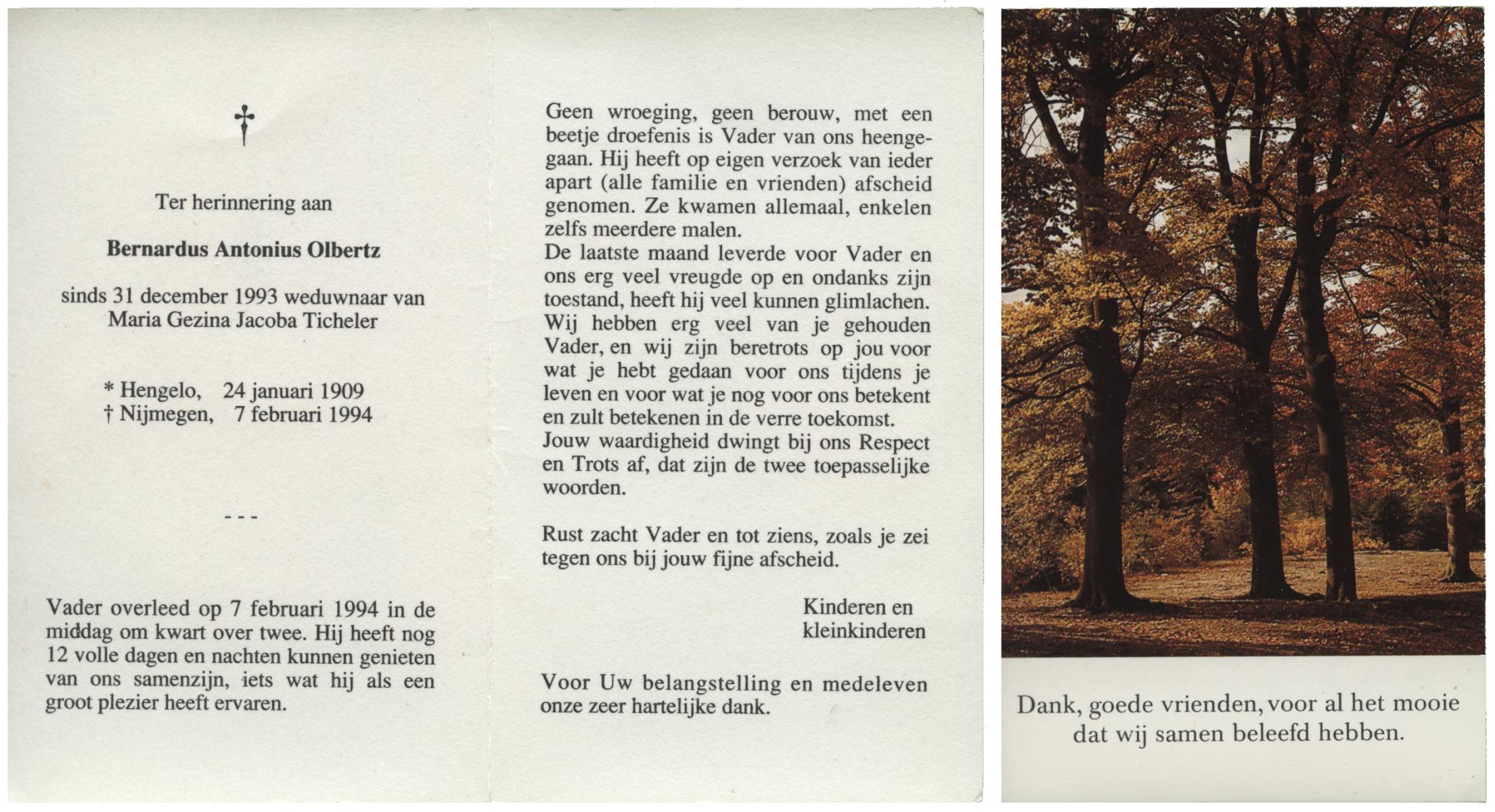 OLDE ENGBERINK, Hendrikus Bernardus, geboren op 28-11-1926 te Hertme, overleden op 26-3-1992 te Borne op 65-jarige leeftijd, begraven op 30-3-1992 te Borne.