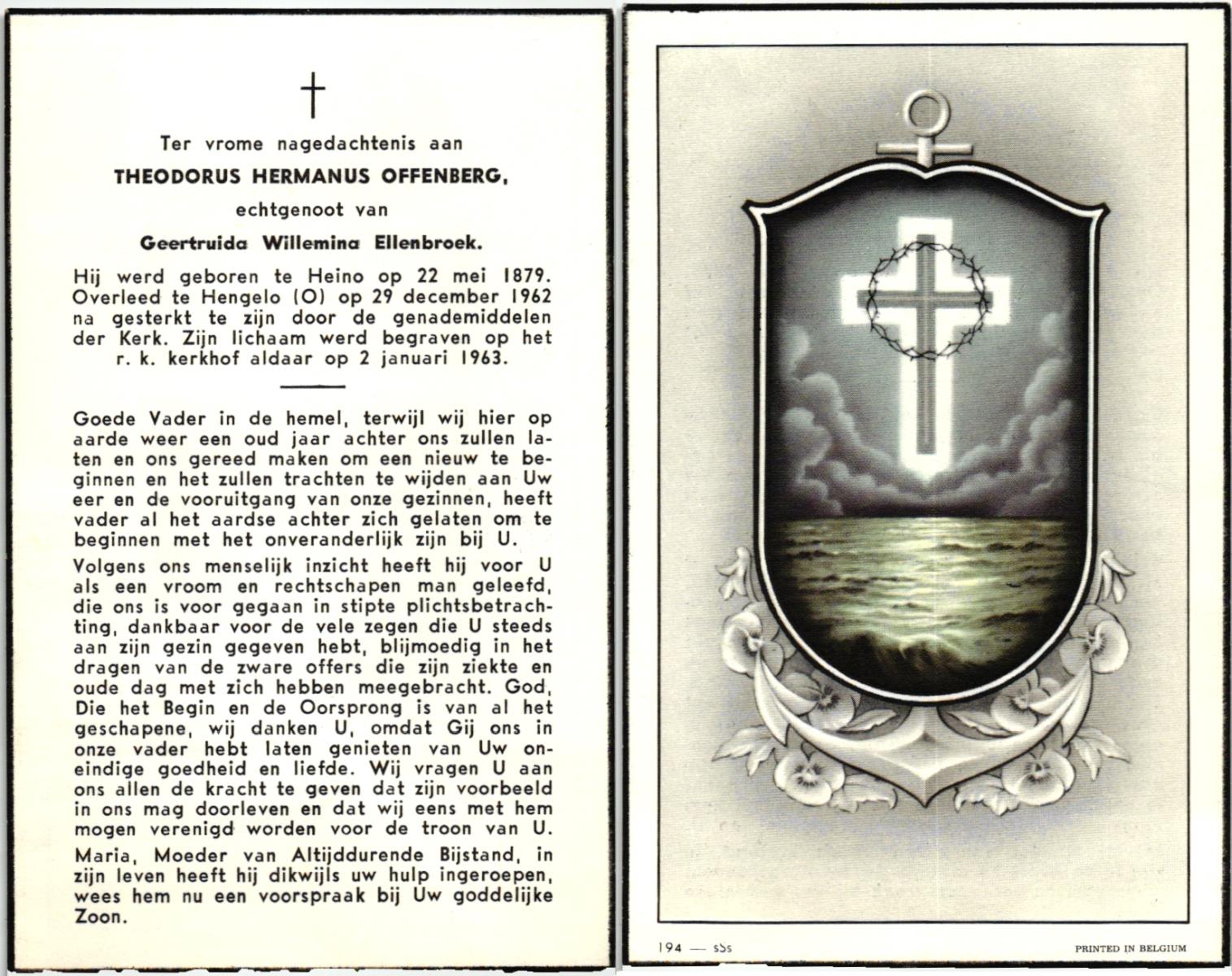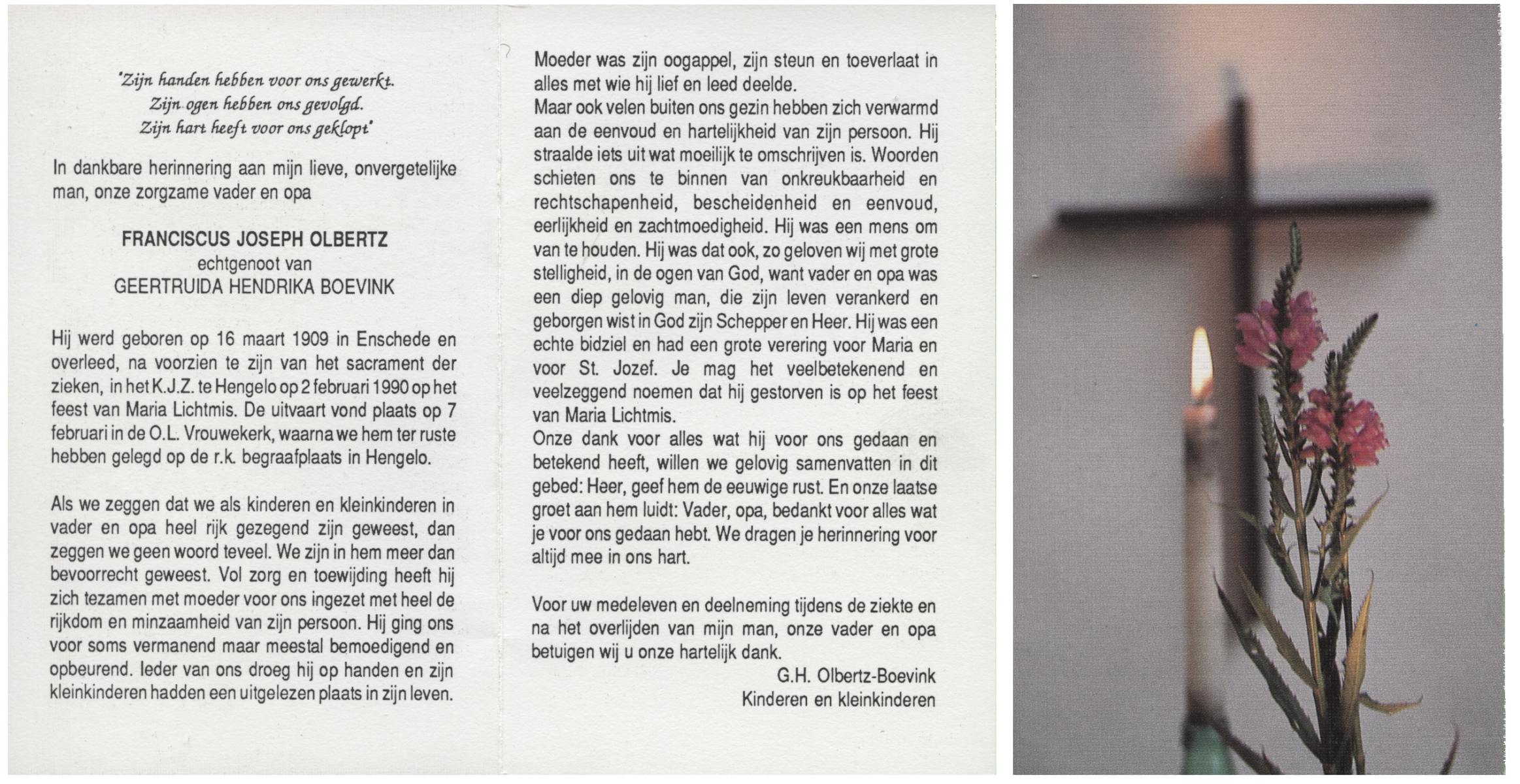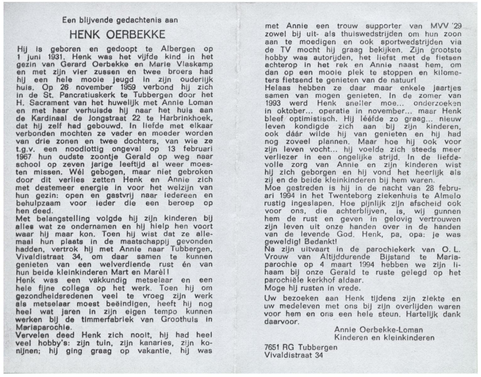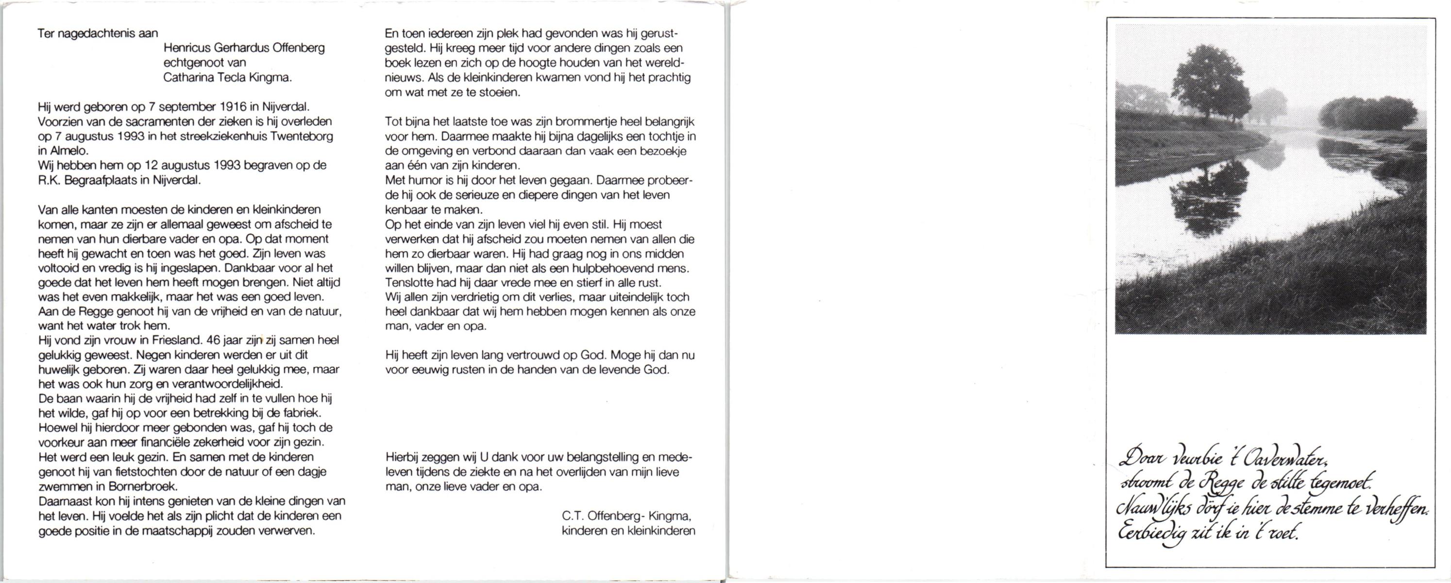 OLDE ENGBERINK, Hendrikus Bernardus, geboren op 28-11-1926 te Hertme, overleden op 26-3-1992 te Borne op 65-jarige leeftijd, begraven op 30-3-1992 te Borne.