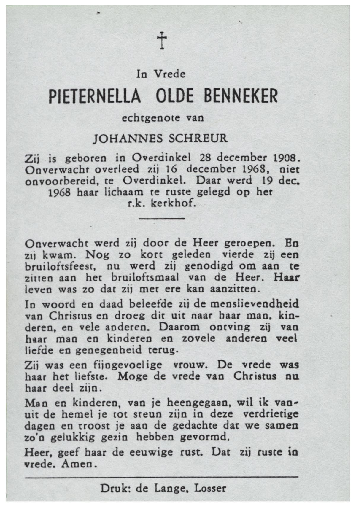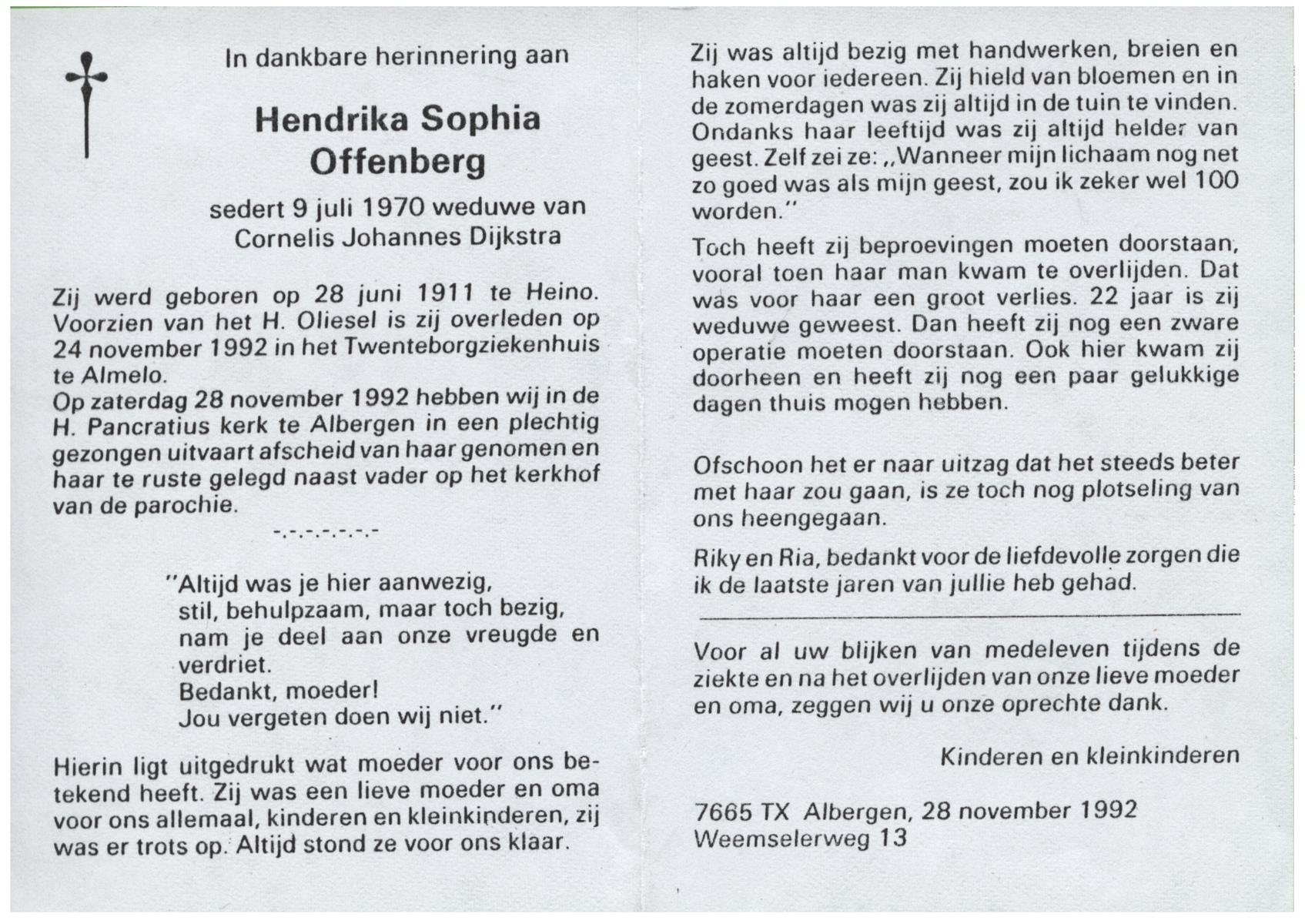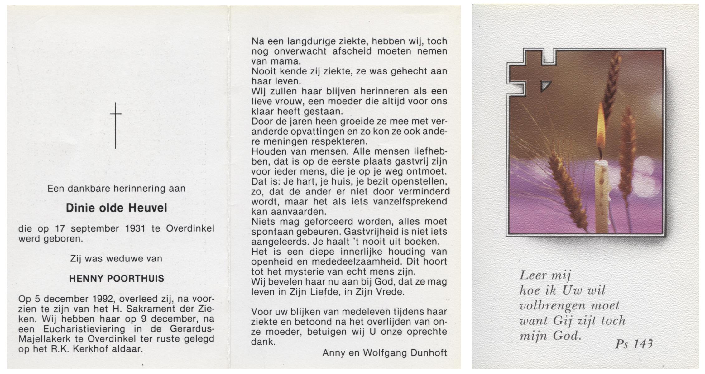 OLDE HEUVEL, Dinie, geboren op 17-9-1931 te Overdinkel, overleden op 5-12-1992 op 61-jarige leeftijd, begraven op 9-12-1992 te Overdinkel.