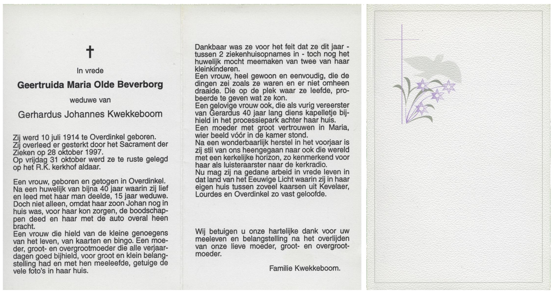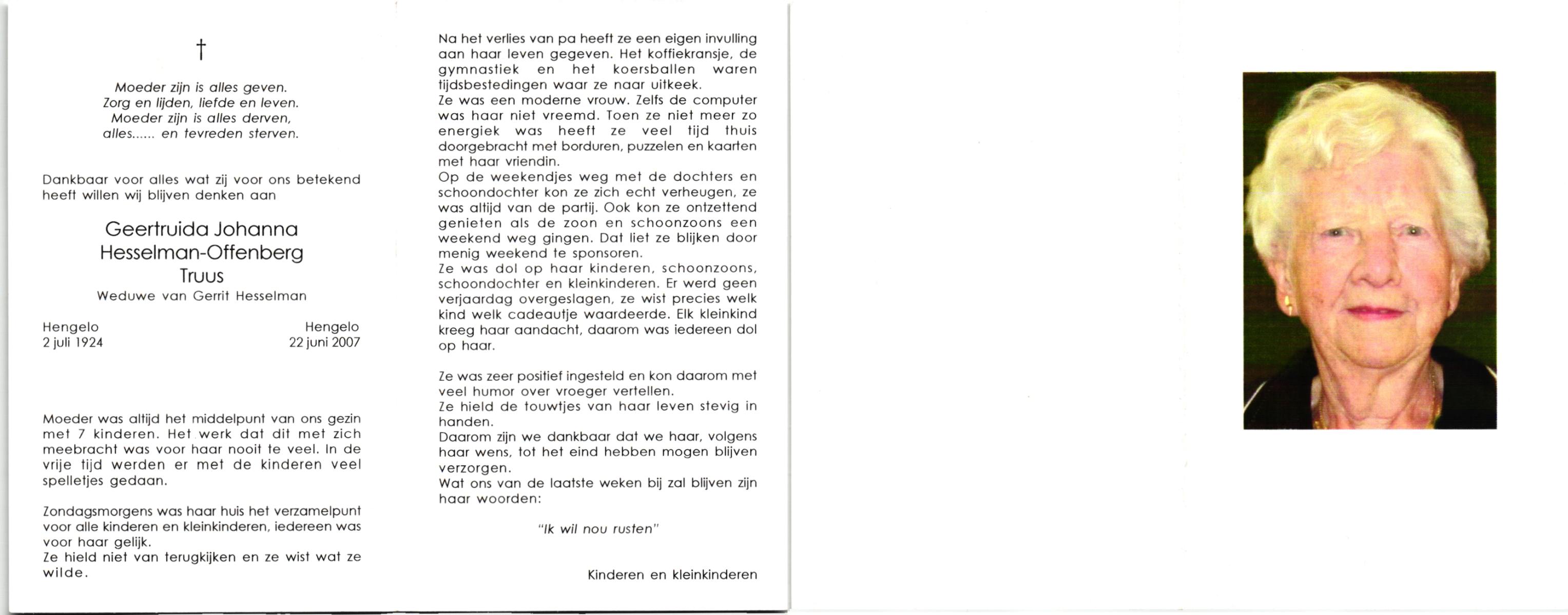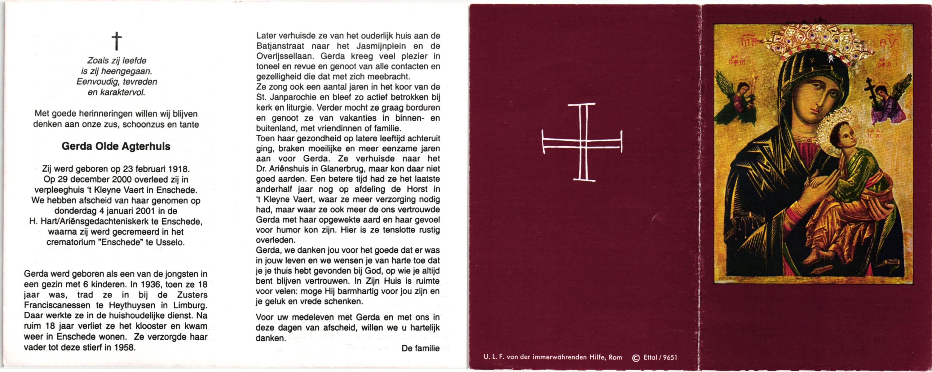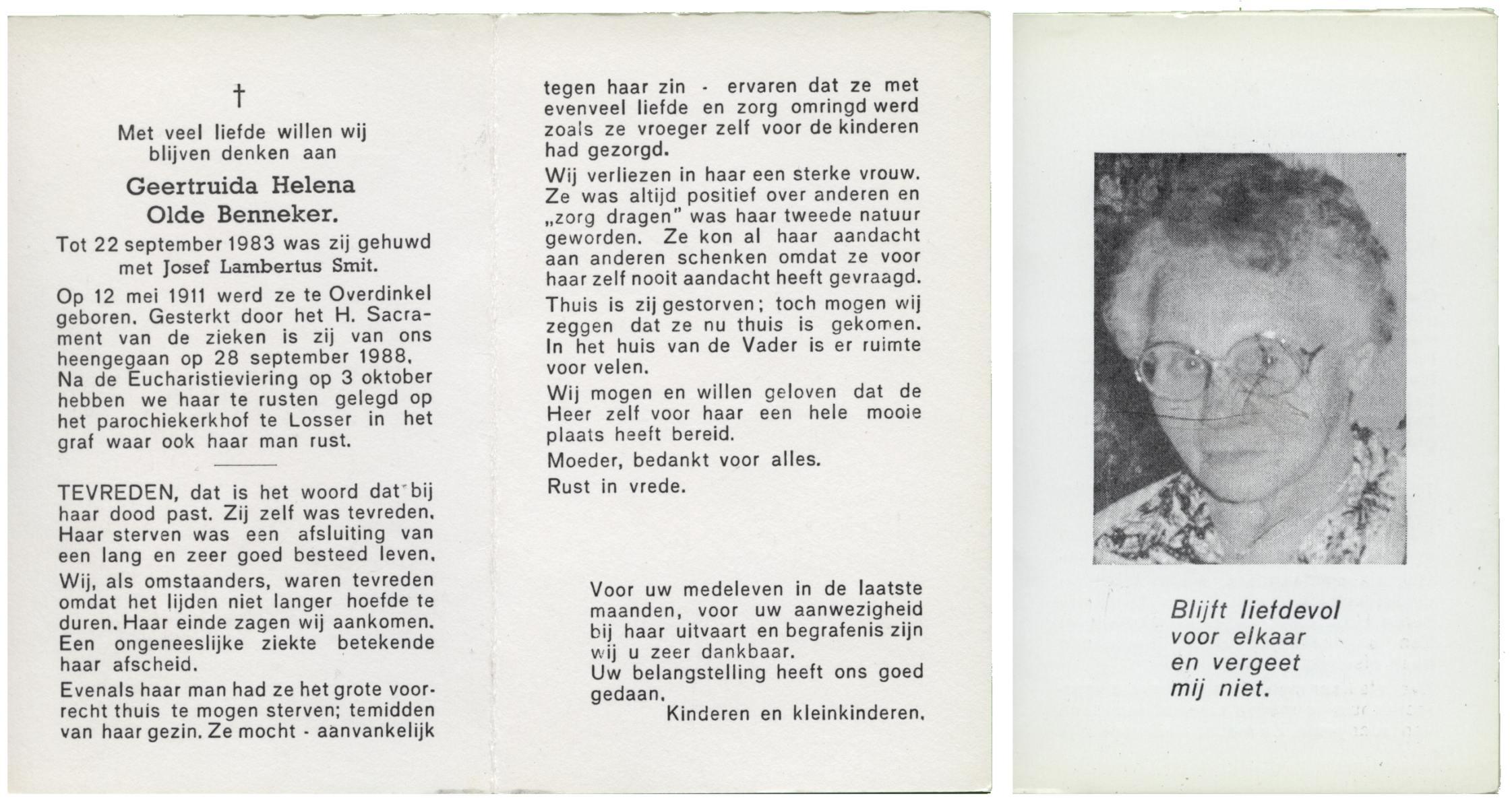 OLDE HARTMAN, Geertruida Johanna, geboren op 22-4-1908 te Lonneker, overleden op 15-5-1979 te Enschede op 71-jarige leeftijd, gecremeerd op 18-5-1979 te Usselo.