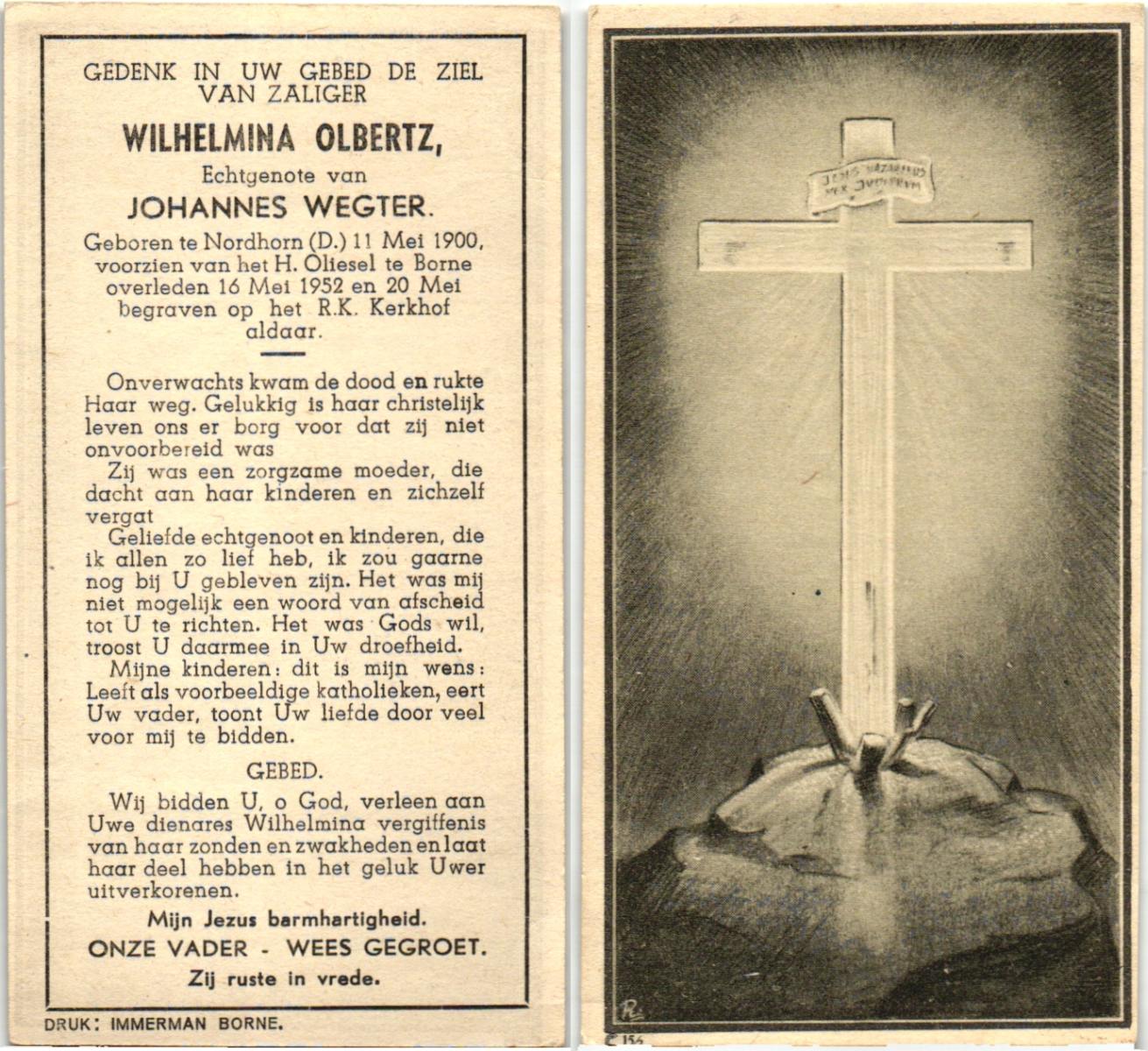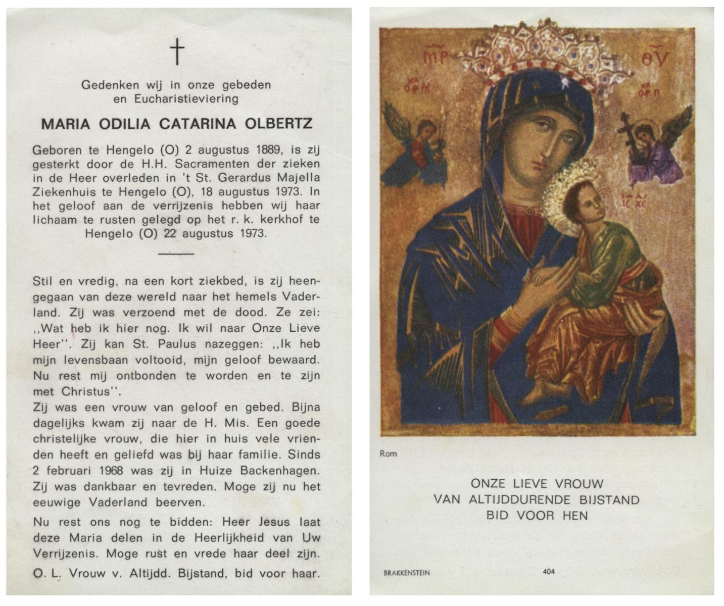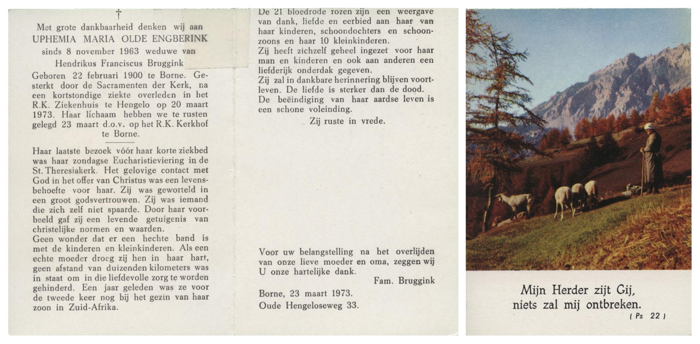 OLDE ENGBERINK, Uphemia Maria, geboren op 22-2-1900 te Borne, overleden op 20-3-1973 te Hengelo (Ov.) op 73-jarige leeftijd, begraven op 23-3-1973 te Borne.