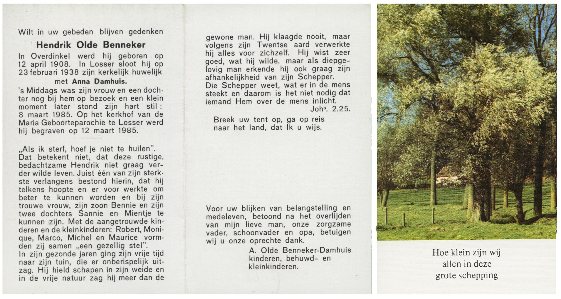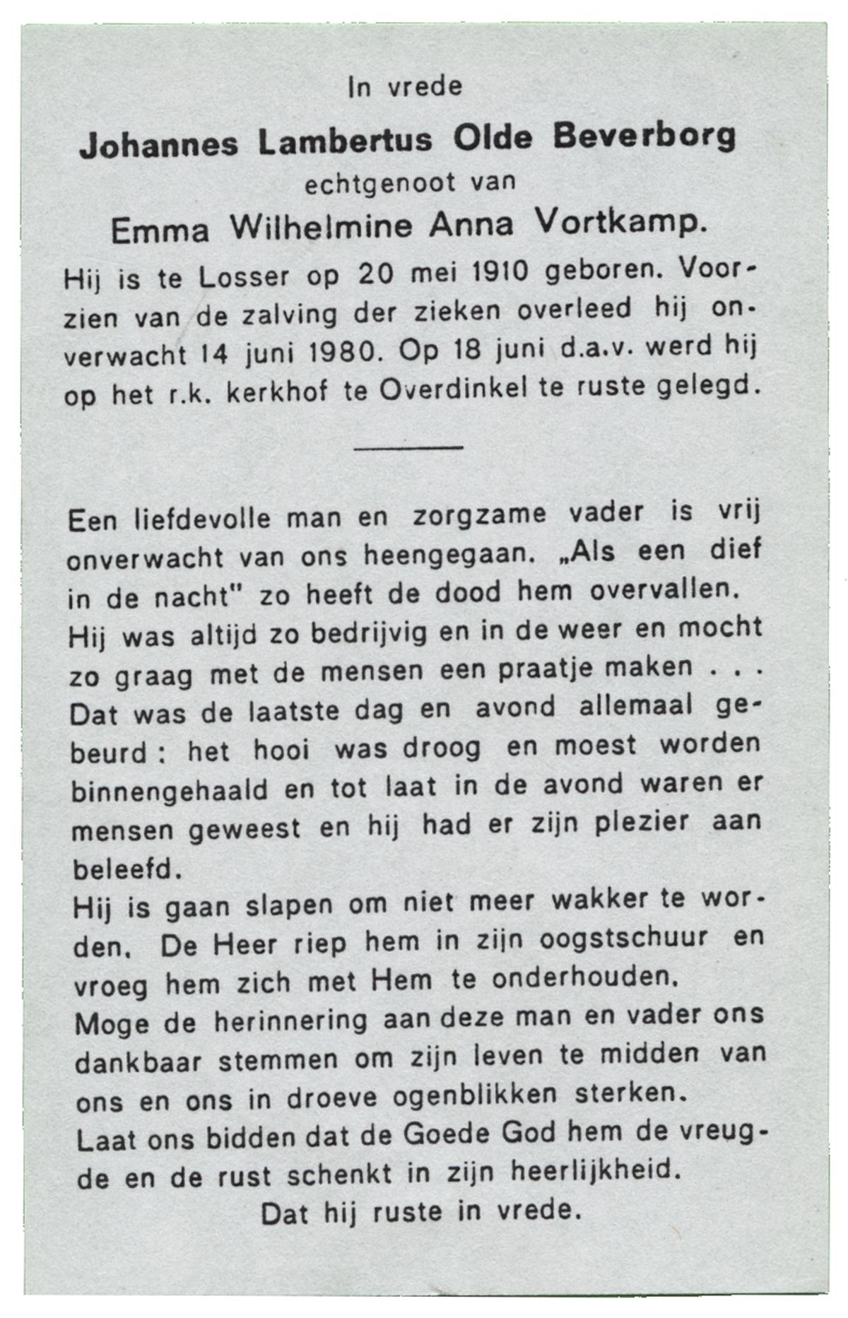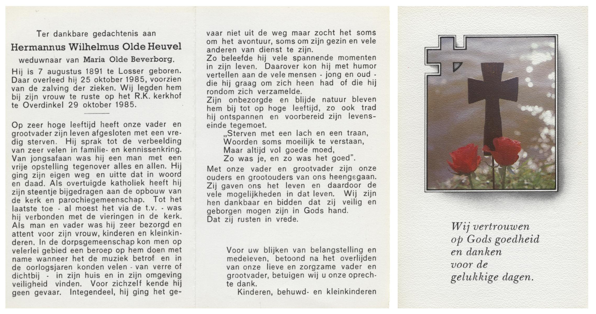 OLDE HEUVEL, Hermannus Wilhelmus, geboren op 07-08-1891 te Losser, overleden op 25-10-1985 te Losser op 94-jarige leeftijd, begraven op 29-10-1985 te Overdinkel.