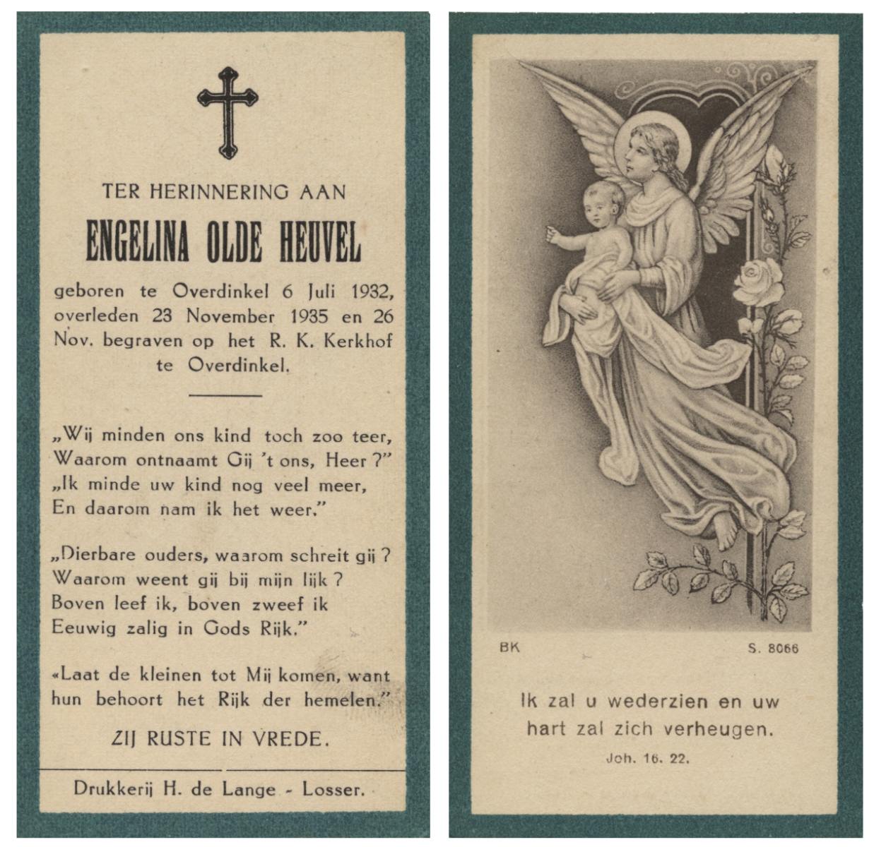 OLDE HEUVEL, Engelina, geboren op 6-7-1932 te Overdinkel, overleden op 23-11-1935 op 3-jarige leeftijd.
