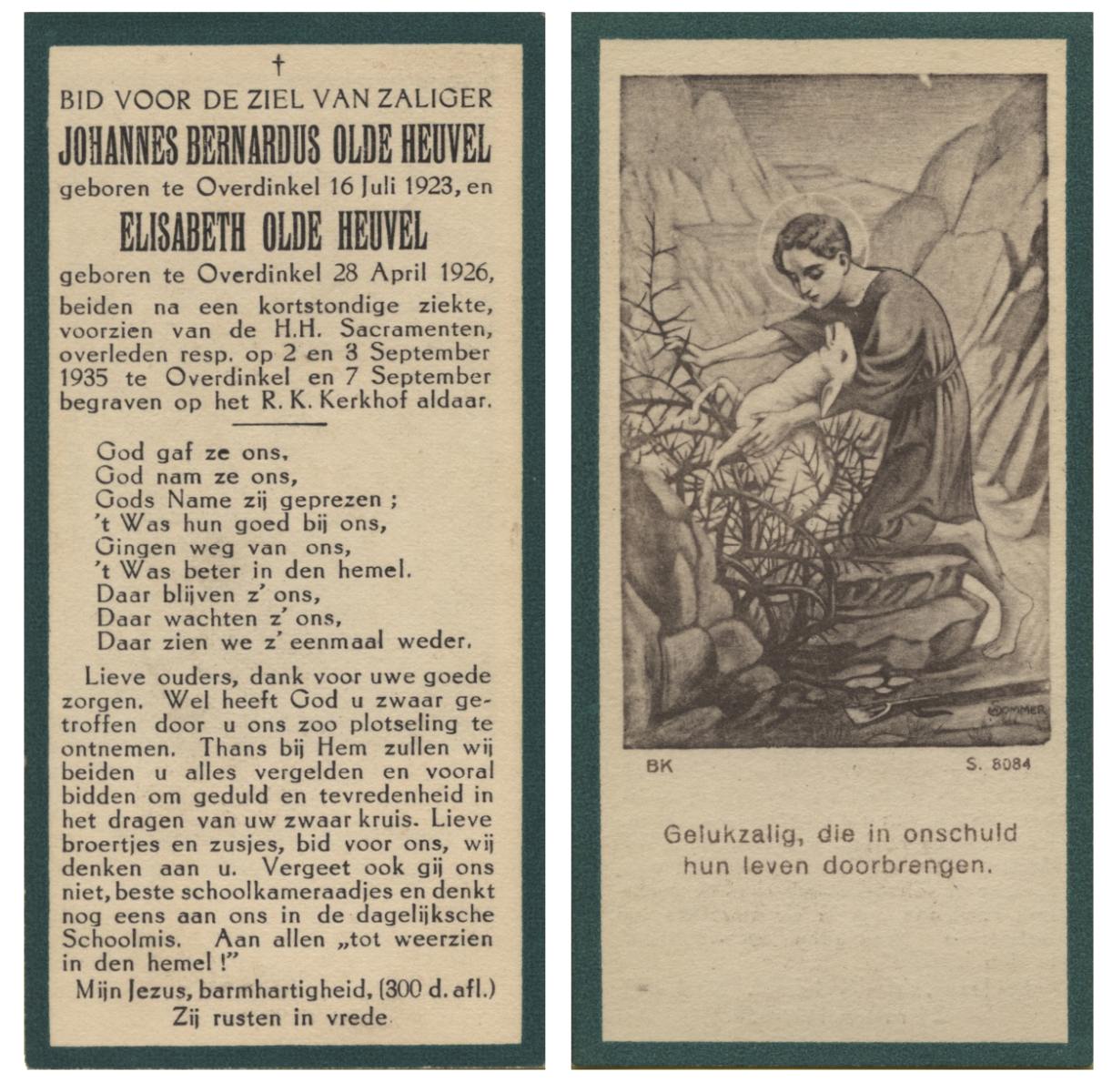 OLDE HEUVEL, Elisabeth, geboren op 28-4-1926 te Overdinkel, overleden op 3-9-1935 te Overdinkel op 9-jarige leeftijd.