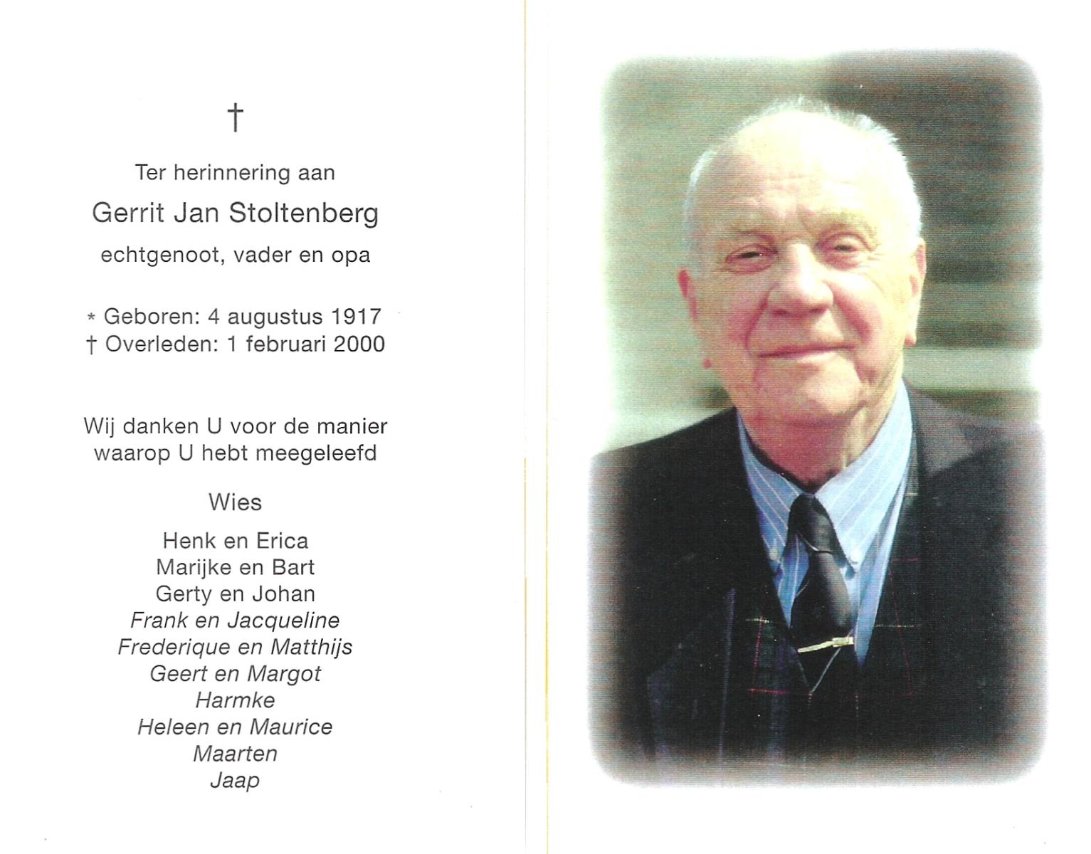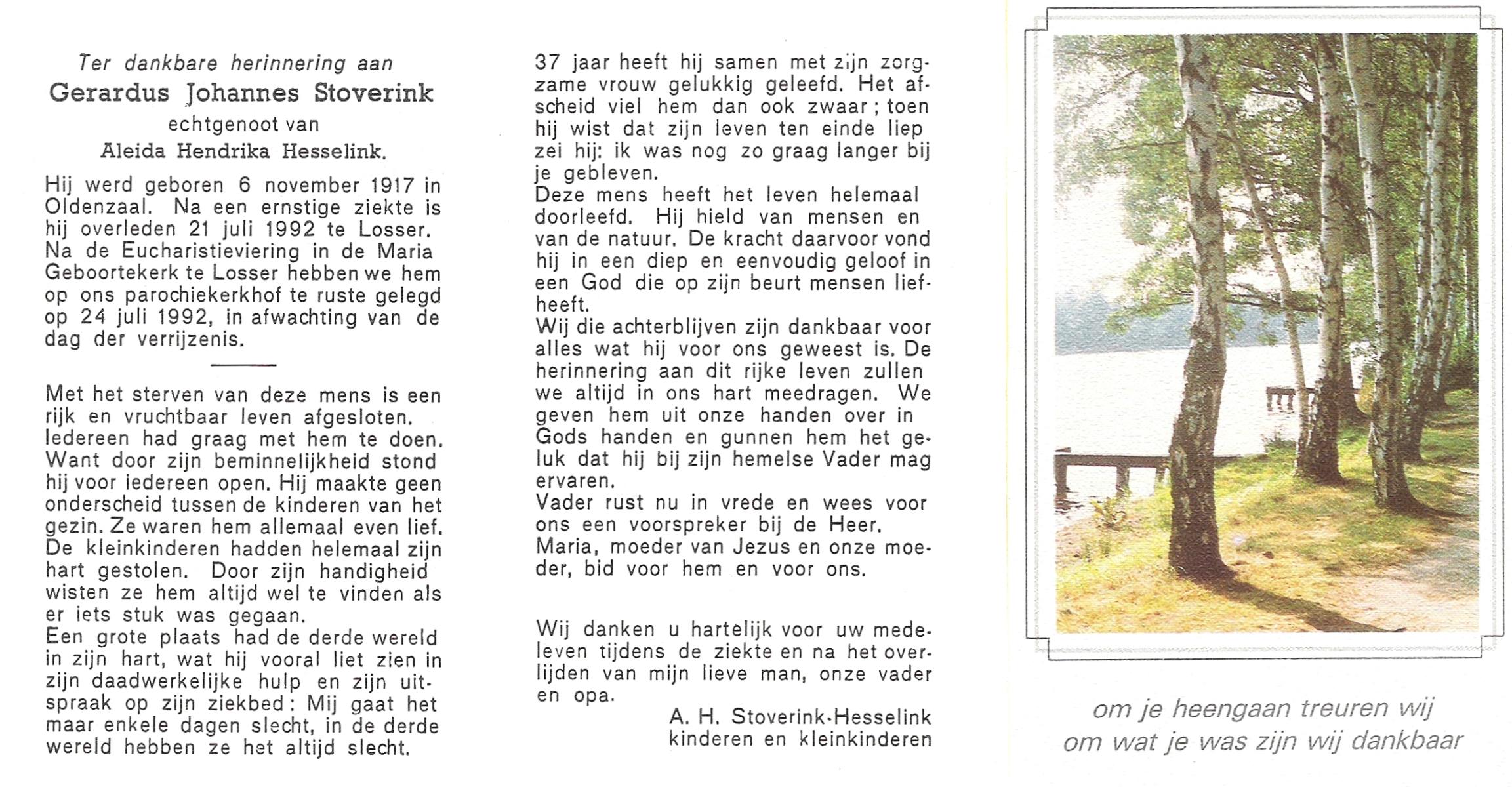 STOVERINK, Gerardus Johannes, geboren op 6-11-1917 te Oldenzaal, overleden op 21-7-1992 te Losser op 74-jarige leeftijd, begraven op 24-7-1992 te Losser.