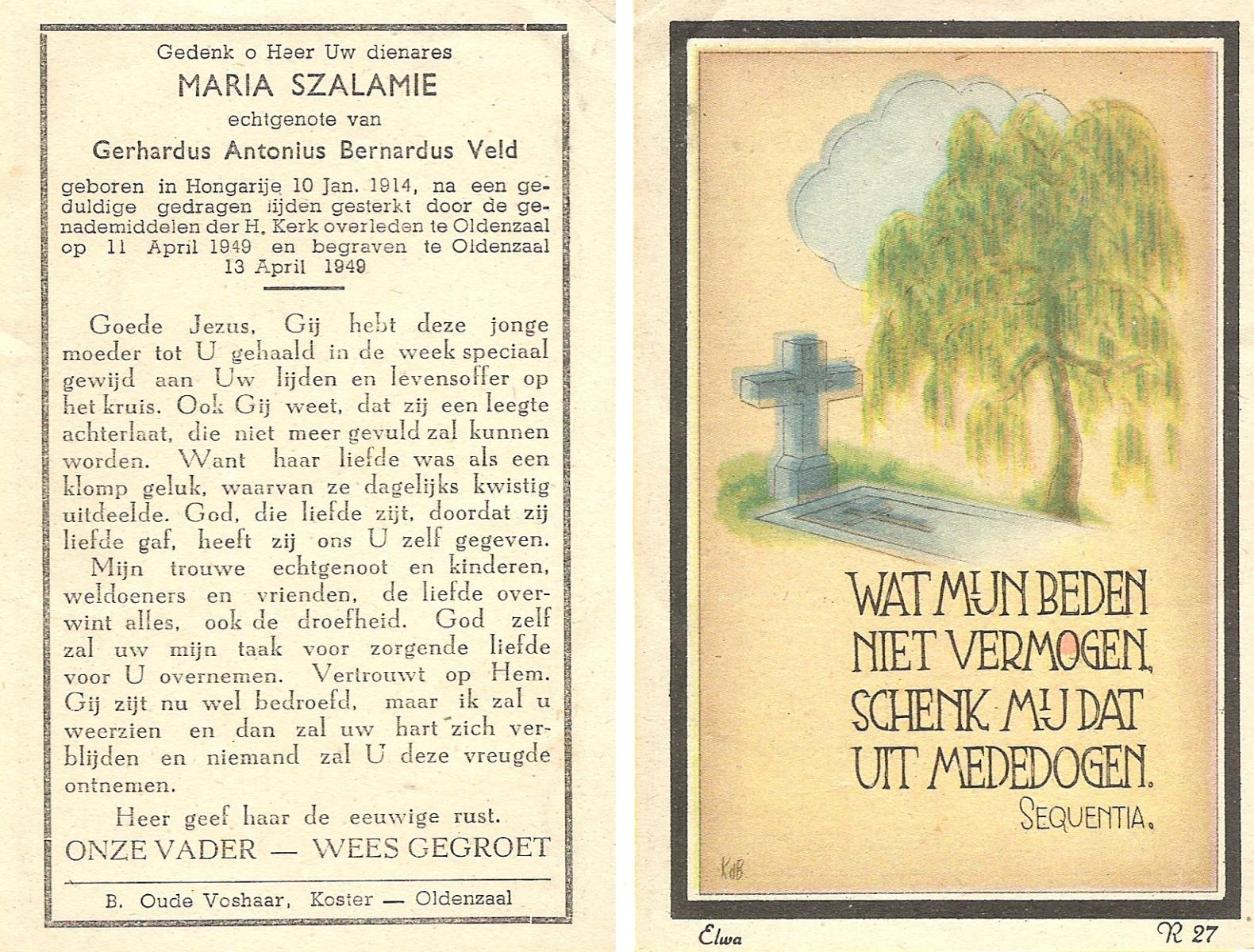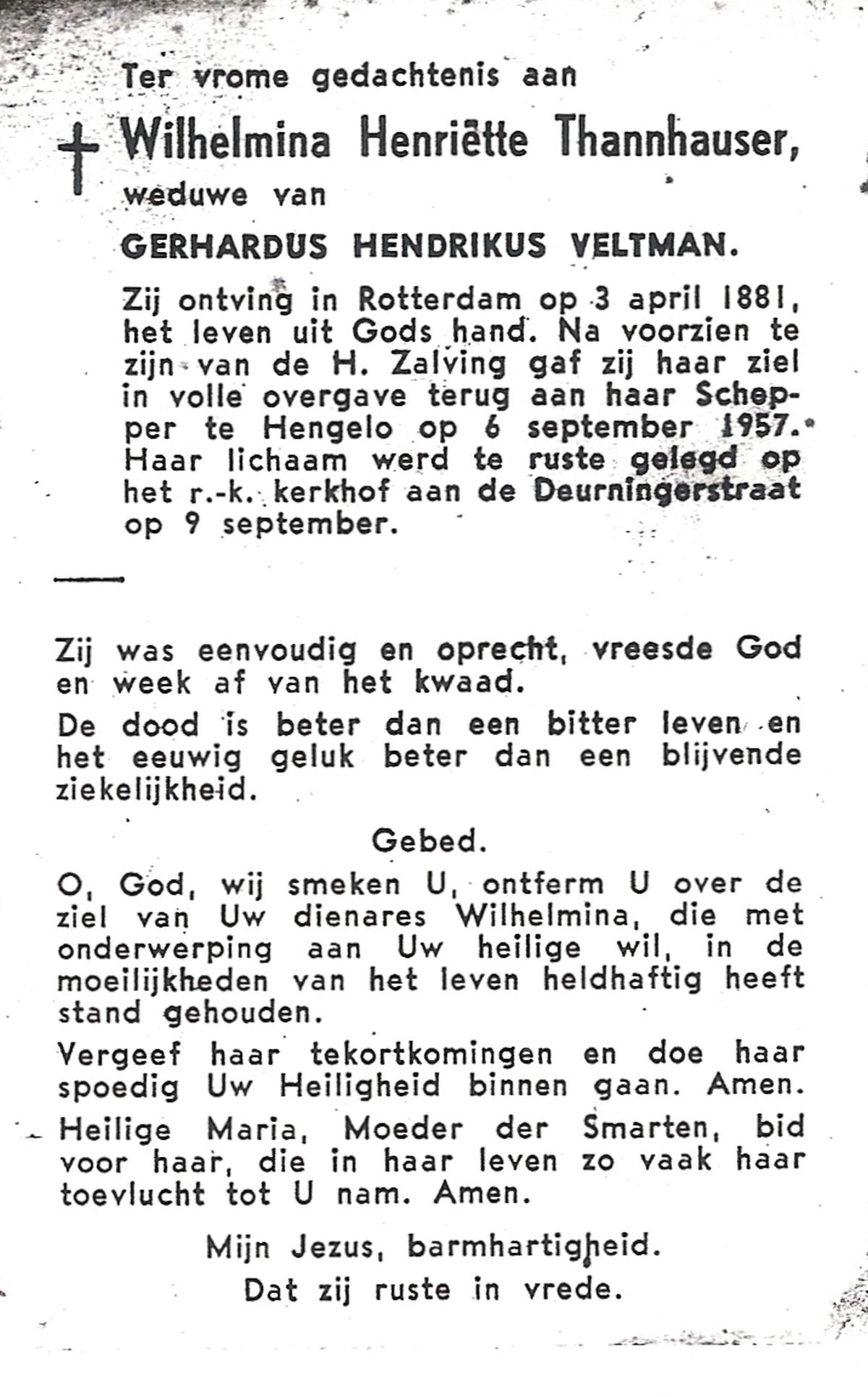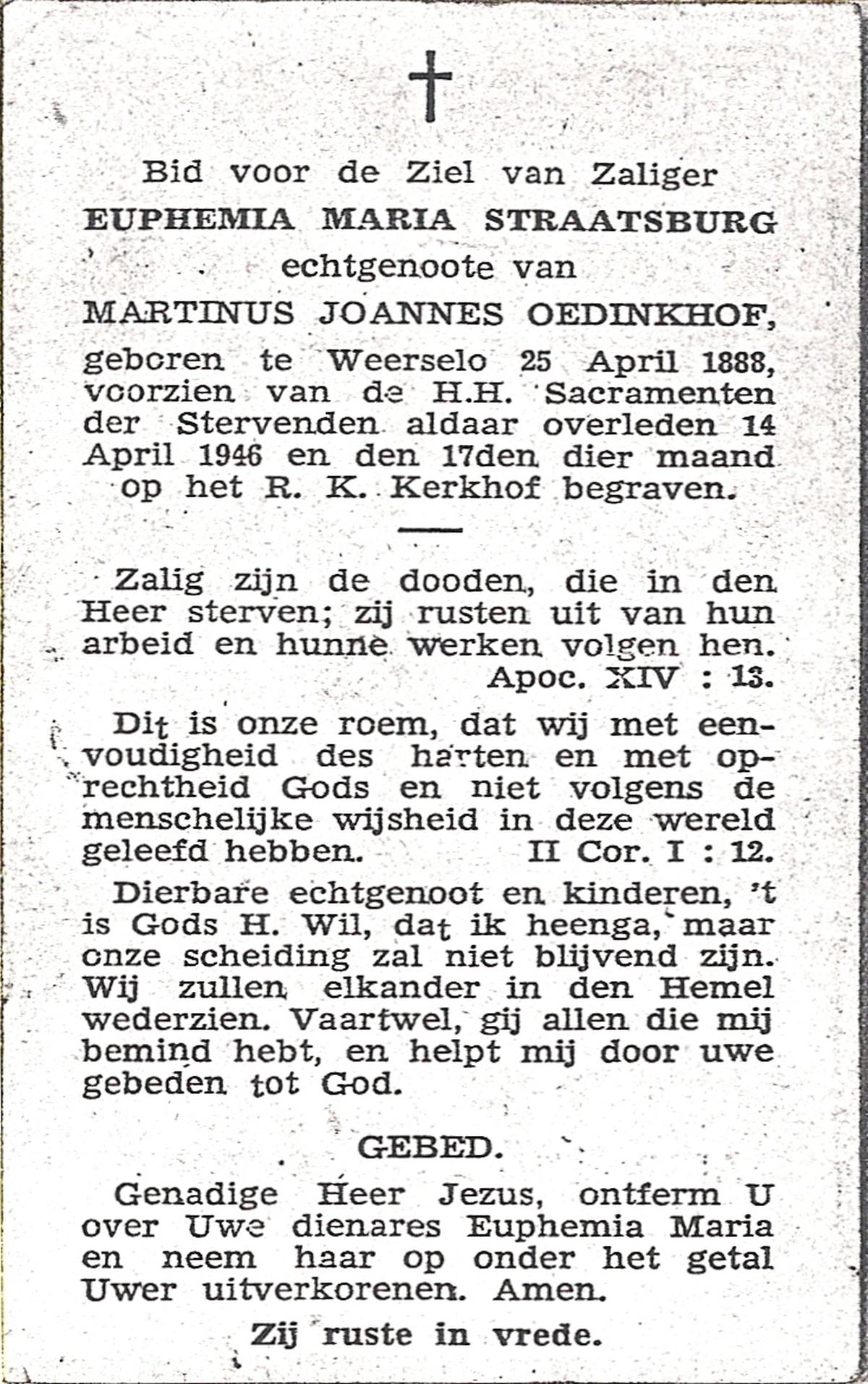 STRAATSBURG, Euphemia Maria, geboren op 25-04-1888 te Weerselo, overleden op 14-4-1946 te Weerselo op 57-jarige leeftijd, begraven op 17-4-1946 te Weerselo.