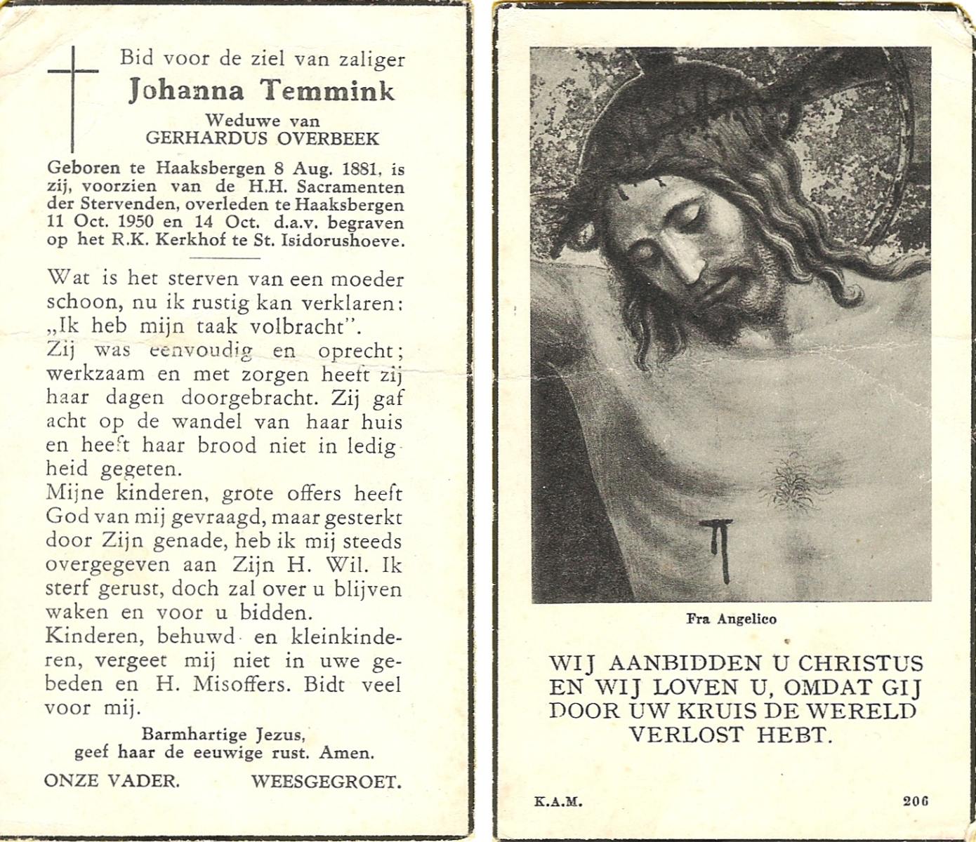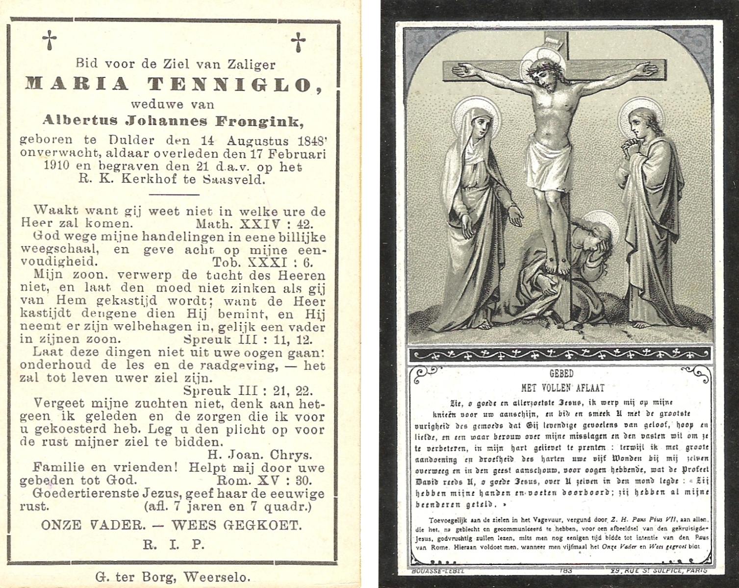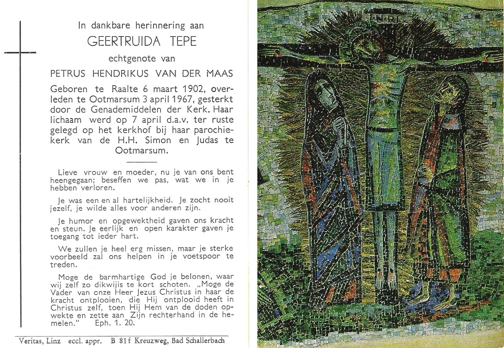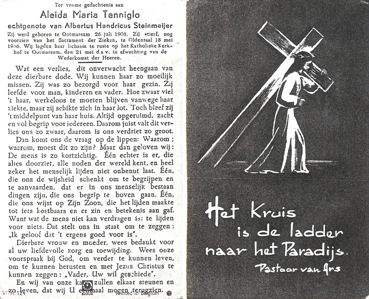 STRAATSBURG, Euphemia Maria, geboren op 25-04-1888 te Weerselo, overleden op 14-4-1946 te Weerselo op 57-jarige leeftijd, begraven op 17-4-1946 te Weerselo.
