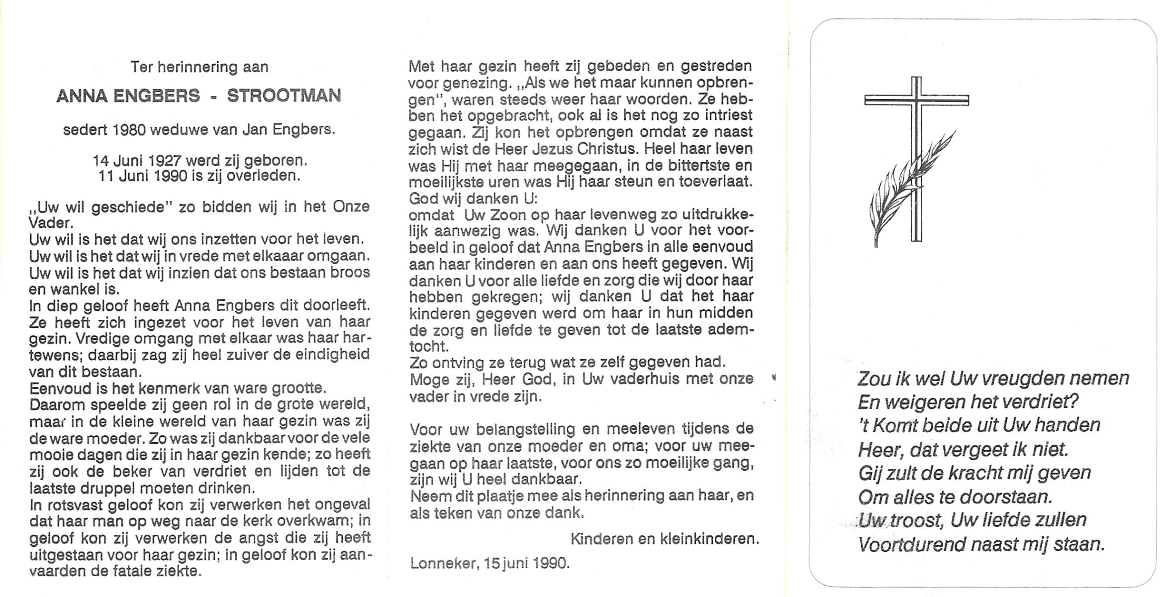 STROOTMAN, Anna, geboren op 14-6-1927, overleden op 11-6-1990 op 62-jarige leeftijd.