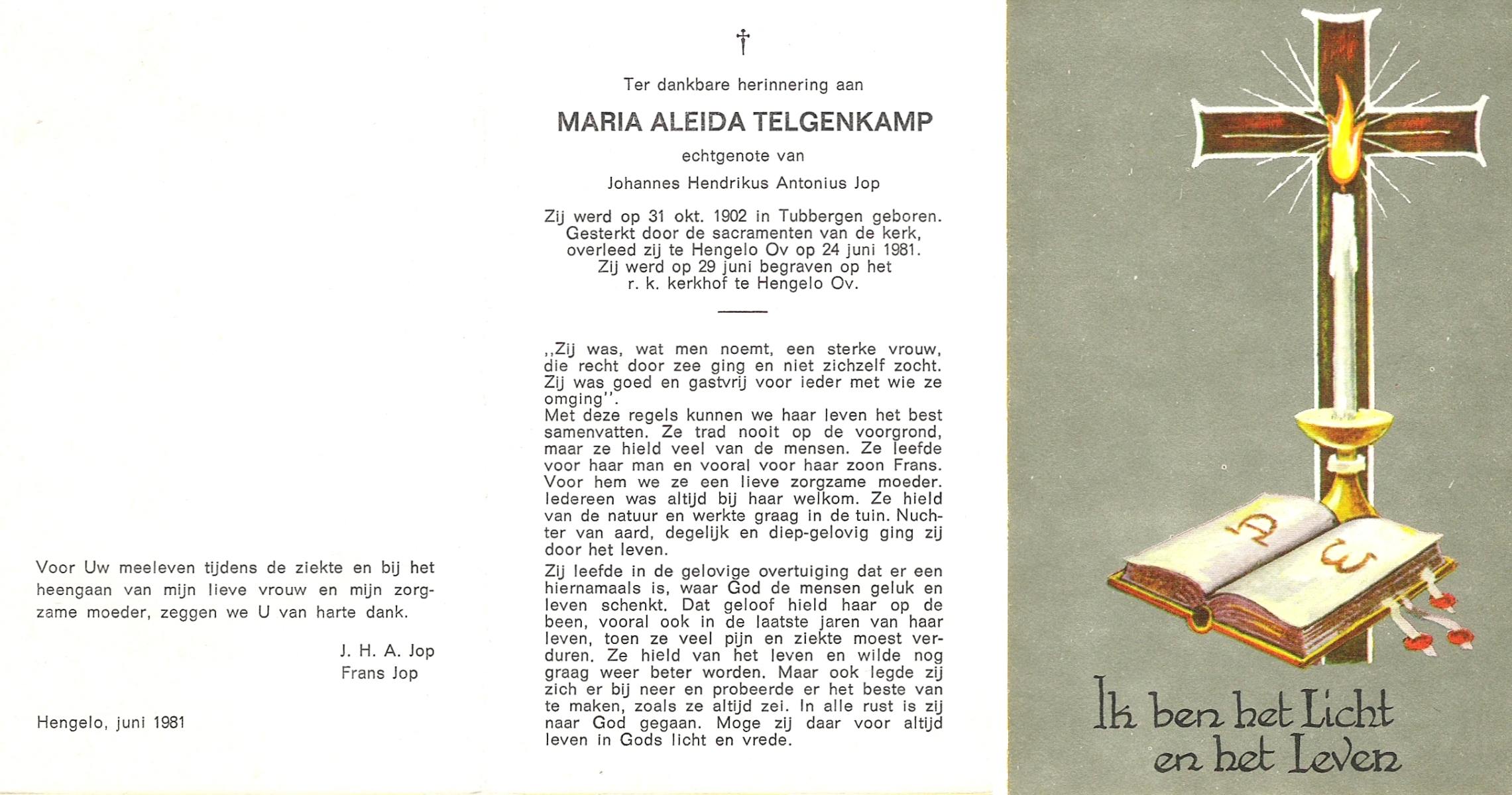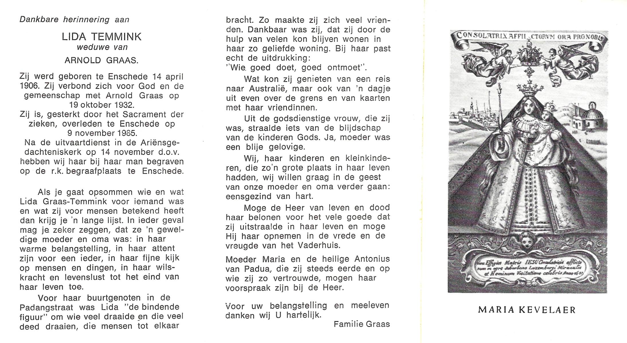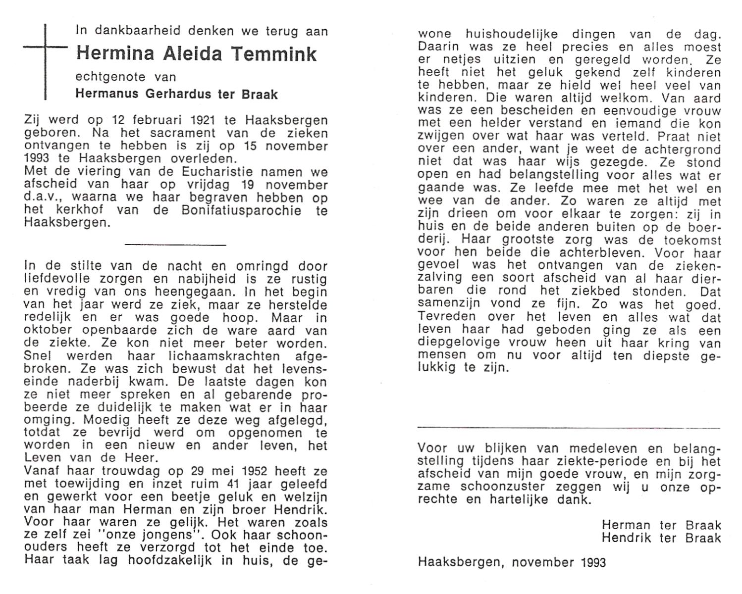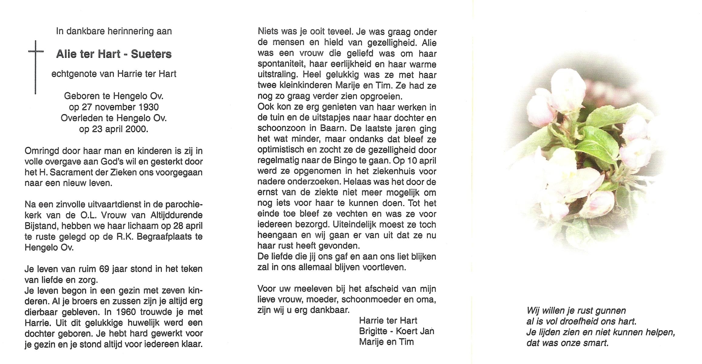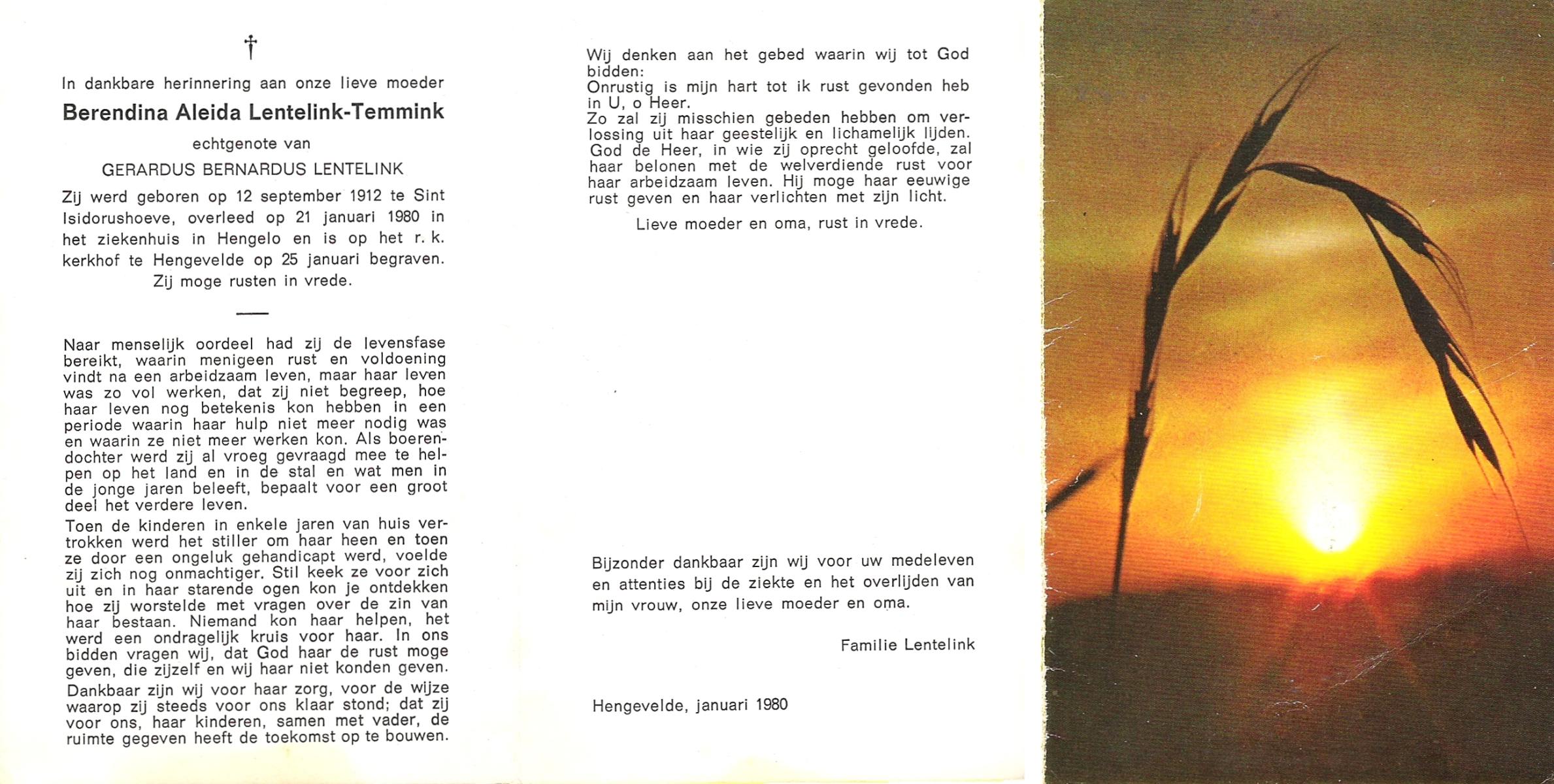 TIEHUIS, Aleida Johanna, geboren op 23-3-1914 te Losser, overleden op 7-5-1988 te Oldenzaal op 74-jarige leeftijd, begraven op 11-5-1988 te Oldenzaal.