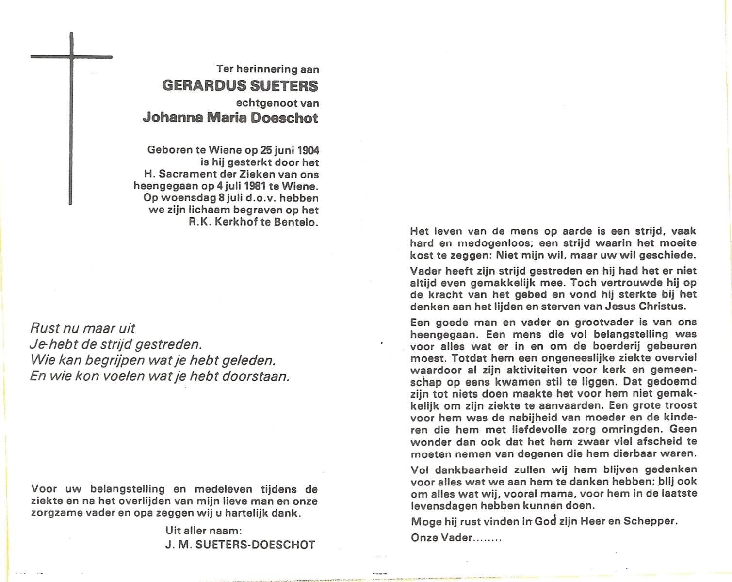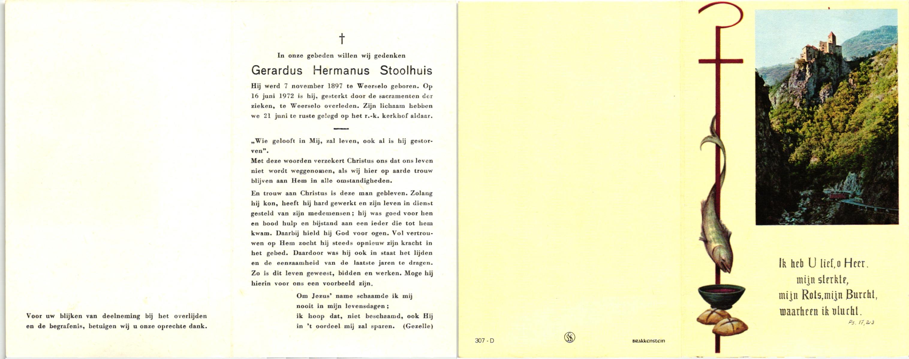 STOOLHUIS, , Gerardus Hermanus, geboren op 07-11-1897 te Weerselo, overleden op 16-6-1972 te Weerselo op 74-jarige leeftijd, begraven op 21-6-1972 te Weerselo.
