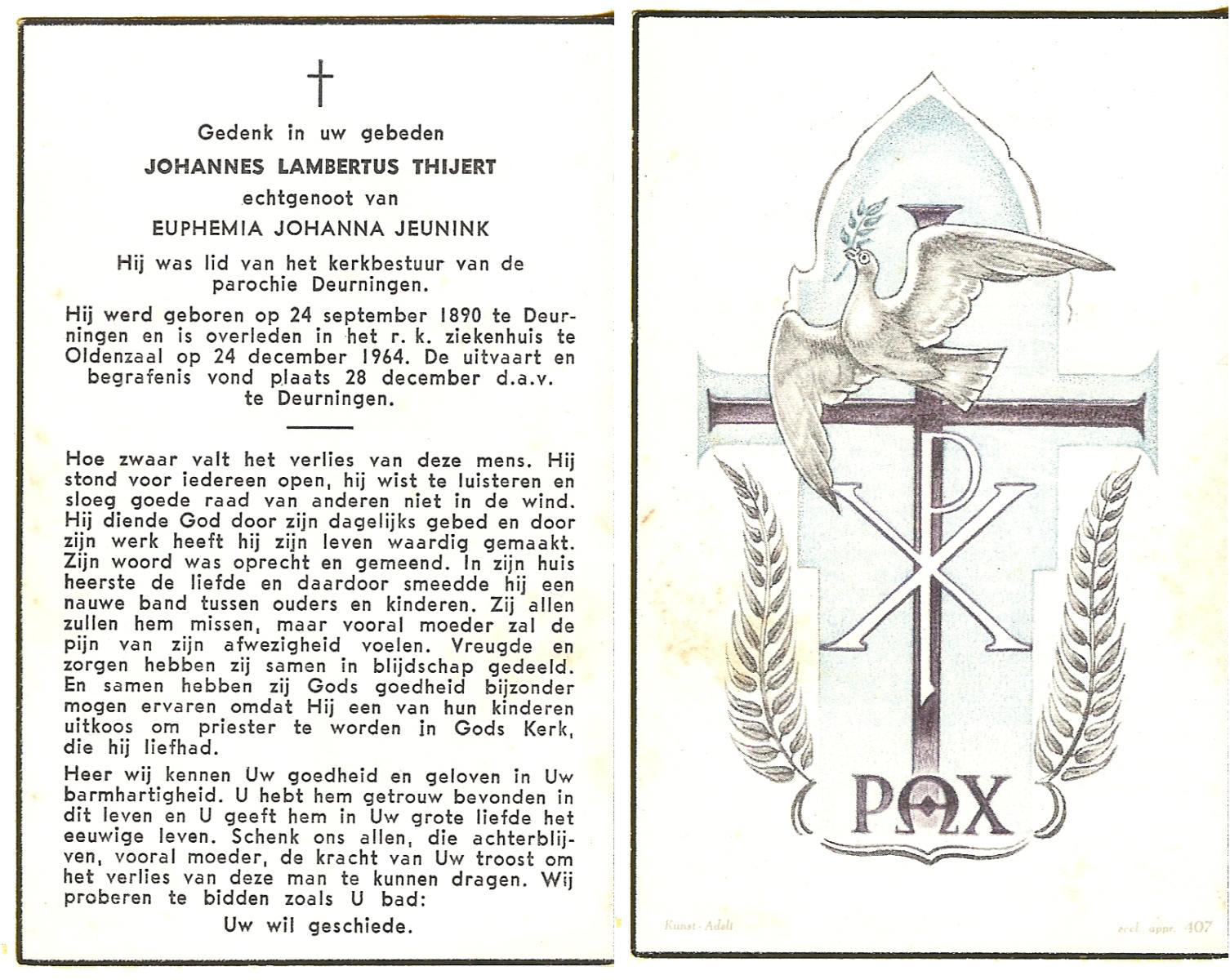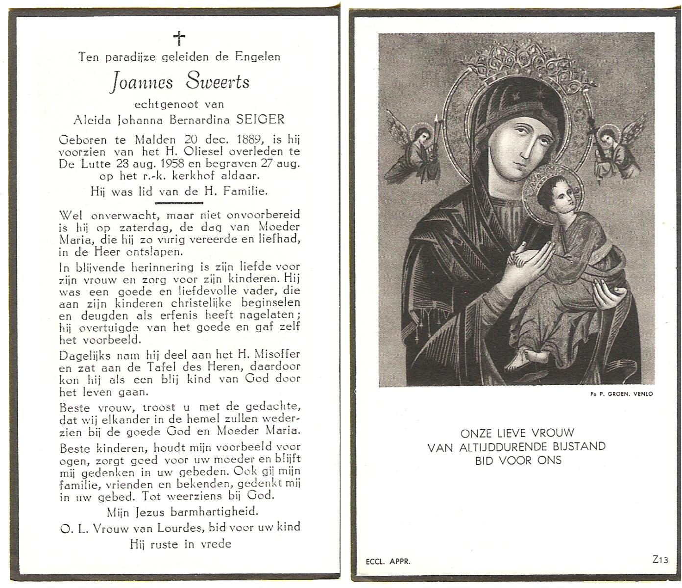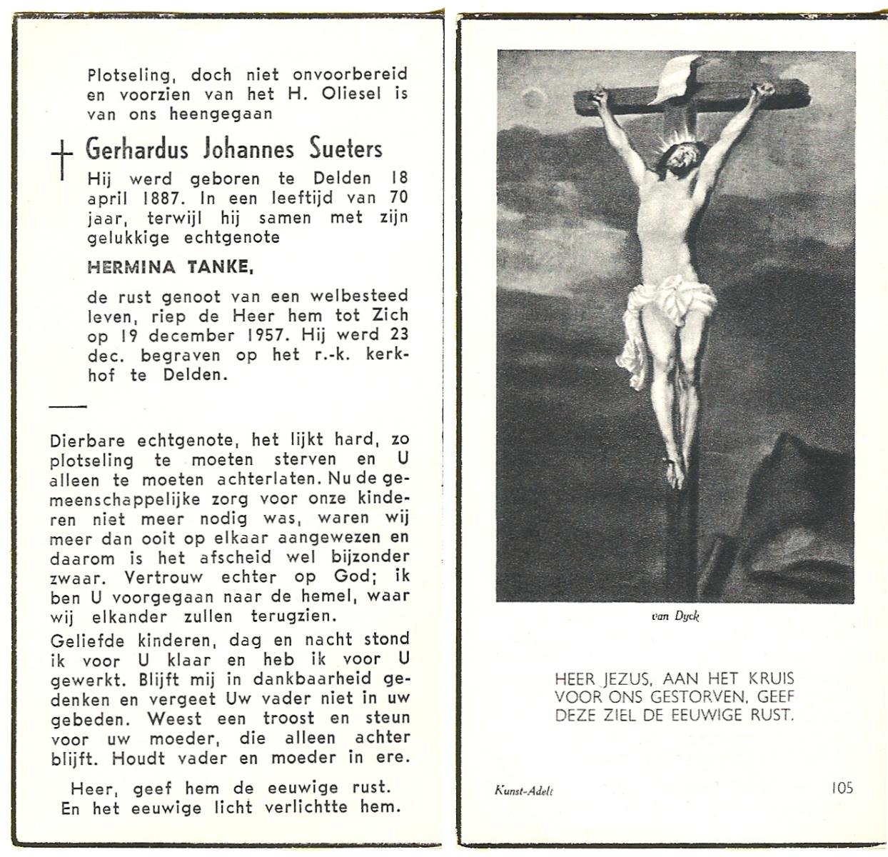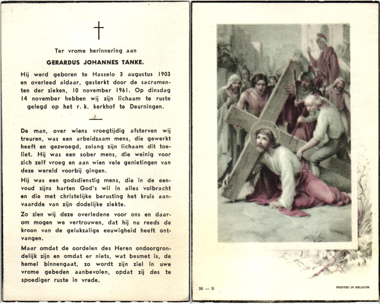 TIECKE, Johannes Gerardus Josef, geboren op 18-3-1903 te Enschede, overleden op 12-8-1985 te Almelo op 82-jarige leeftijd, begraven op 15-8-1985 te Zenderen.