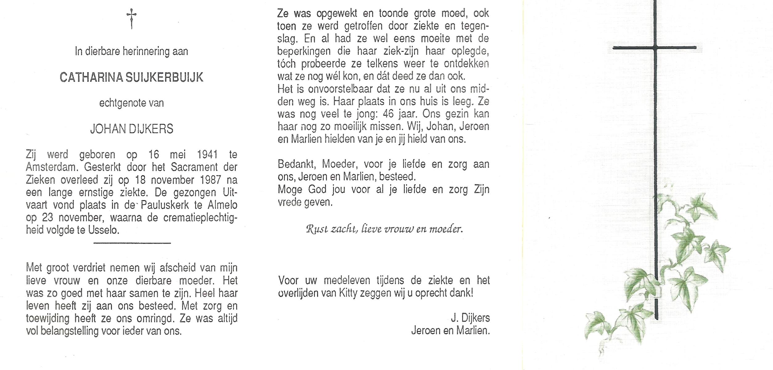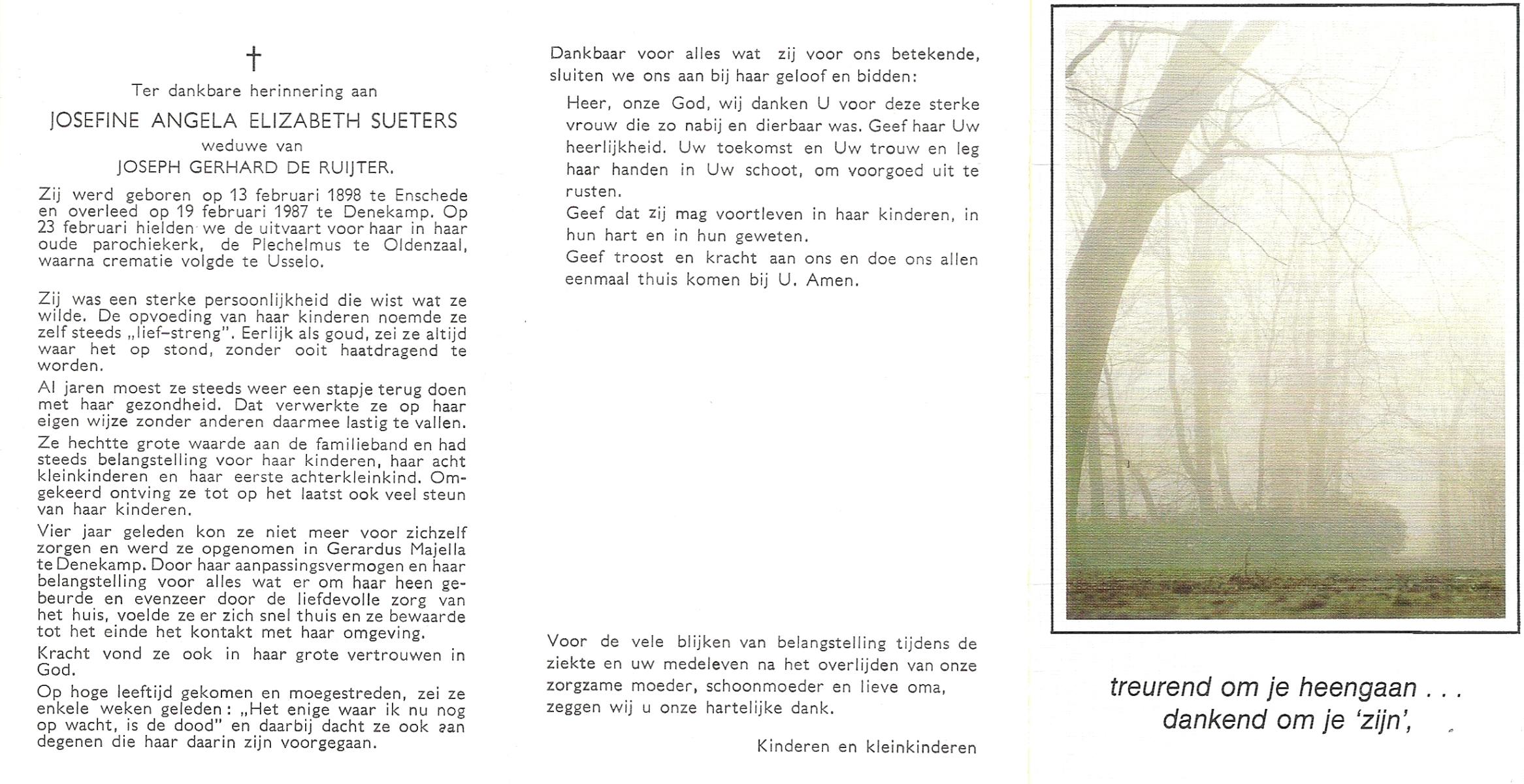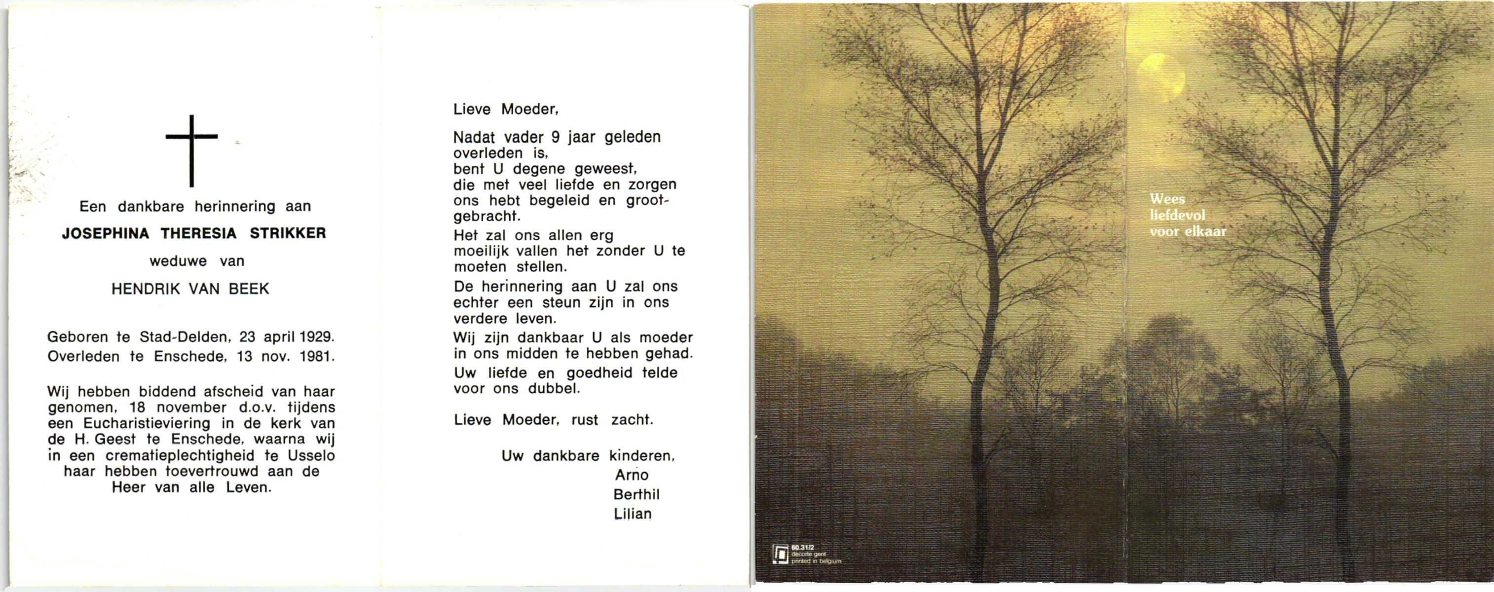 STRIKKER, , Josephina Theresia, geboren op 23-4-1929 te Delden, Stad, overleden op 13-11-1981 te Enschede op 52-jarige leeftijd, gecremeerd op 18-11-1981 te Usselo.