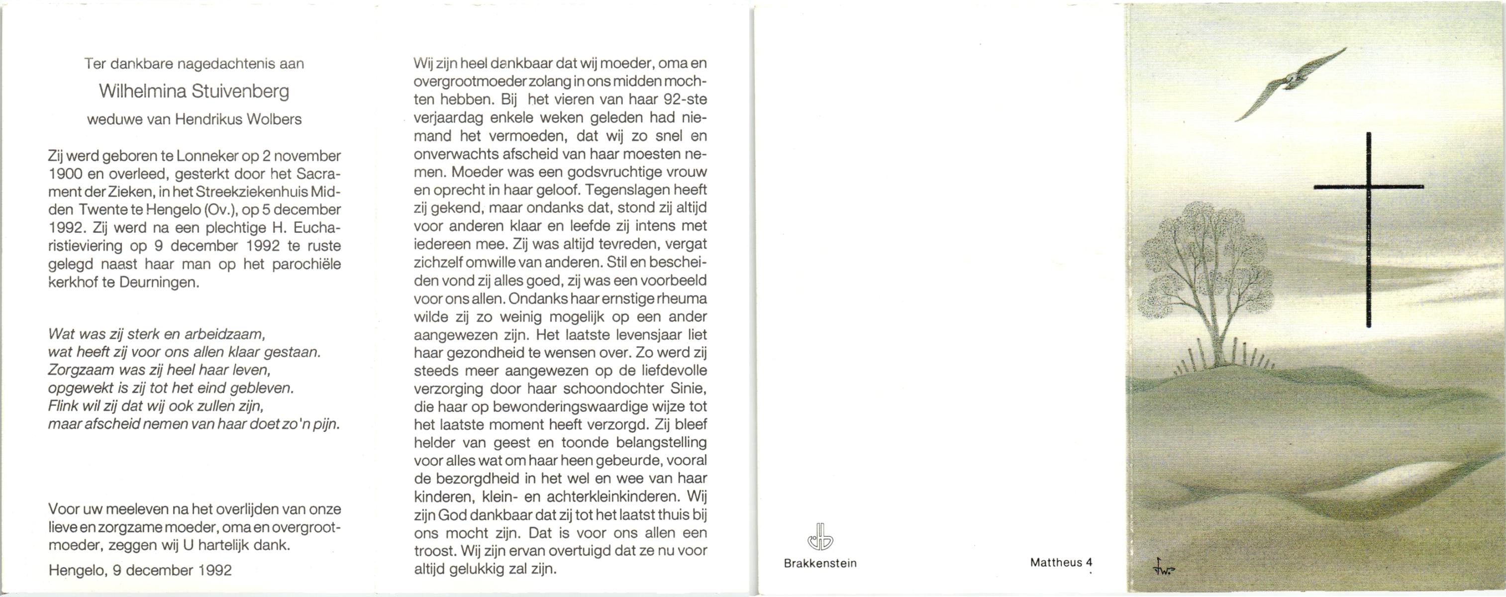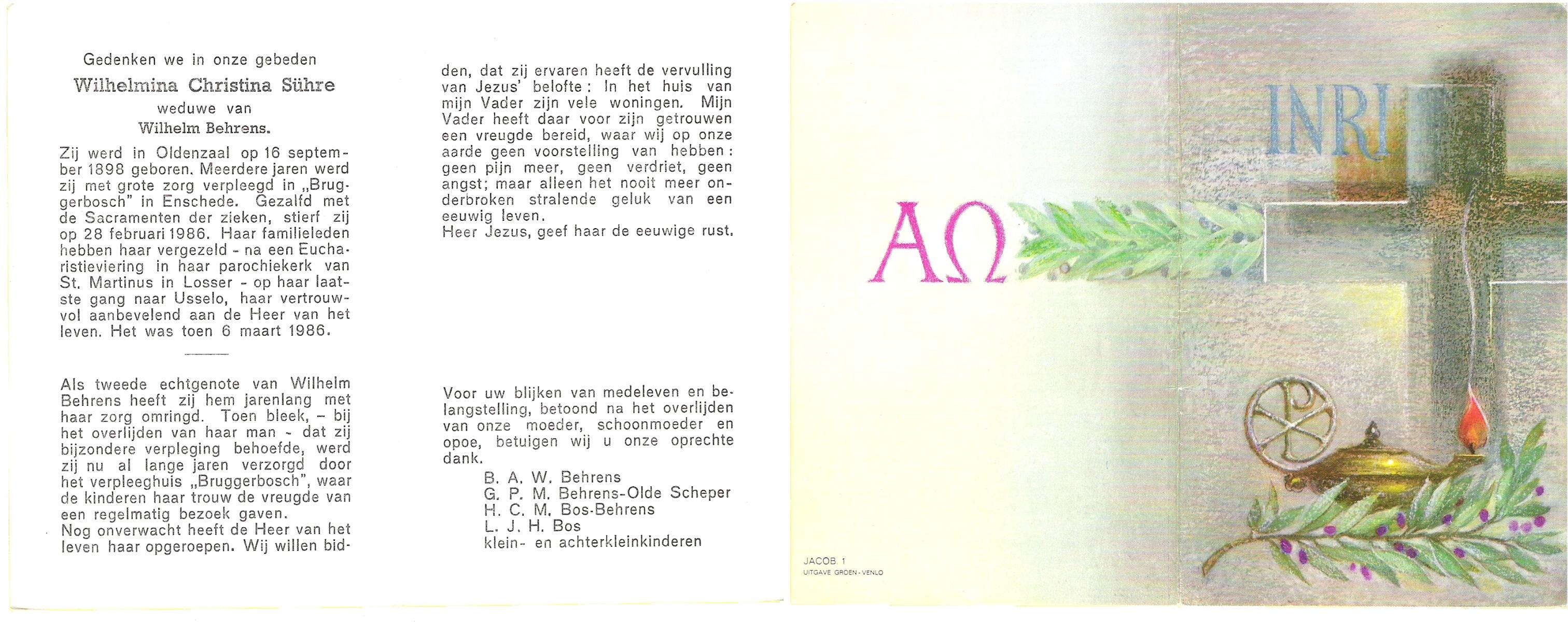 STOPEL, Wilhelmina Berendina, geboren op 26-3-1909 te Tubbergen, overleden op 17-4-1983 te Geesteren op 74-jarige leeftijd, begraven op 21-4-1983 te Geesteren.