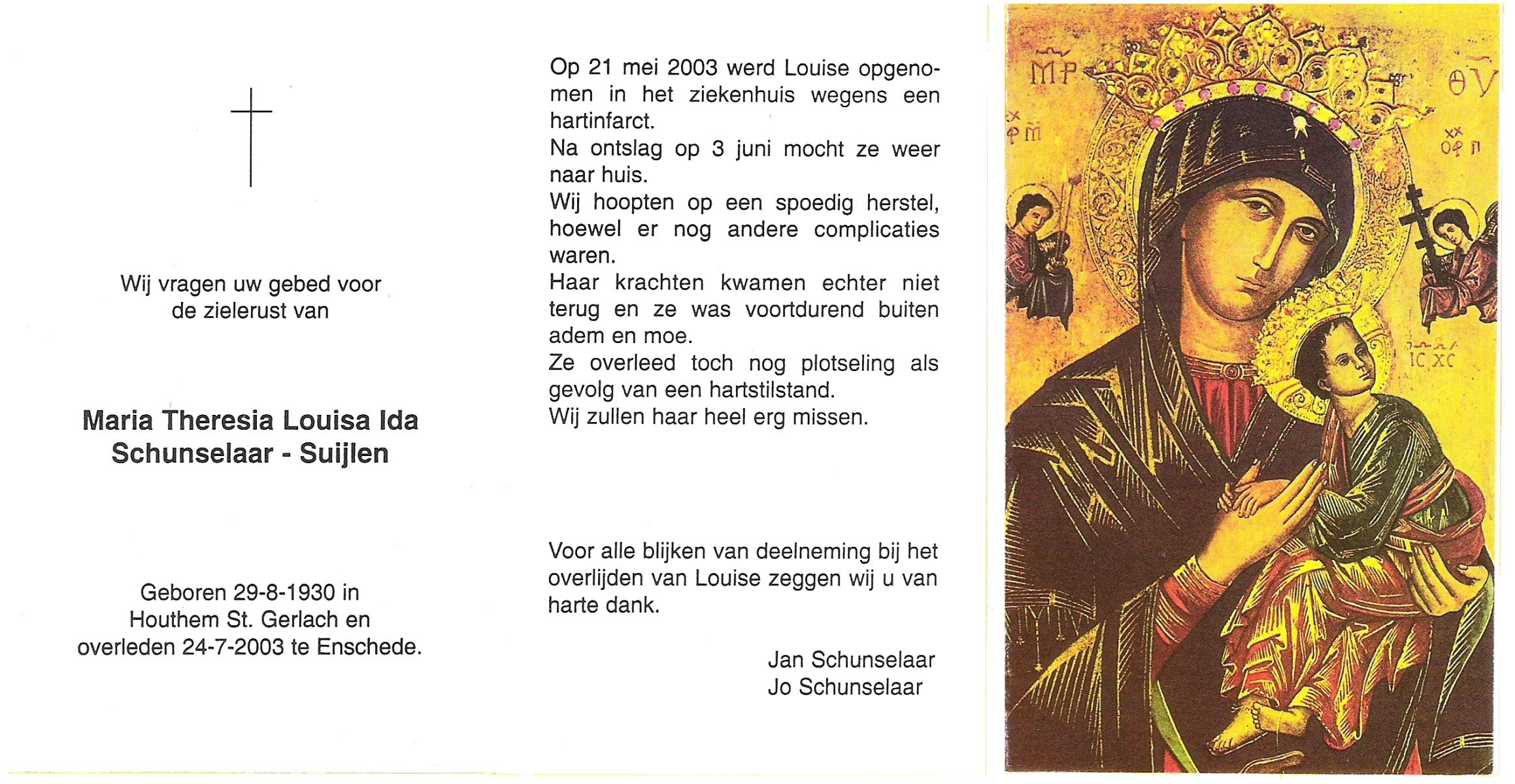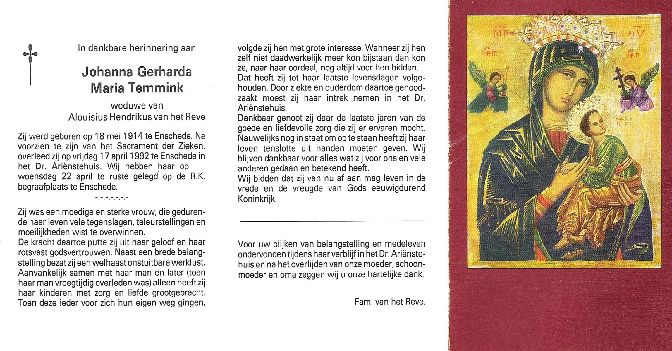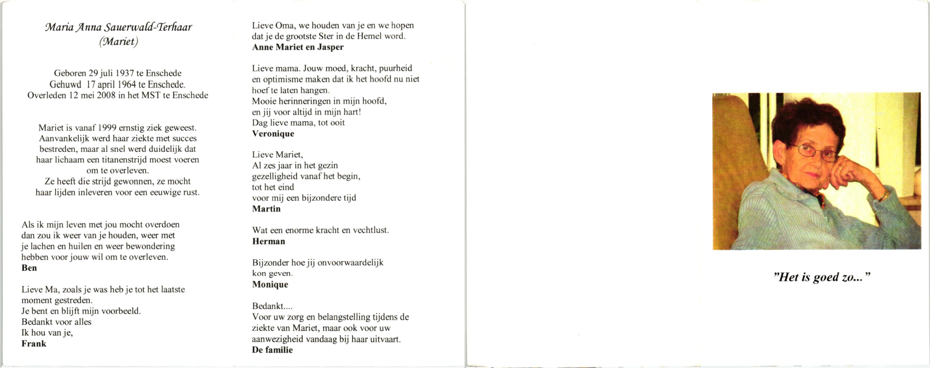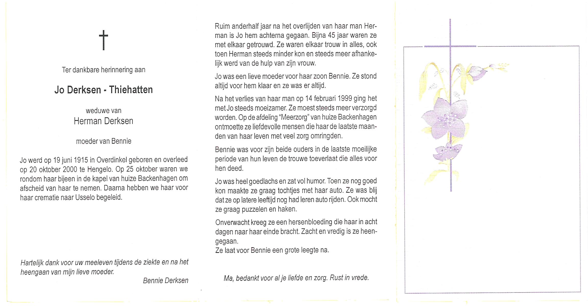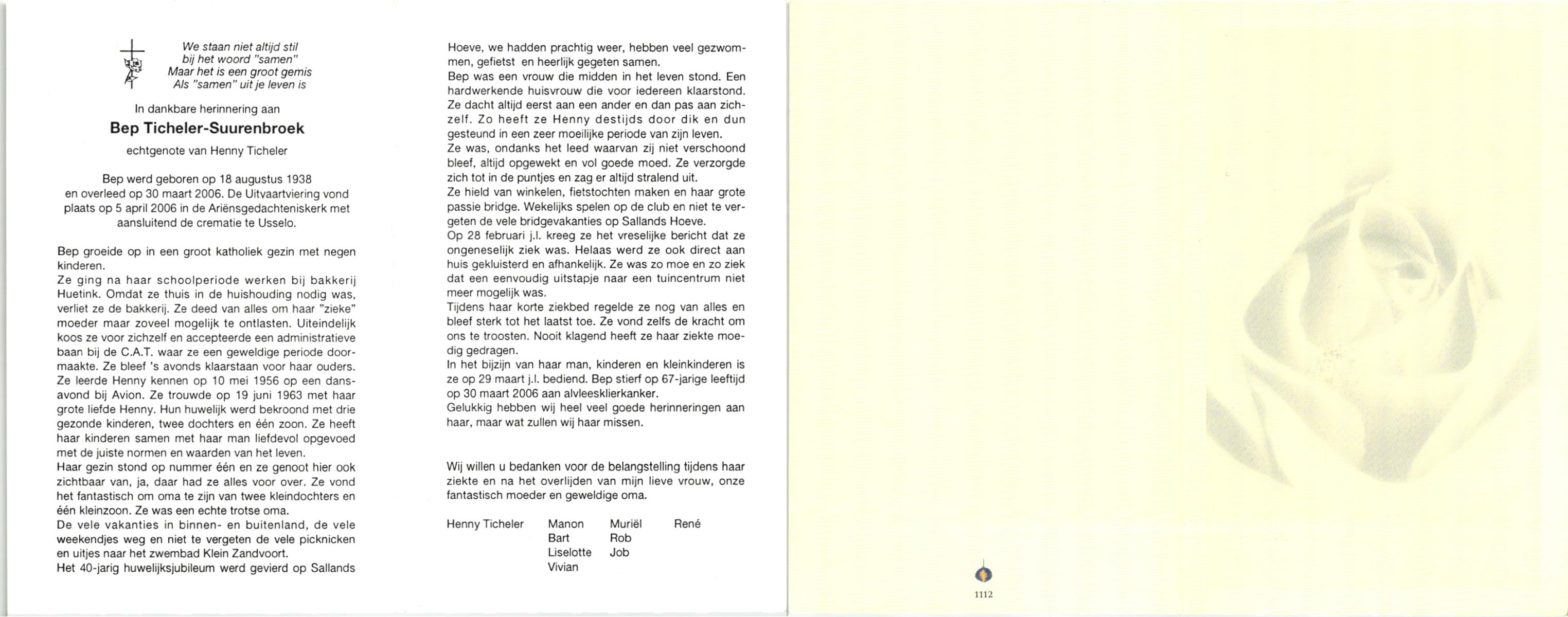 TICHELER, Johanna Maria, geboren op 20-2-1922 te Enschede, overleden op 8-9-2000 op 78-jarige leeftijd, begraven op 13-9-2000 te Enschede.